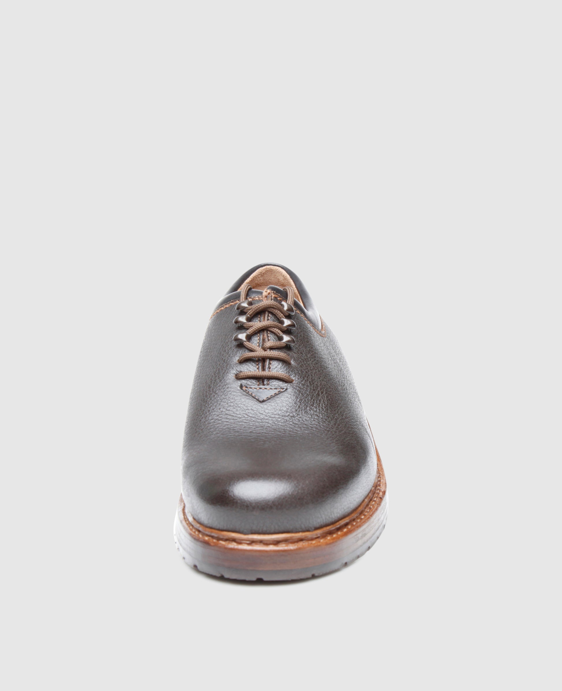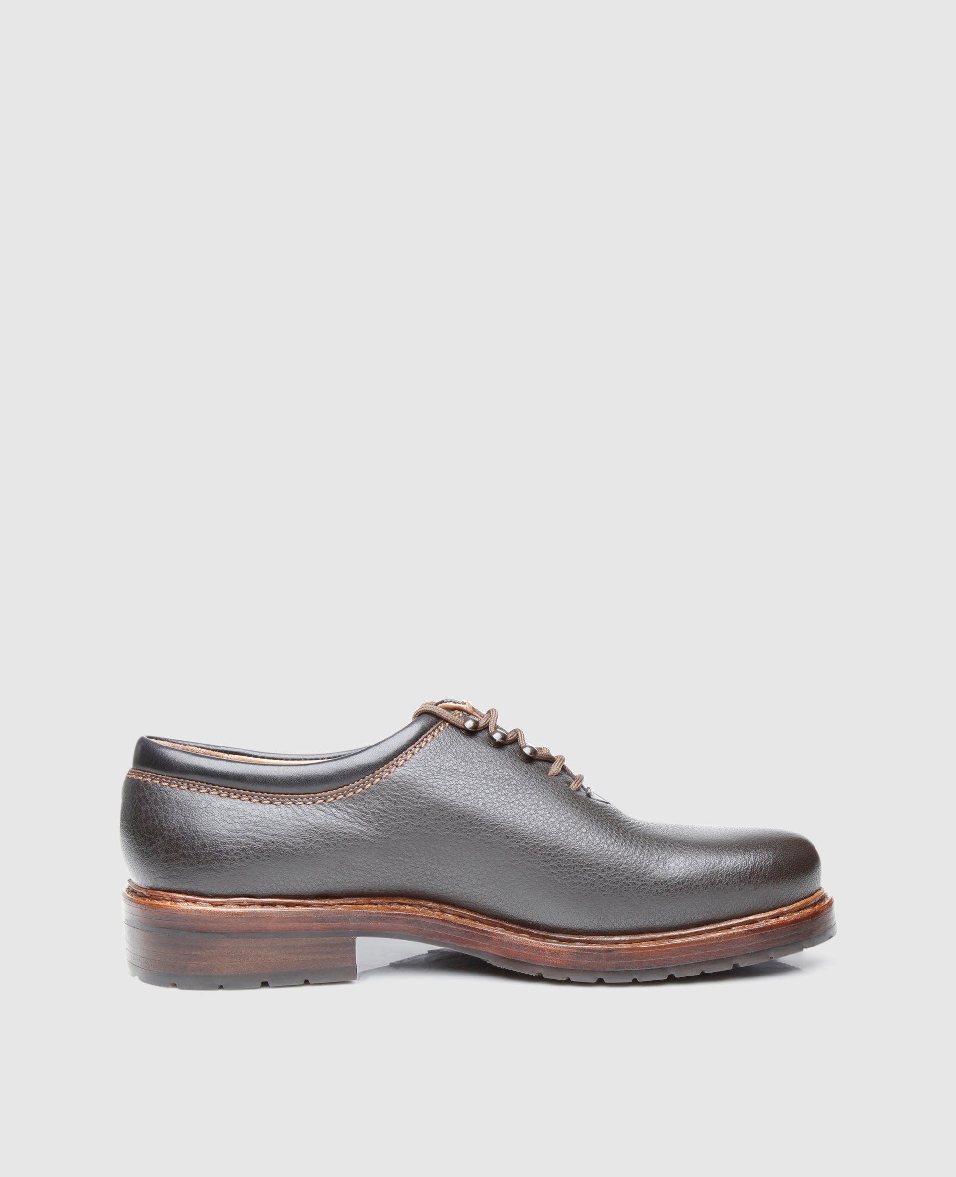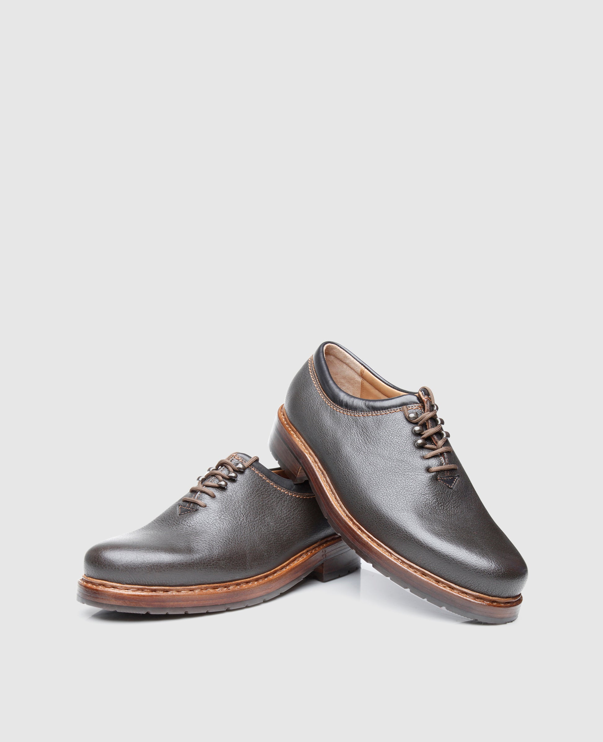 The double stitched wholecut consists of soft, durable and extremely supple water buffalo leather. Over time, the exquisite upper develops an alluring patina.The closed lacing boasts a modern arrangement of two eyelets and three hook pairs – a real rarity among the classic lace-up shoes. The classic Rio last and the abrasion-resistant triple outsole with an additional rubber lug profile guarantee exceptional wearing comfort.Made by hand in a factory in Budapest by experienced master shoemakers, the black-brown Wholecut exudes a sporty charm in this modern interpretation.