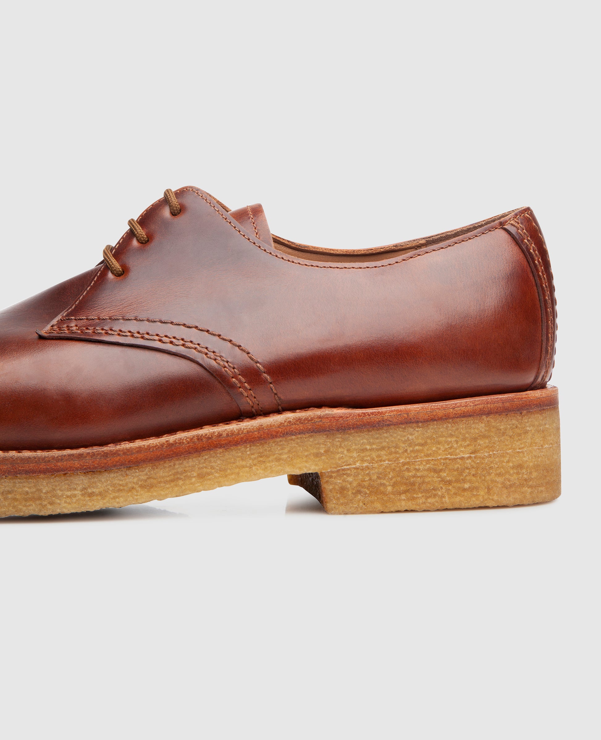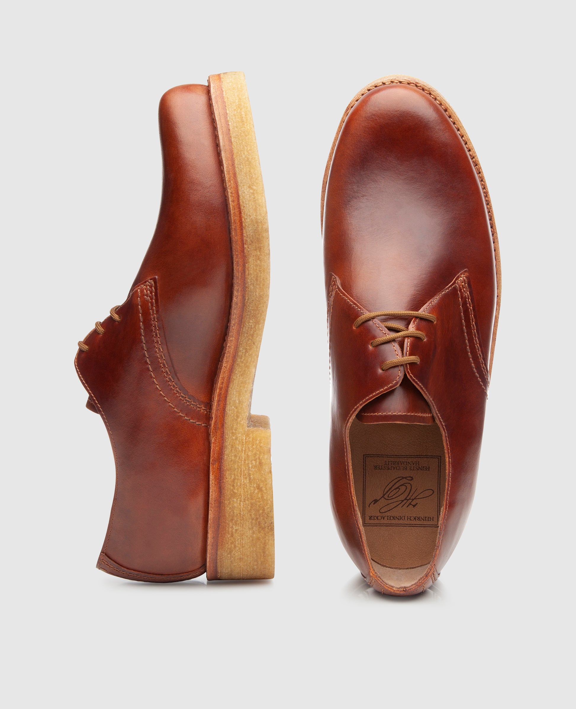 The triple sole with natural crepe and the hard-wearing, waxed calf upper, known as Mambo, have been used for the first time at Dinkelacker in this collection and are the perfect combination for the wet and cold season.