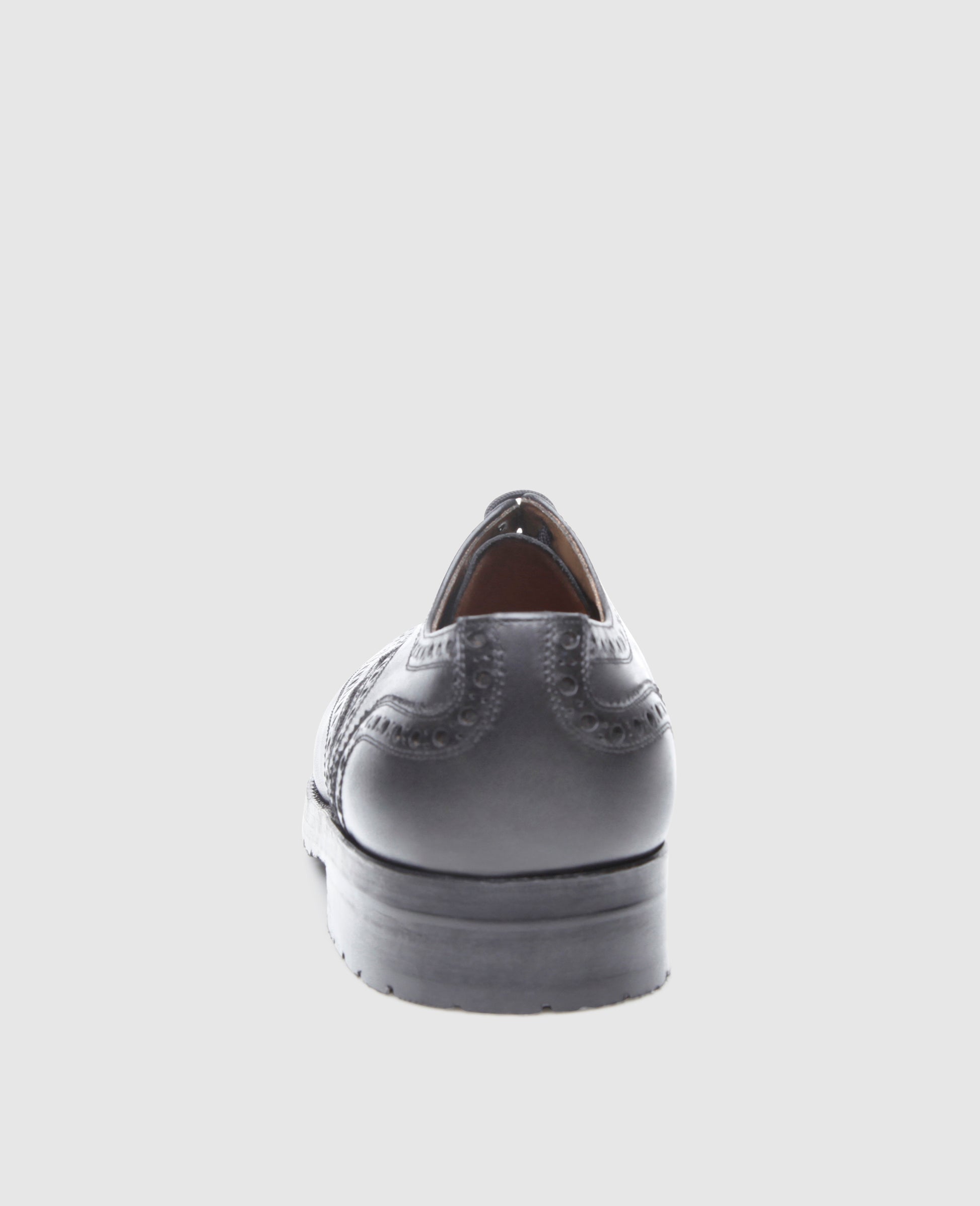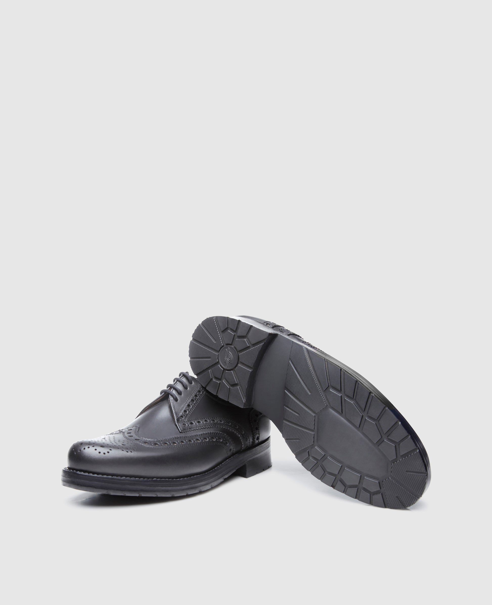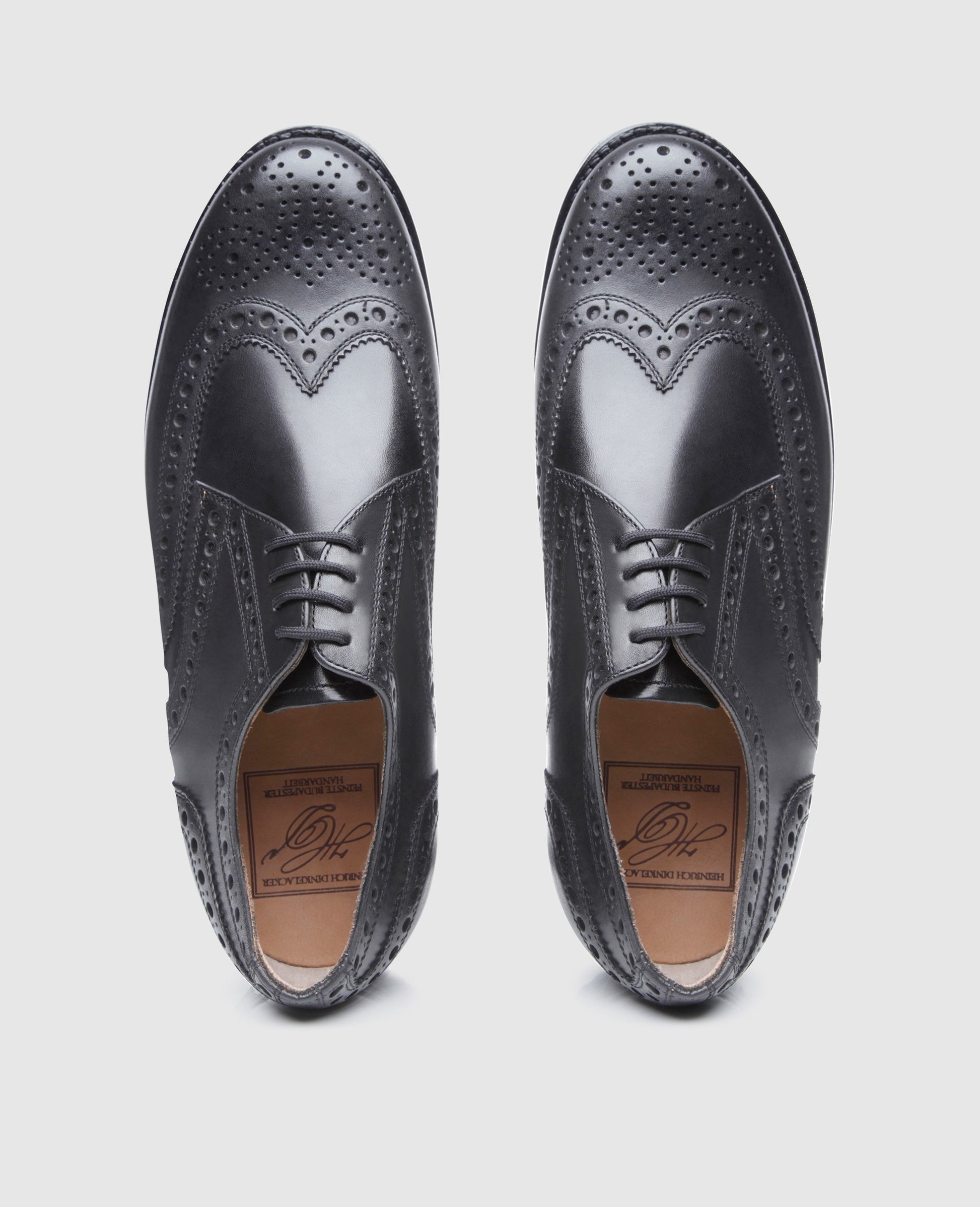Stay stylish even when it’s wet and raining! The handcrafted full-brogue Derby in black includes waterproof, aniline dyed calfskin as well as a sturdy triple outsole with a rubber lug profile. This combination of water-resistant Swiss calf leather and a non-slip outer sole guarantees a stylish, elegant and comfortable walking experience, even in bad weather.