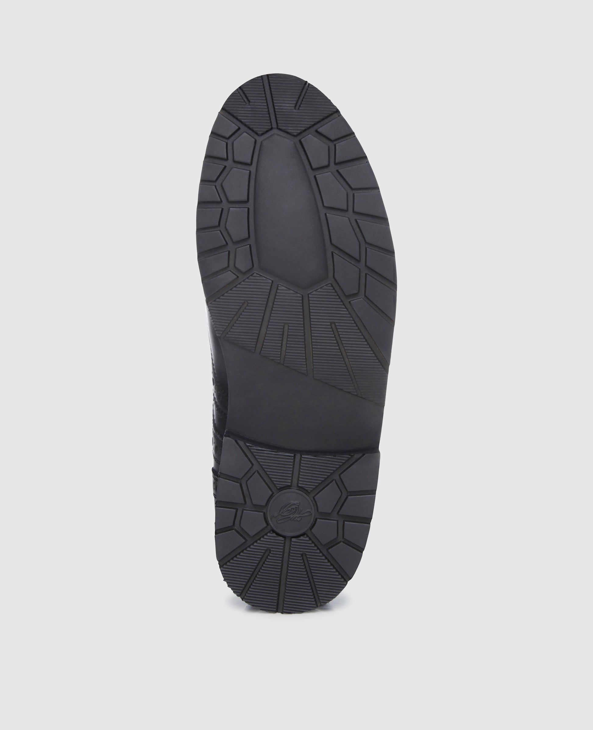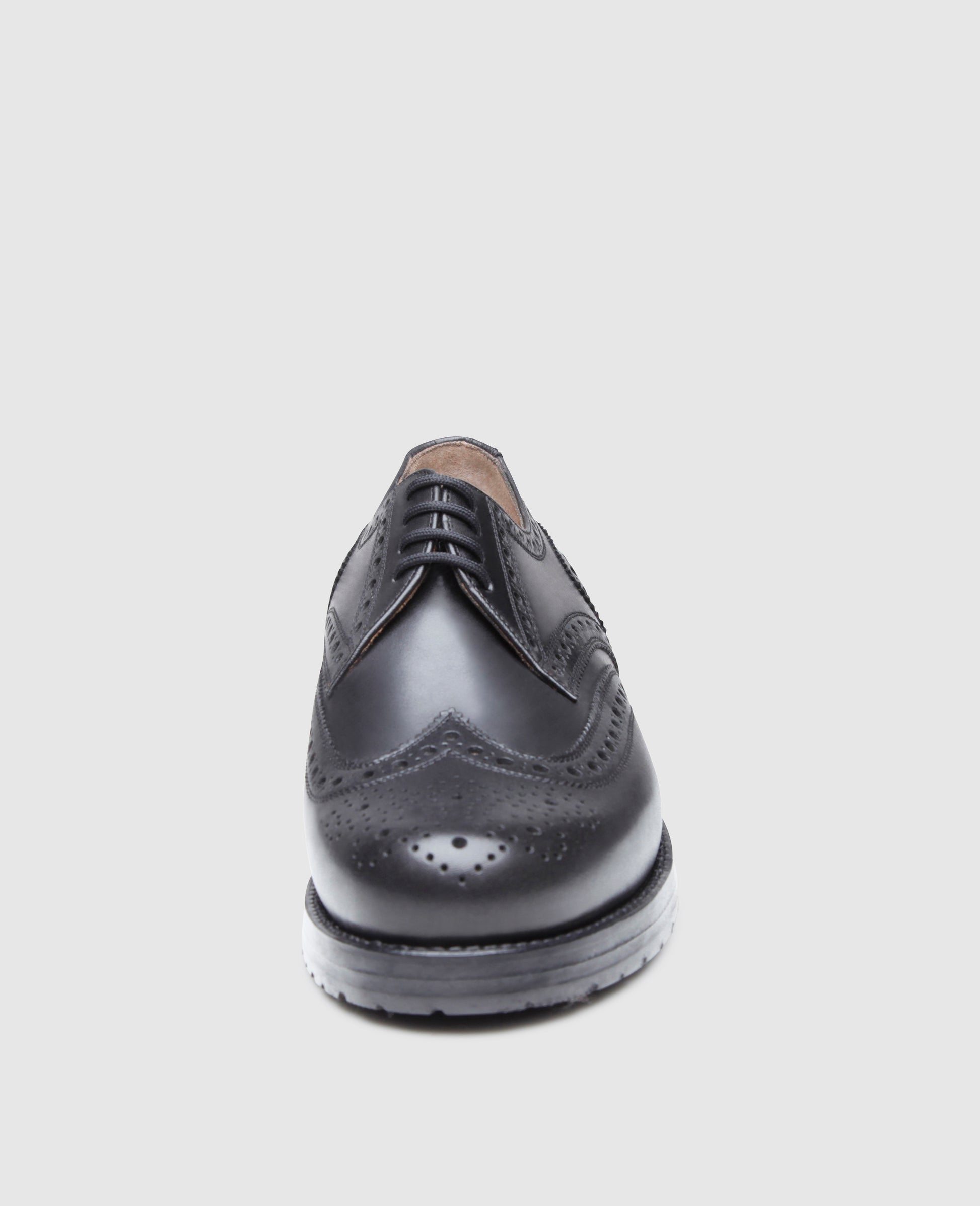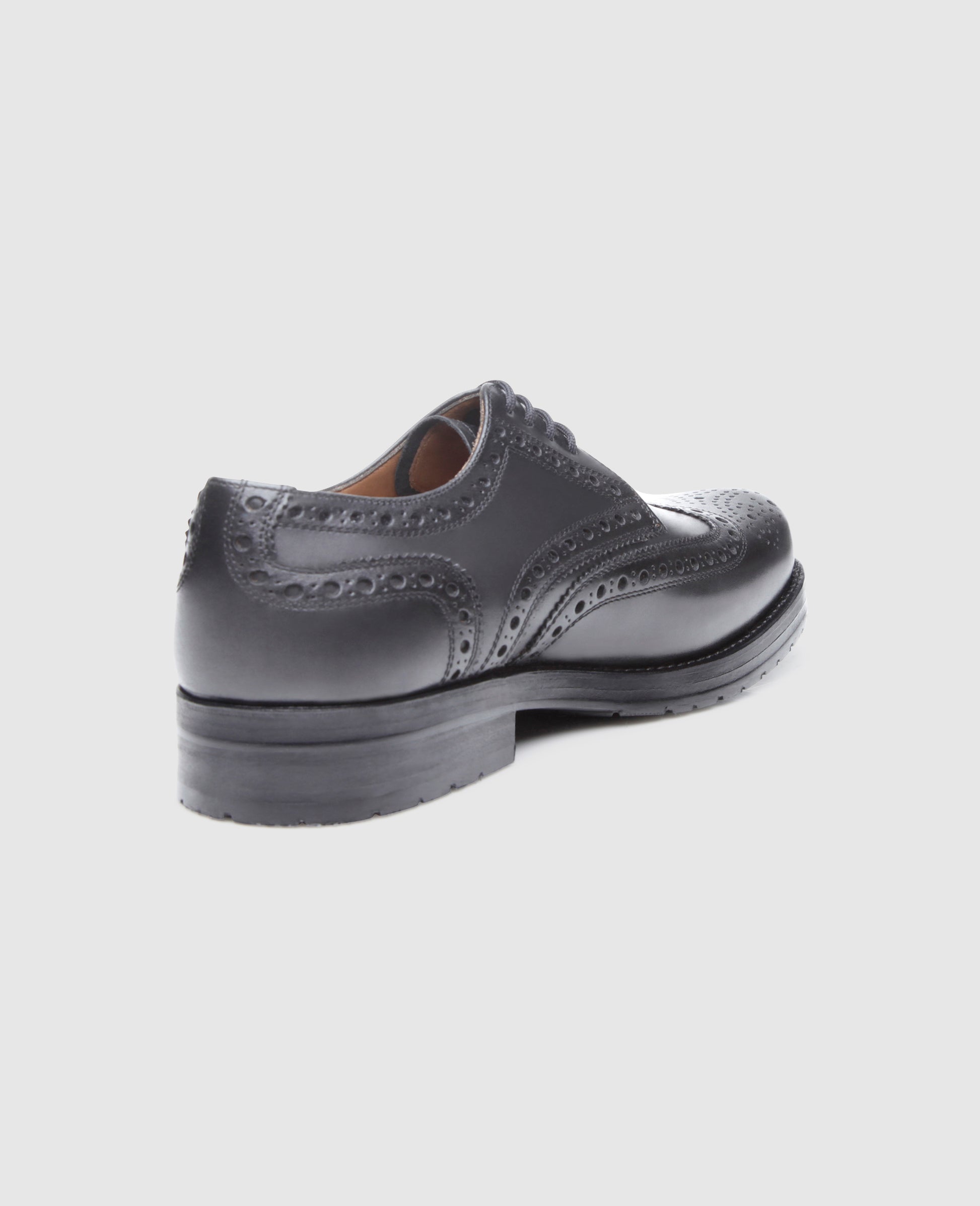 Stay stylish even when it’s wet and raining! The handcrafted full-brogue Derby in black includes waterproof, aniline dyed calfskin as well as a sturdy triple outsole with a rubber lug profile. This combination of water-resistant Swiss calf leather and a non-slip outer sole guarantees a stylish, elegant and comfortable walking experience, even in bad weather.