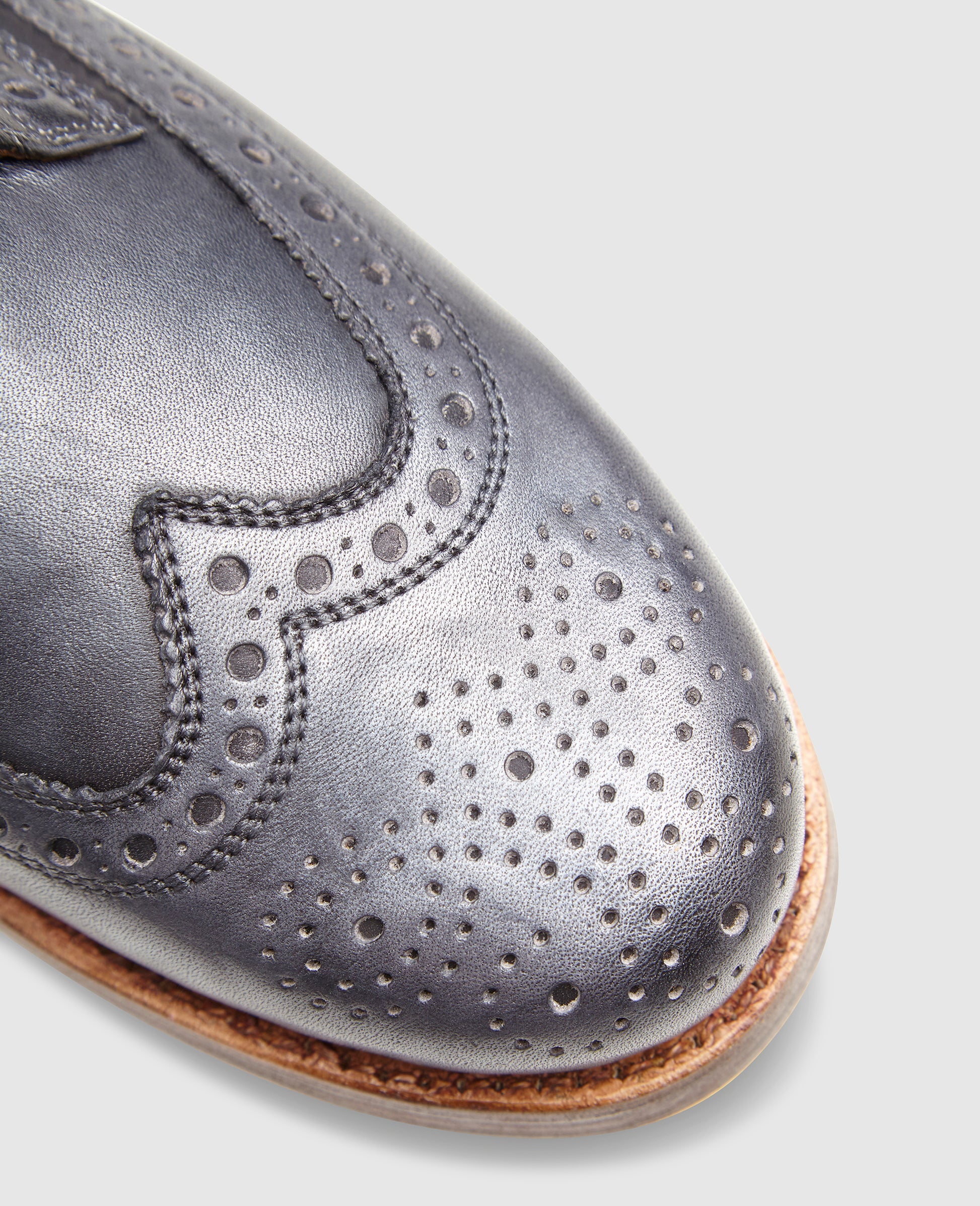 A cappella singing involves concentrating on the essential. Just as puristic is the classic curve of the Rio last, which unfolds its full charm through the delicate changes in the Acapella upper leather. The traditional lyra perforations are complemented by our well-proven triple sole, the tip of which is reinforced with a brass boulevard iron.