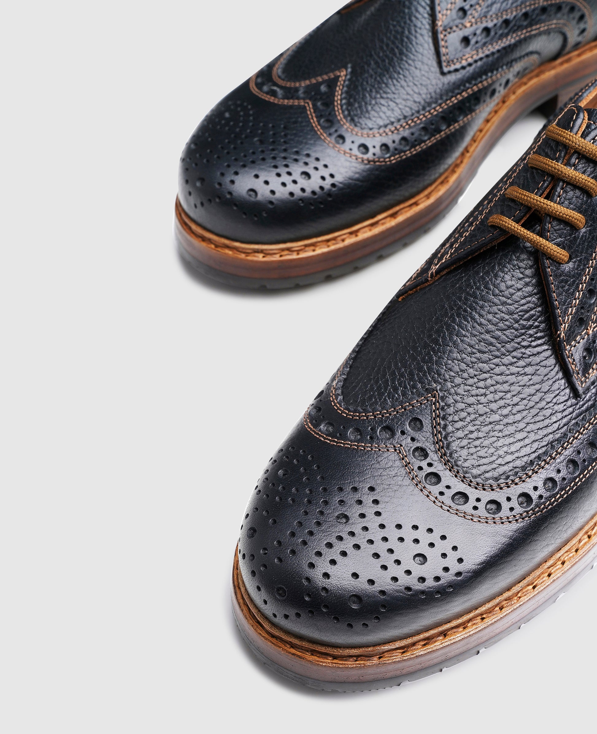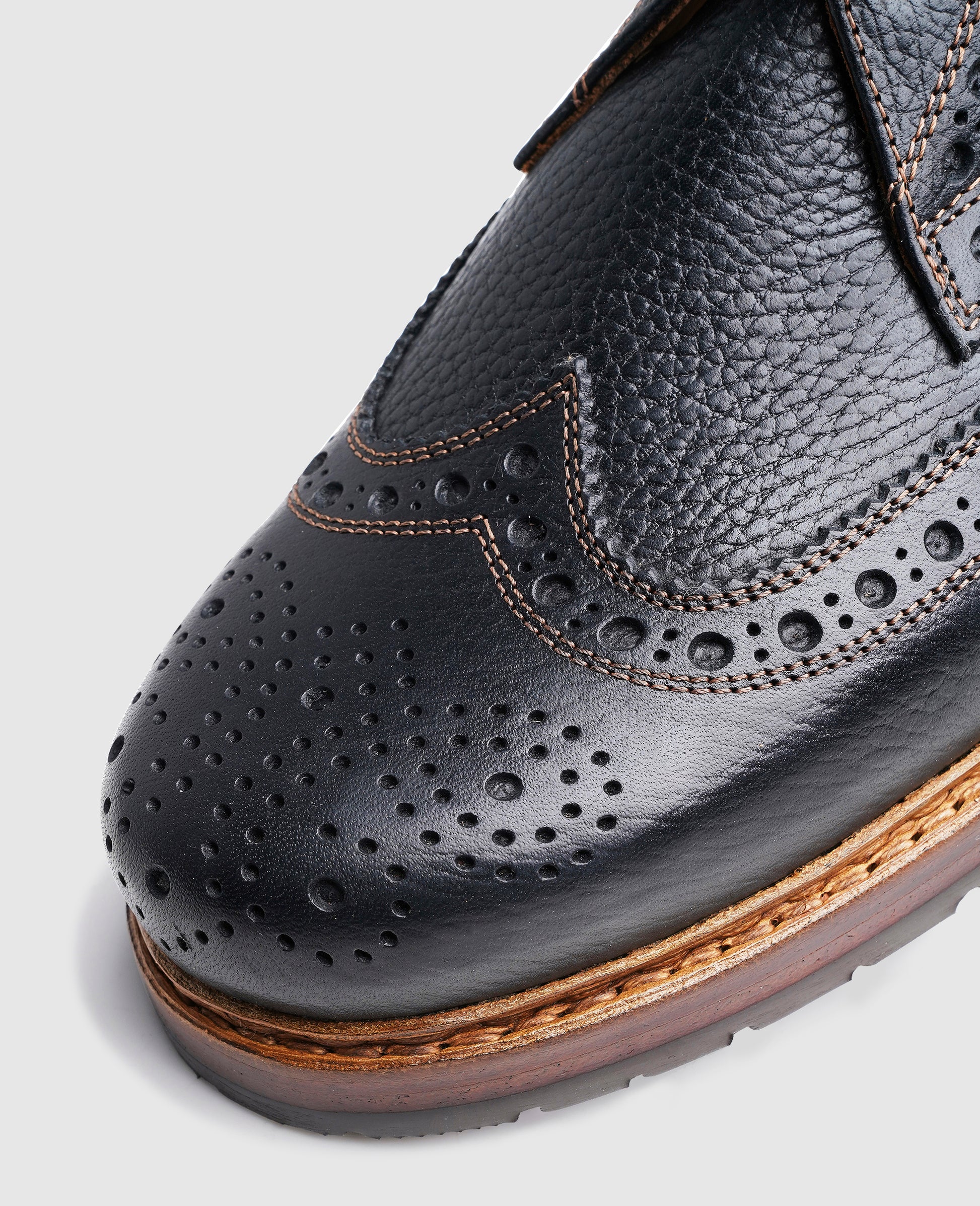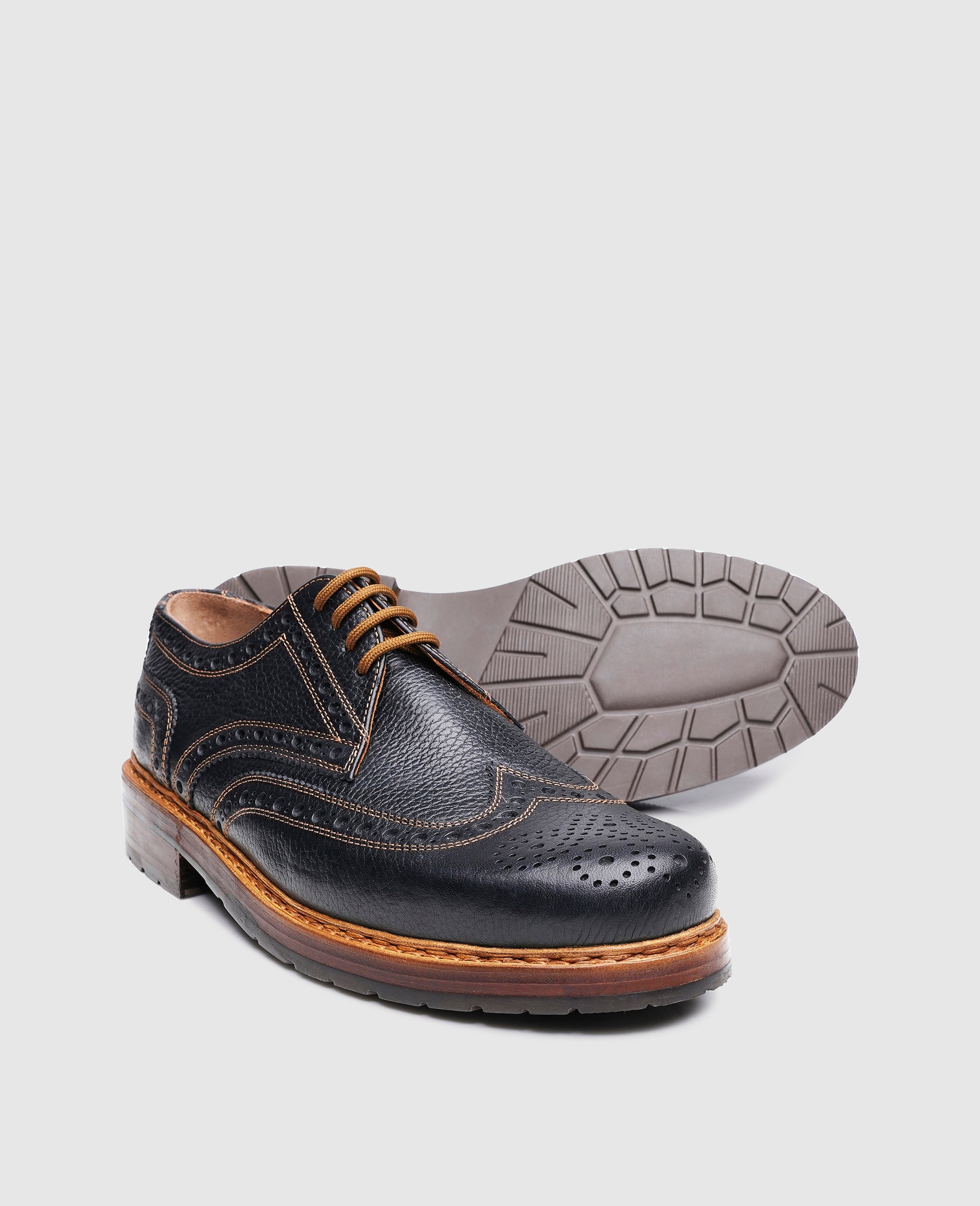 As a true legend among classic men's shoes, the elaborately handcrafted full-brogue Derby on the Rio last looks back on a long tradition at Heinrich Dinkelacker. After all, the extremely comfortable shoe last shape has been convincing for more than 60 years in our exquisite range and forms the basis for the classic Budapest shoe with robust triple outsole.Characteristic are the strikingly embossed calfskin and the opulent lyre perforation, which make a statement for classic style consciousness. The elaborate decoration of the upper part edges as well as the toe and heel cap originally goes back to the footwear of Irish and Scottish inhabitants of the swampy highlands, who could dry their softened shoes with the punched upper leather more easily. In the course of time, these brogues became an adornment and are today an indispensable element of classic men's shoes. The double-sewn lace-up shoe for men with a sturdy rubber outsole is striking and sporty – a versatile companion for both modern business attire and sophisticated leisure outfits.