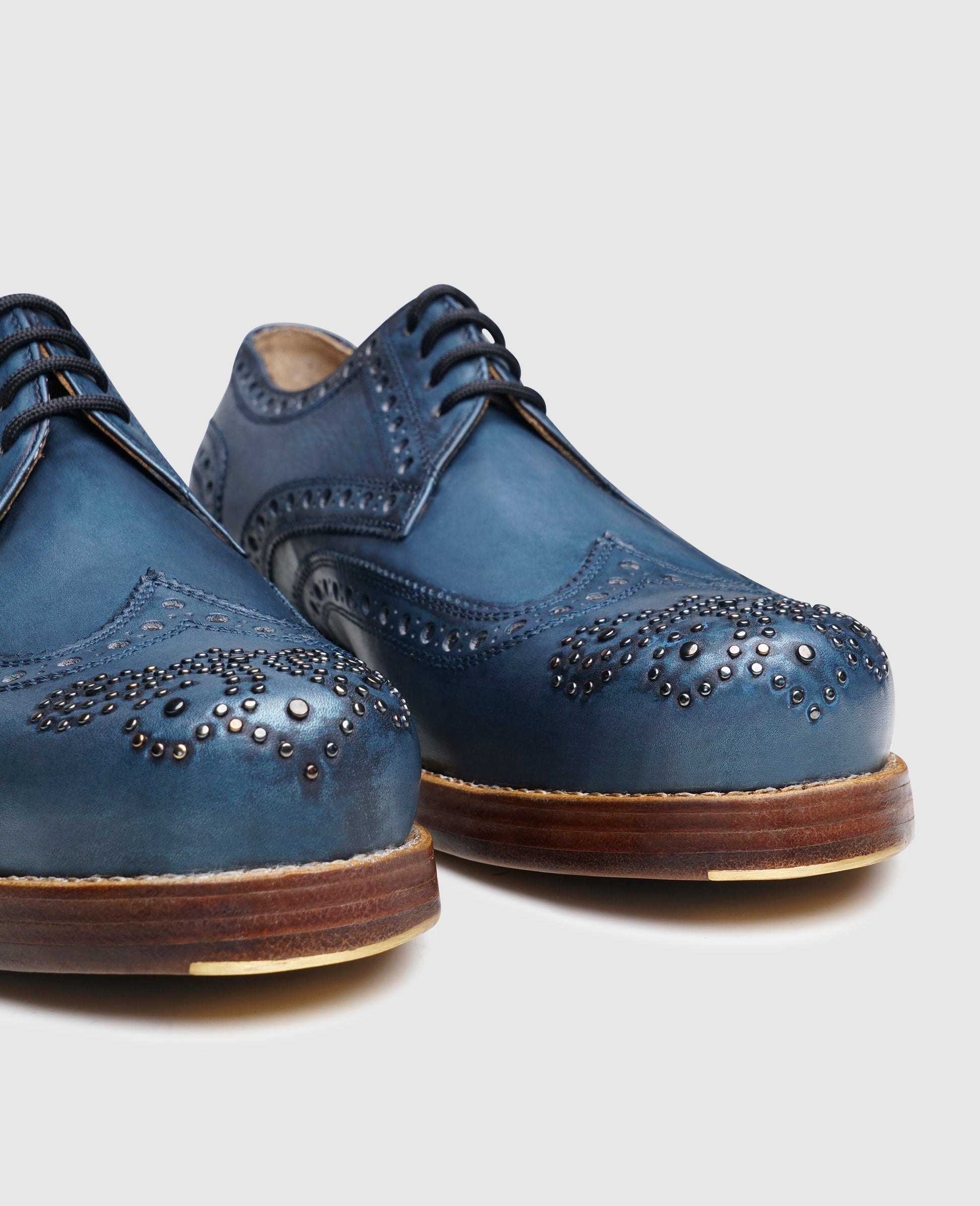 The upper, created from unique iridescent Acapella leather, is enhanced not only by the detailed pattern of perforations, but also by the studs manually driven into the toe of the shoe. The beguiling shimmer of the leather and the silver-colored decoration of the stud-like rosette lend a touch of Rock 'n’ Roll to this popular classic. As you would come to expect, exclusive shoe-making craftsmanship meets exceptional, modern design in this handcrafted, 21st century masterpiece.