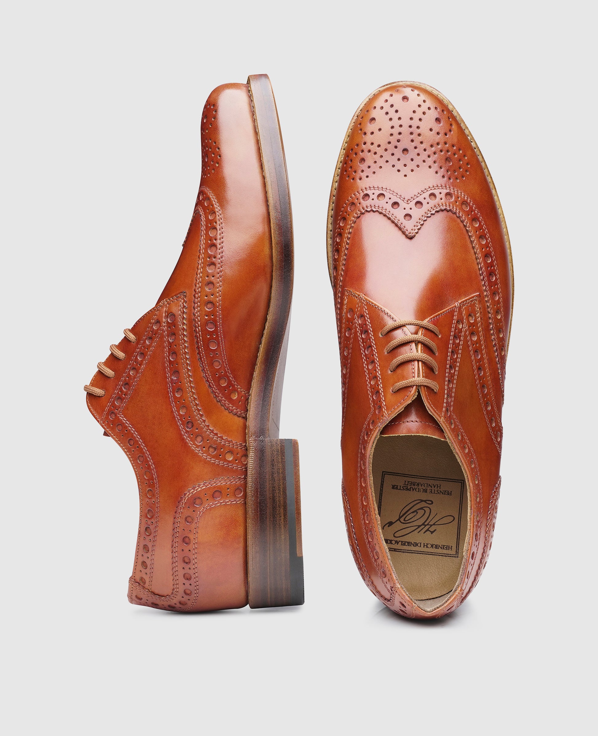 A classic in men's shoe fashion, the full-brogue Derby is given a unique look thanks to its fine Tuscan Calf. The elaborately-brushed hand finish of the soft smooth leather creates an almost 'cloudy' look that is a real eye-catcher.Manufactured on the slender Zürich last, this Goodyear-welted model is a testimony to master craftsmanship and is a faithful companion especially designed for men with a narrower forefoot. The fine double sole is made of exquisite Rendenbach leather and is additionally supported by a set of 3 nails at the toe and heel.