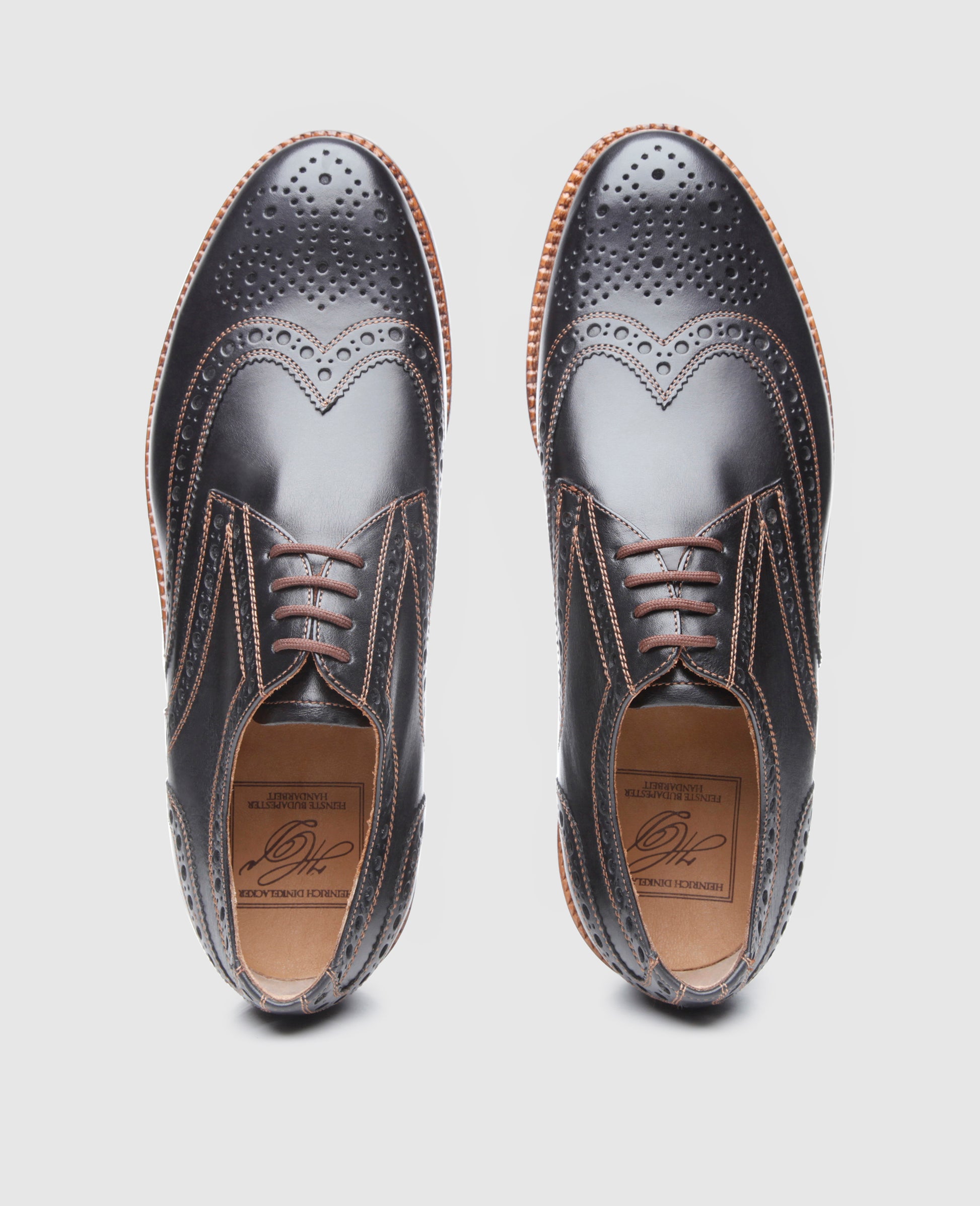 Open four-eyelet lacing, opulent decoration around the edges of the shaft pieces and a premium leather sole with a rubber lug profile define the sporty elegance of this beloved, classic shoe. This model has been made using a narrowly tapering last, making it perfect for wearers with average-width or narrow feet.