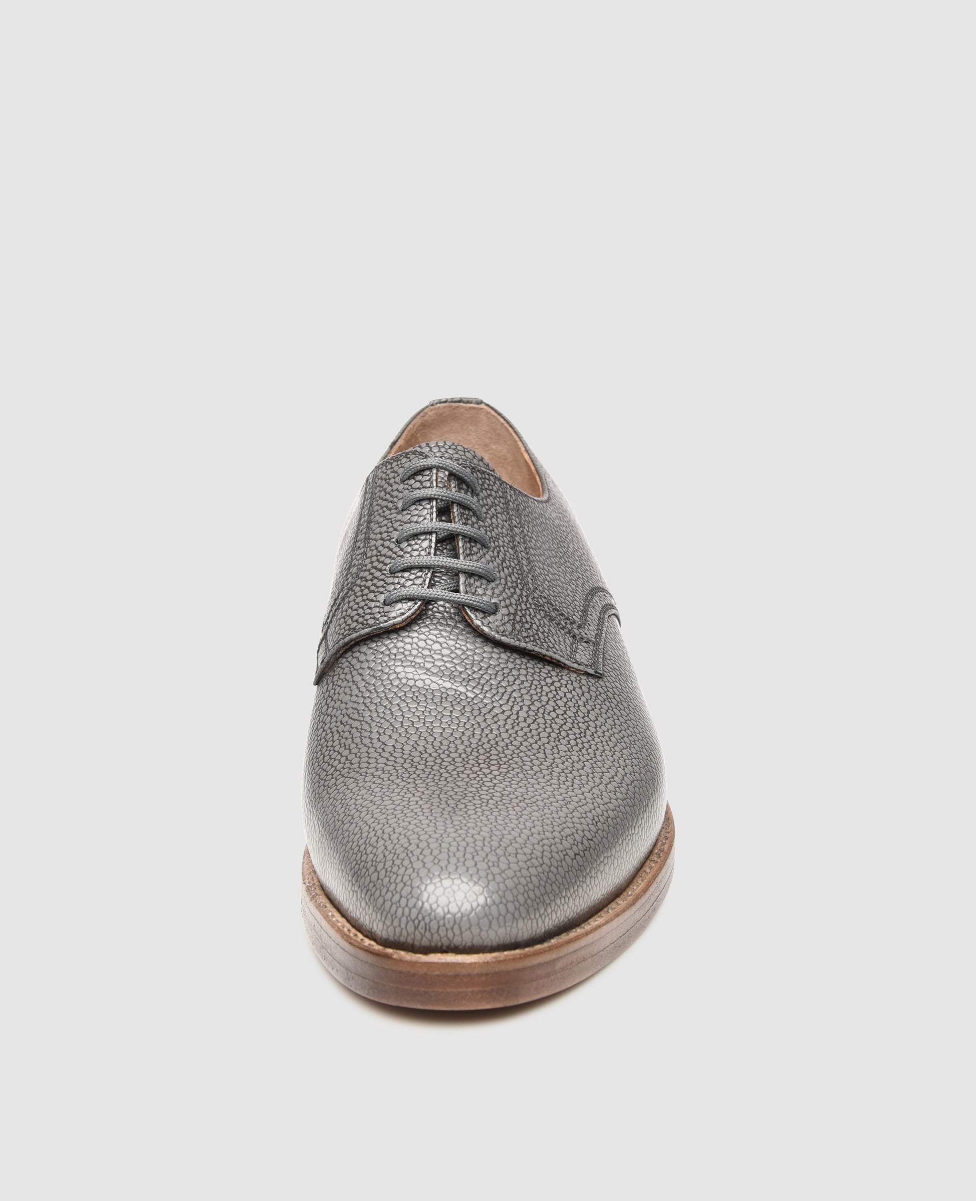 This sewn-welted plain Derby in Art Grain represents a truly one-of-a-kind piece of Budapest-based craftsmanship. It embossed calfskin upper impresses with a striking surface structure, which creates a captivating illusion of depth. A flexible double sole and assembly around a modern Milano last ensure outstanding wearing comfort for this stylish men’s shoe.