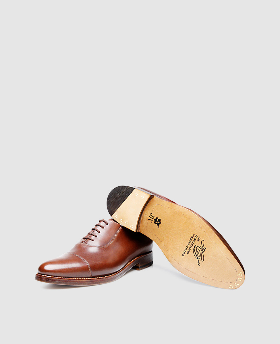 A versatile choice for business and leisure alike: presenting the sewn-welted, handcrafted cap-toe Oxford in dark brown. Its traditional design exudes the understated appeal for which this type of classic British shoe is so well-known and loved. Moreover, it also features the Oxford’s distinctive closed five-eyelet lacing.This shoe’s shaft consists of the finest, aniline-dyed leather, which develops a charming patina over time. The eponymous toe cap seam subtly relaxes the shoe’s look. Meanwhile, a durable double sole made of leather underscores the elegant appeal of this perennially popular men’s shoe model.Last but certainly not least, this cap-toe Oxford was assembled around a last that gently tapers toward the front, making it perfectly suited for gentlemen with average-width or narrow feet.