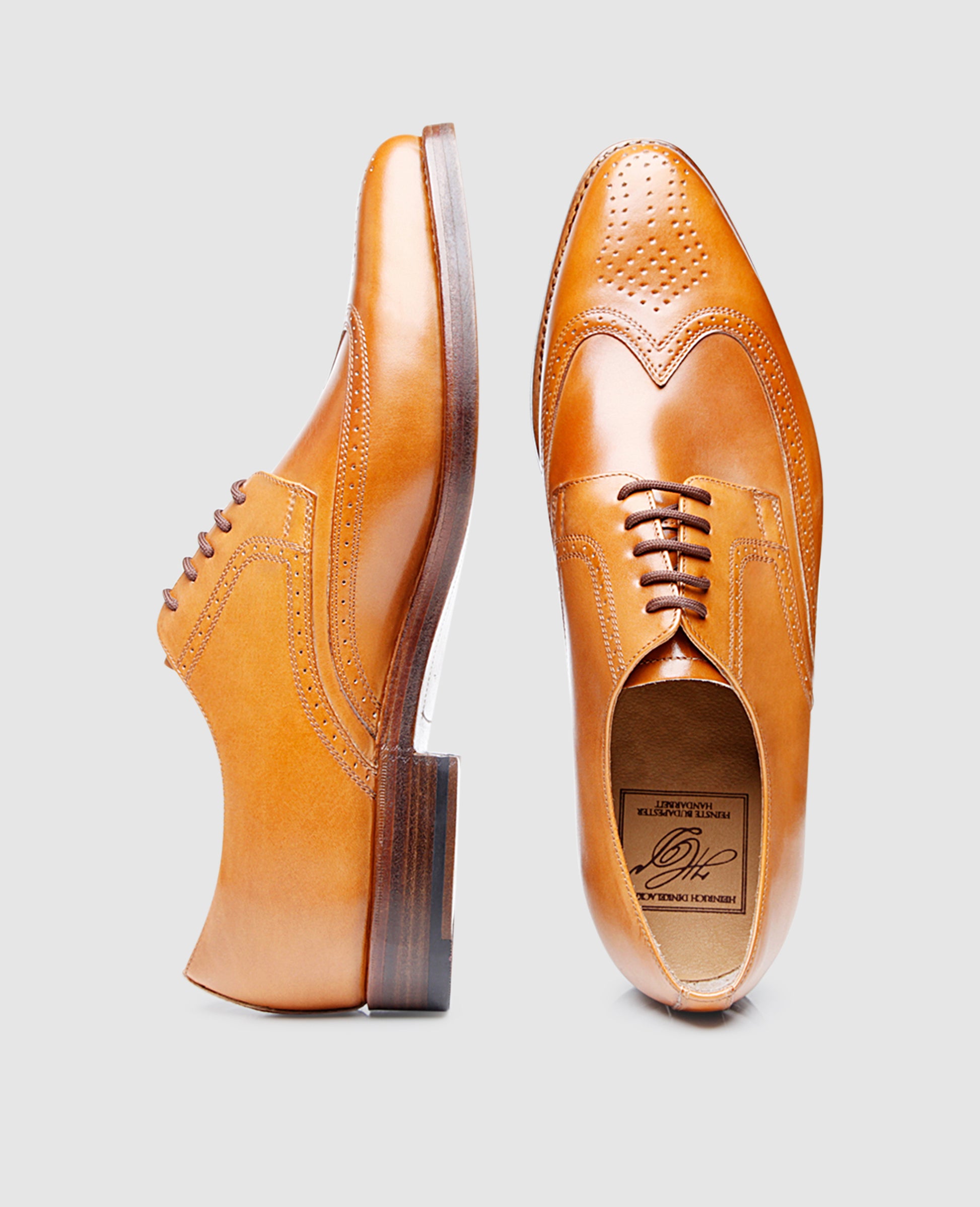Elegant and lively, this sewn-welted full-brogue Derby for men features meticulous perforation along the edges of the shaft pieces as well as at the front. Delicate decorative holes with a downright geometric meticulousness to them create a thrilling contrast against the curved wing cap.
