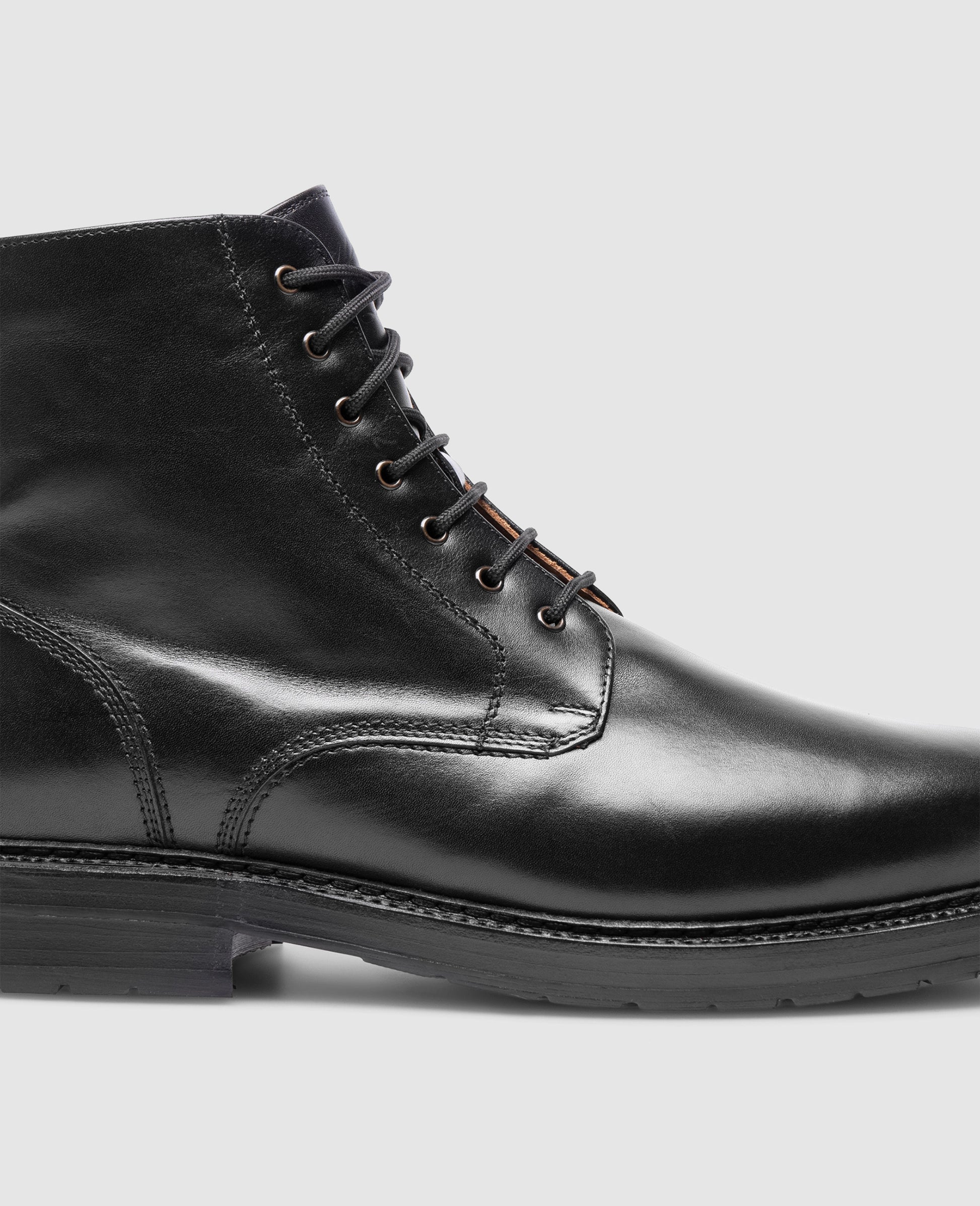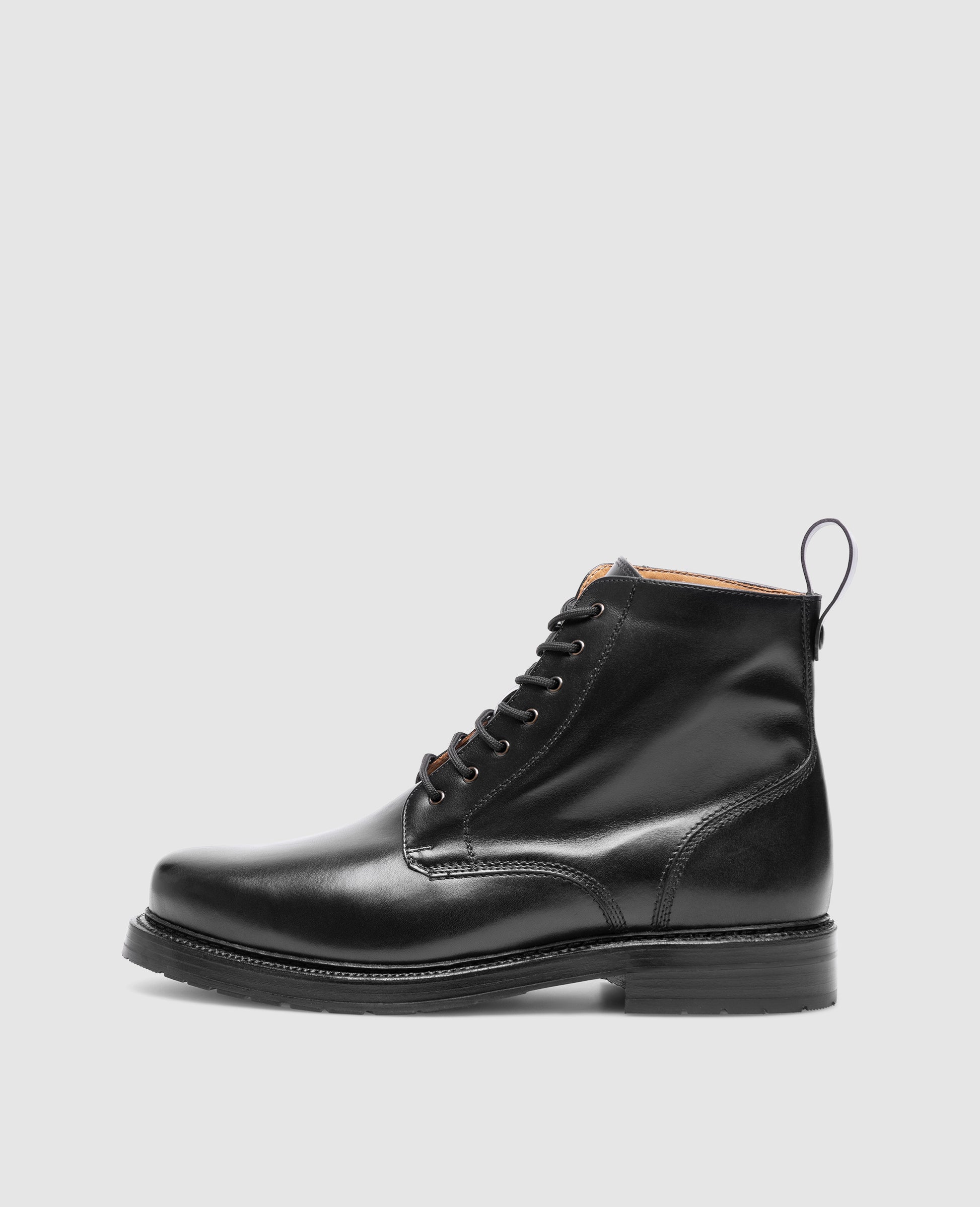 The first derby plain boot in our Heinrich Dinkelacker collection, a must have due to it's simplicity and beauty. The Buda Plain comes in a triple black colorway, featuring a rich boxcalf leather all over combined with a full leather lining all the way down until the toes. The well known triple stitch lines on heel and eyestay layer makes the Buda Plain the perfect showcase of our long history in handcrafted good year welted shoes crafted in Europe. Subtle but important details such as the rivet and heel loop attached to the heel top area makes the Buda Plain timeless and high quality, a boot worn for the next decade to come.