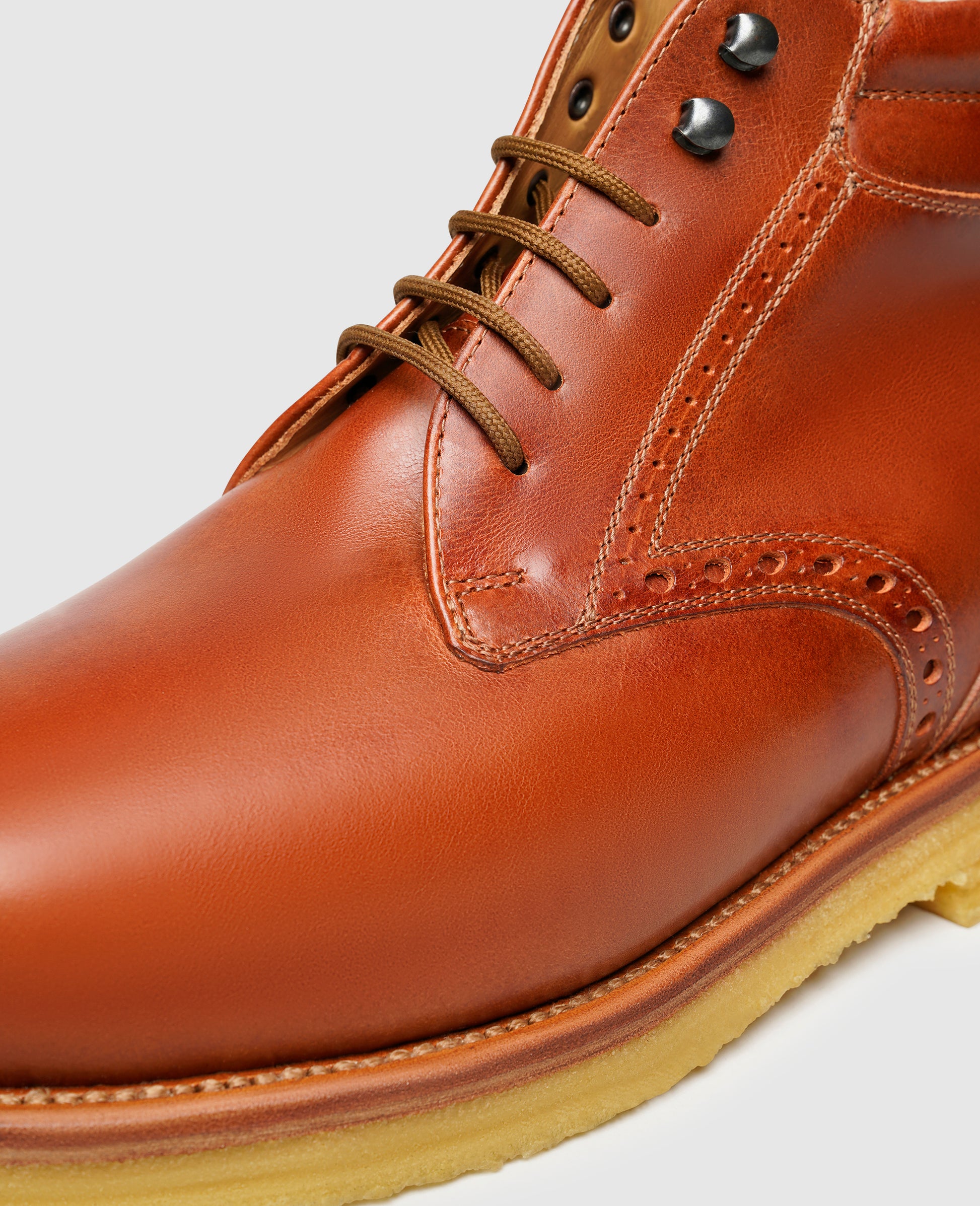 You will find your ideal match for the cold and wet season in these handcrafted, Goodyear-welted boots from Heinrich Dinkelacker. This classic lace-up boot inspires with its exquisite smooth leather, which is highly durable thanks to an additional wax treatment that also develops a fascinating patina over time. The dynamic flair of this model is supported by its combination of hook-and-eye lacing with elegant detailing along the shaft edges. Inside the model, a cozy, warm lambskin lining guarantees comfort even in frosty temperatures. The crowning glory is the sturdy crepe sole – the elaborate construction of the sole ensures reliable stability even on slippery paths.
