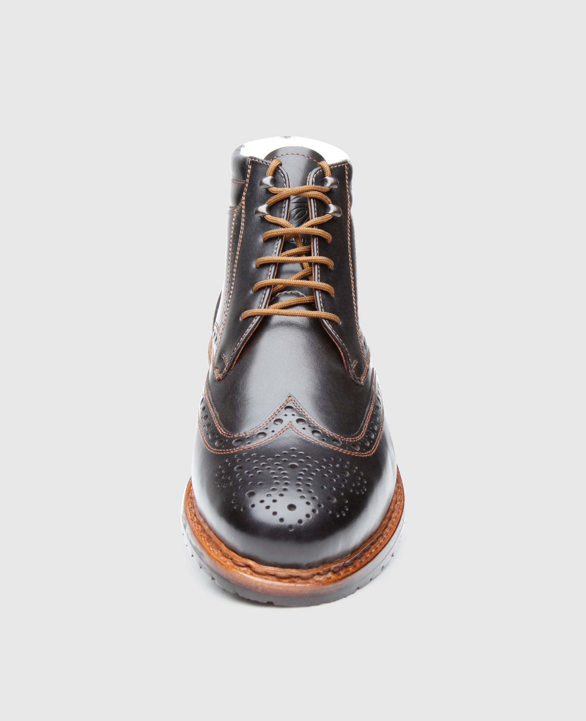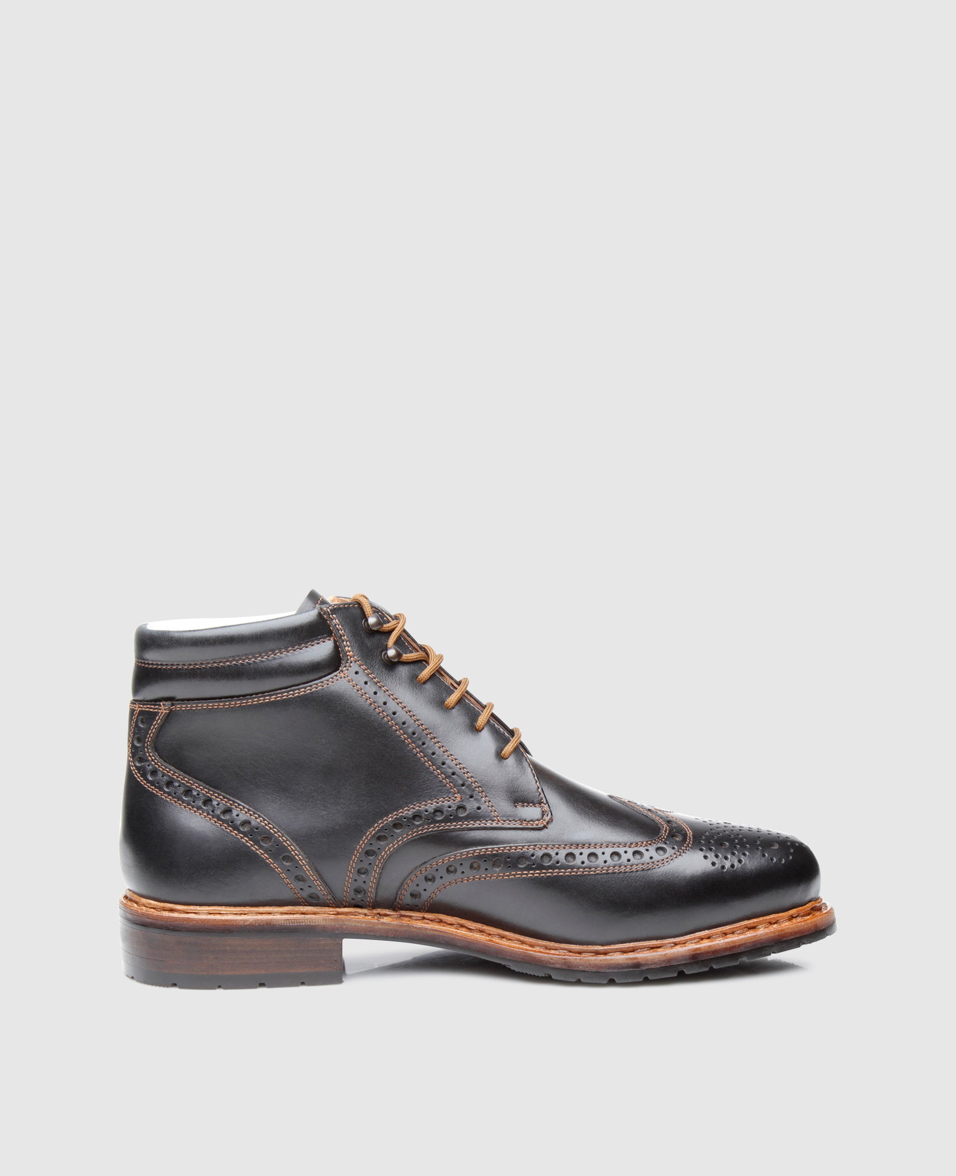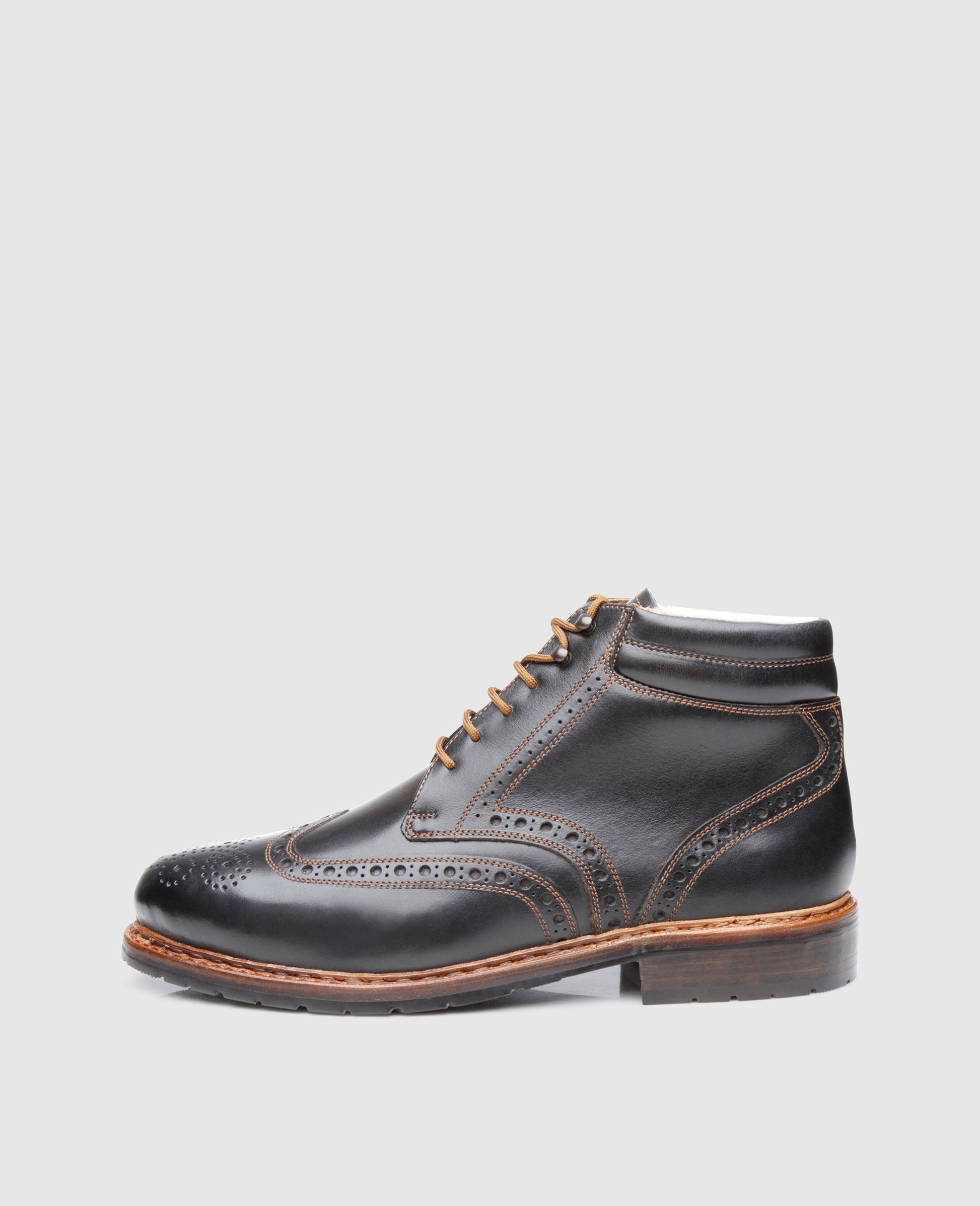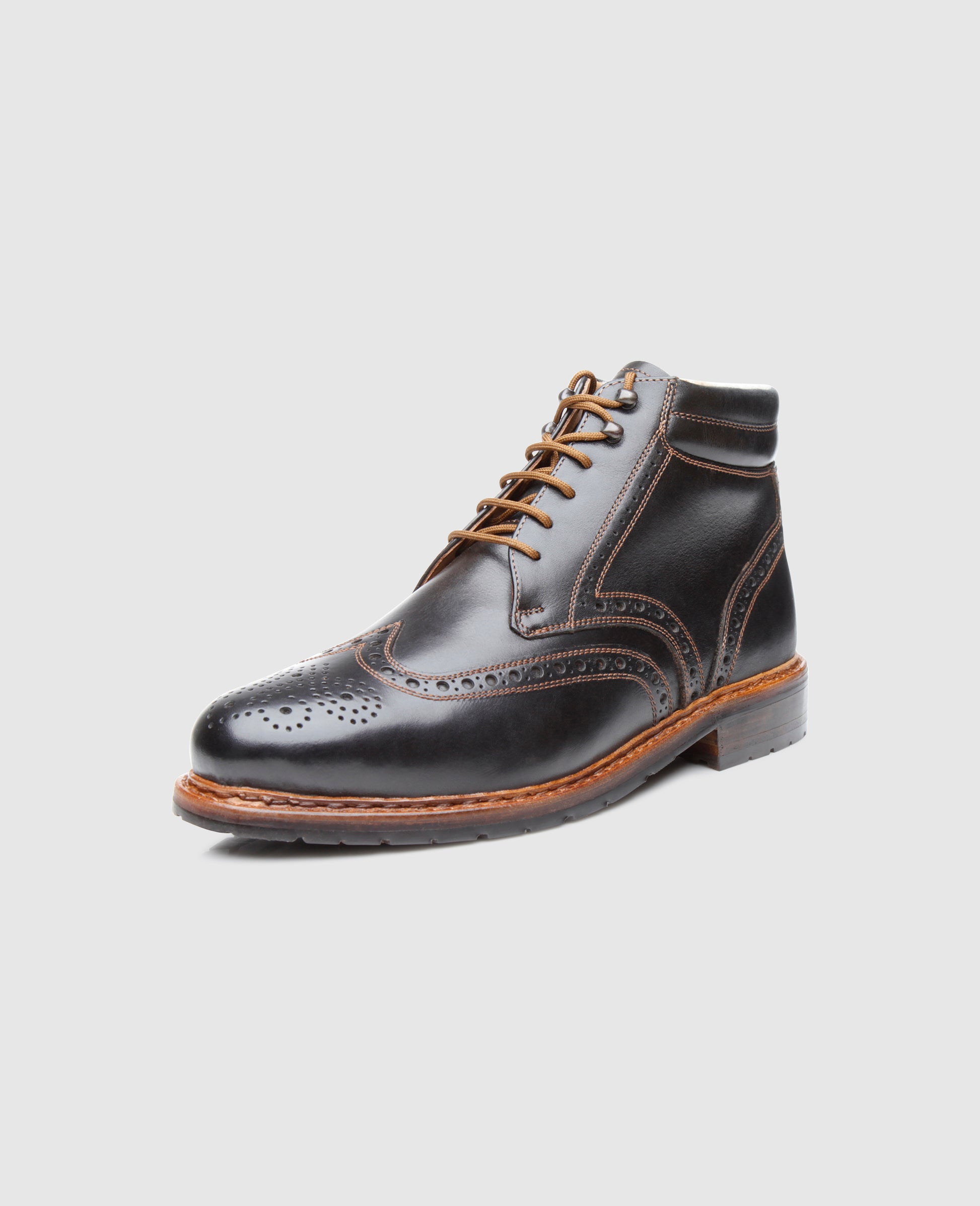The shaft of this men’s double-stitched, lace-up boot is made from supple Swiss calf. This aniline-dyed calfskin boasts an elegant look, and is also extremely durable and water-resistant. The boot is lined with warming lambskin lining that will keep you feeling toasty, even in the coldest weather. Meanwhile, a fine leather midsole and attached rubber outsole keep you standing firm on slippery surfaces. All in all, this full-brogue boot is a stylish, functional choice for the fall and winter months.