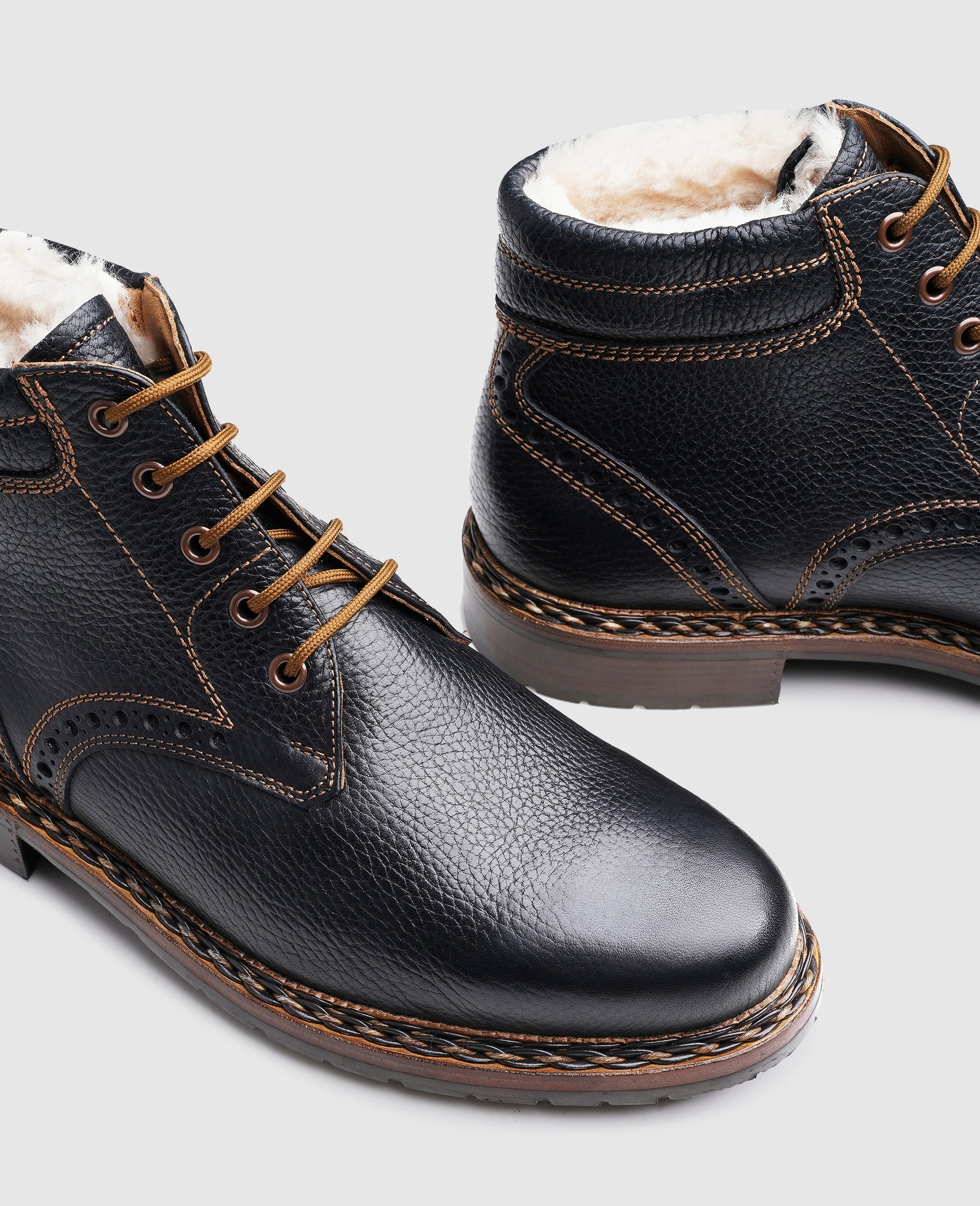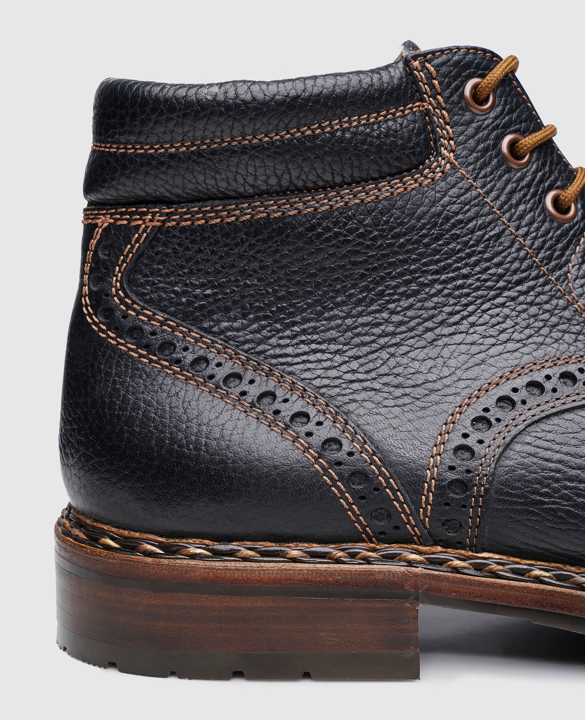 This double-stitched model from our men's boot collection proves itself to be a weatherproof companion. The classic basic cut of the shaft is given a captivating effect thanks to the embossed calfskin, which in time acquires its characteristic pull-up effect. The hand-woven braided welt embodies the art of master shoemaking – today, as in the past, this elaborate detail continues to transform traditional boots into true pieces of craftsmanship.