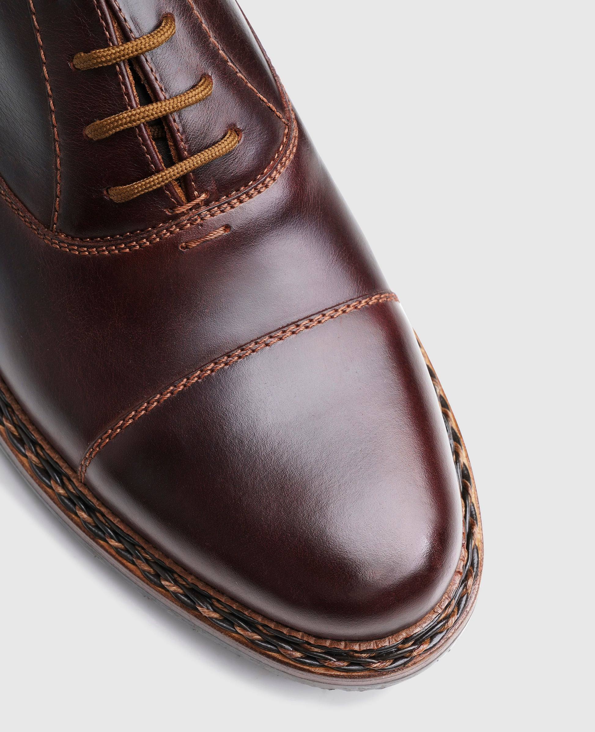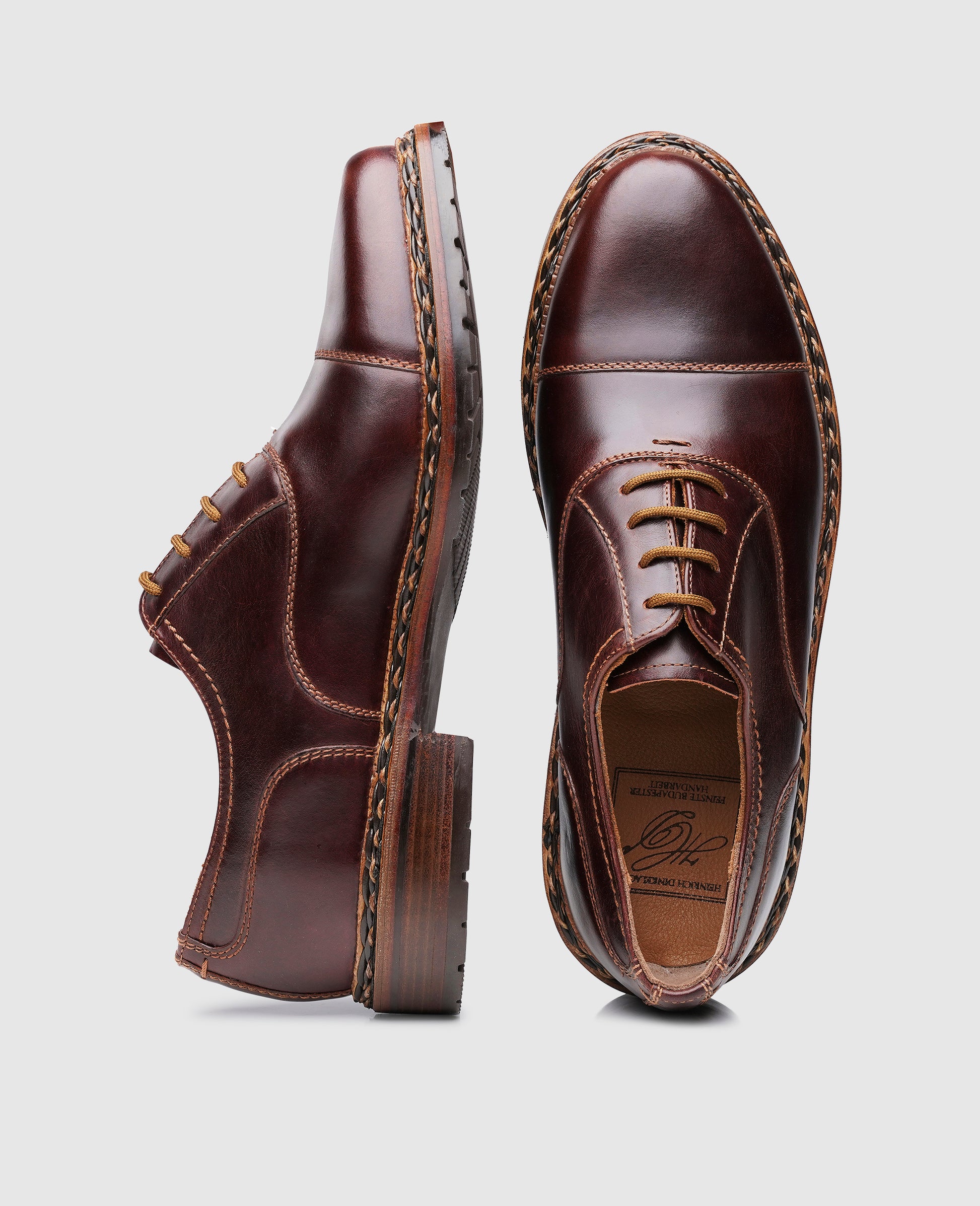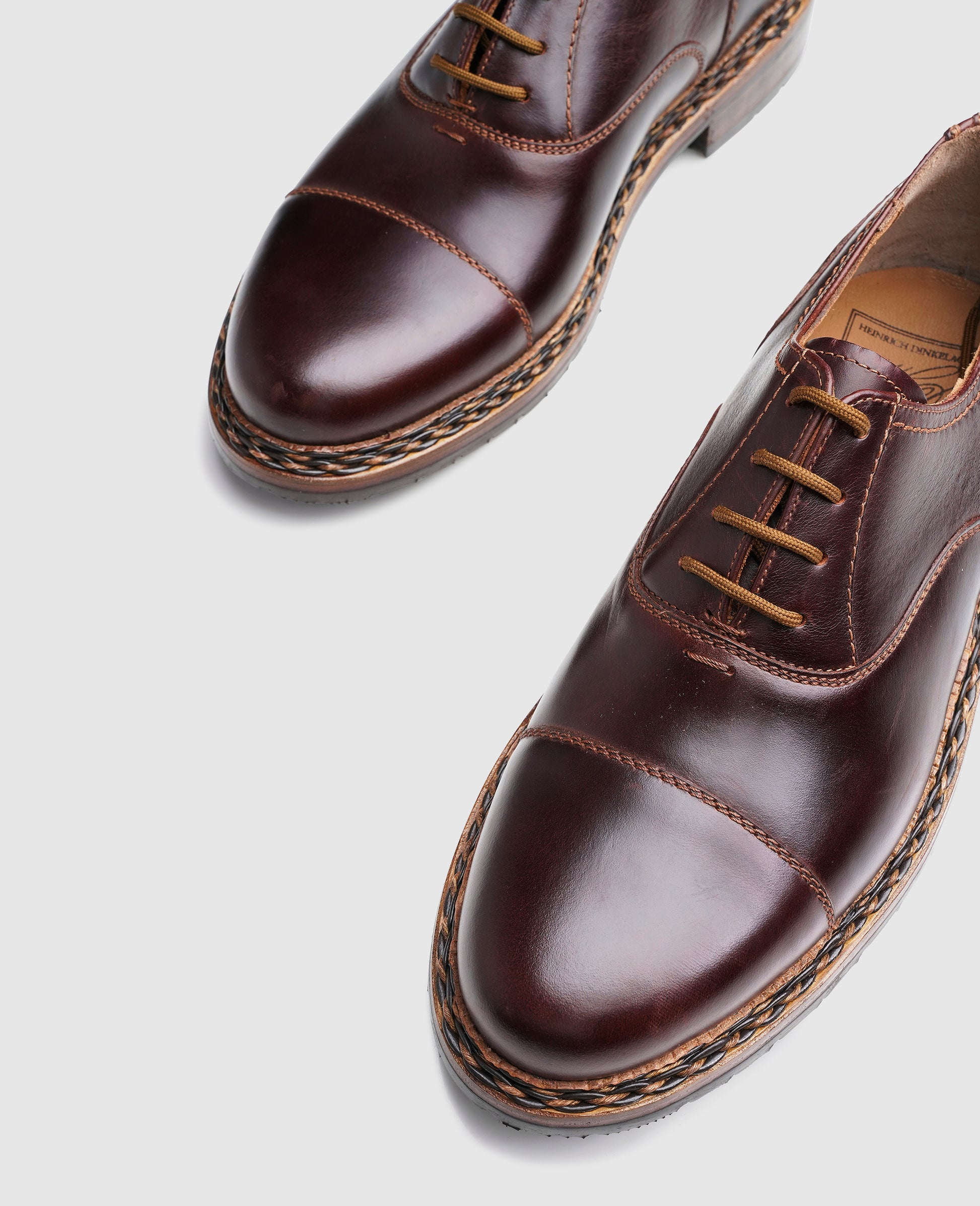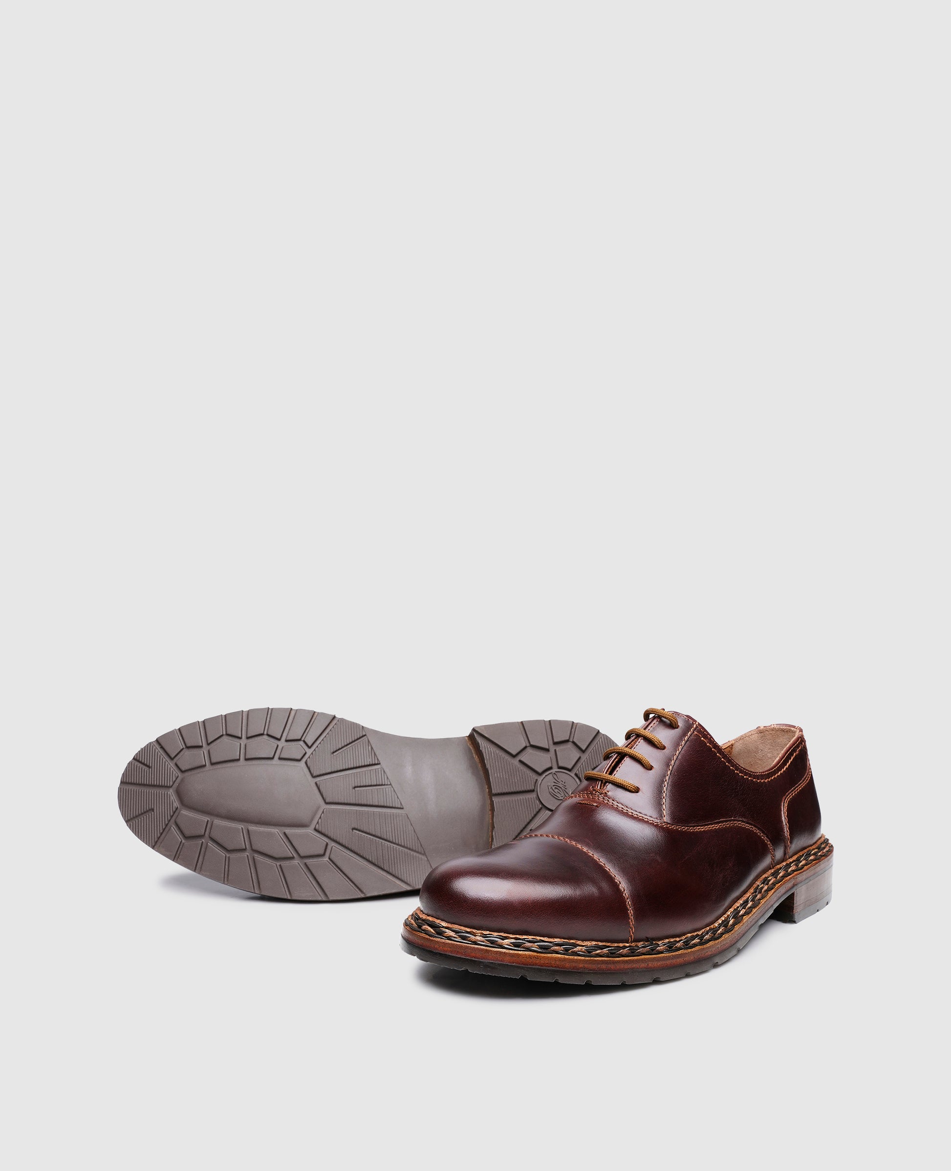 The Buda Captoe MA is a robust companion, especially for those wet and cold days. In this model, traditional elements meet modern design. The classic base cut of the shaft of a cap-toe Oxford and the hand-woven braided welt, for which Heinrich Dinkelacker is famous all over the world, are combined here with a waxed upper leather and a robust sole construction. The calfskin leather, known as Mambo, is a greased leather that develops an individual patina over time.