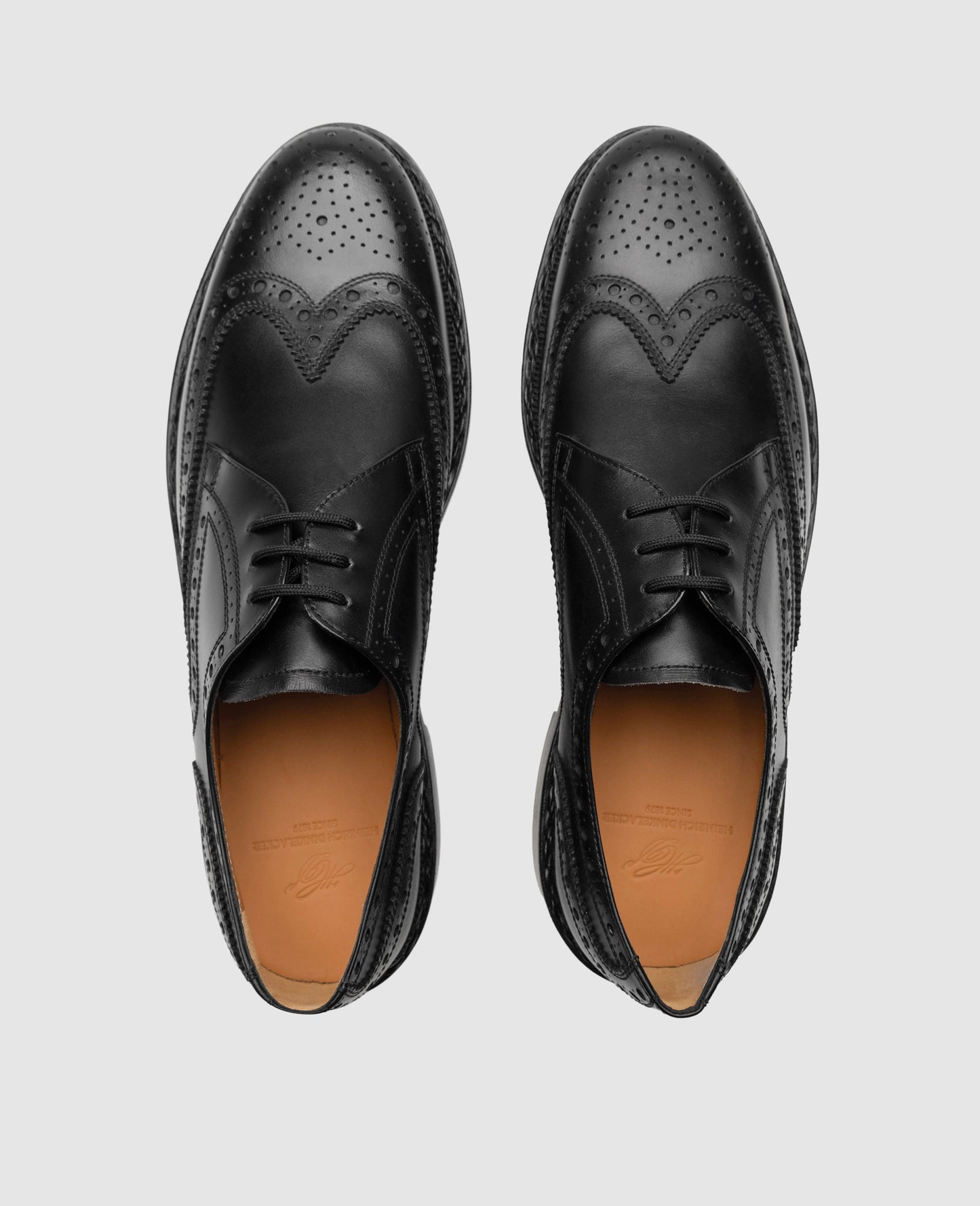 The handmade and double-stitched Full-Brogue Derby proves to be an elegant all-rounder. The classy full leather shoe is characterized by an open 3-hole lacing, detailed lyra perforations and a double leather sole with an elaborate 6-point nailing on the toe. Throughout the world the full-brogue Derby is also known as “Budapester” and is one of the most popular men's shoes ever. The hand-stitched braided welt, in which two additional leather straps are woven between each stitch, is pure luxury of craftsmanship. The supple box calf, a shiny, aniline-dyed calfskin, also guarantees a very fine yet firm surface texture - predestined for elegant men's shoes.