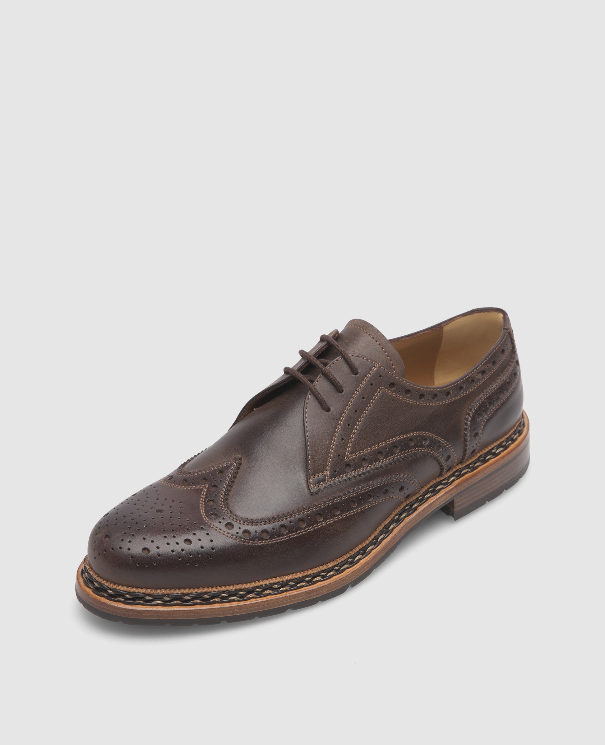 The handmade and double-stitched Full-Brogue Derby proves to be a sporty and elegant all-rounder. The classy full leather shoe is characterized by an open 3-hole lacing, detailed lyra perforations and a durable rubber sole. Throughout the world the full-brogue Derby is also known as “Budapester” and is one of the most popular men's shoes ever. The hand-stitched braided welt, in which two additional leather straps are woven between each stitch, is pure luxury of craftsmanship. The waxed and hydrophobized nubuck proves to be particularly robust and water-repellent and gives the shoe a particularly sturdy character.