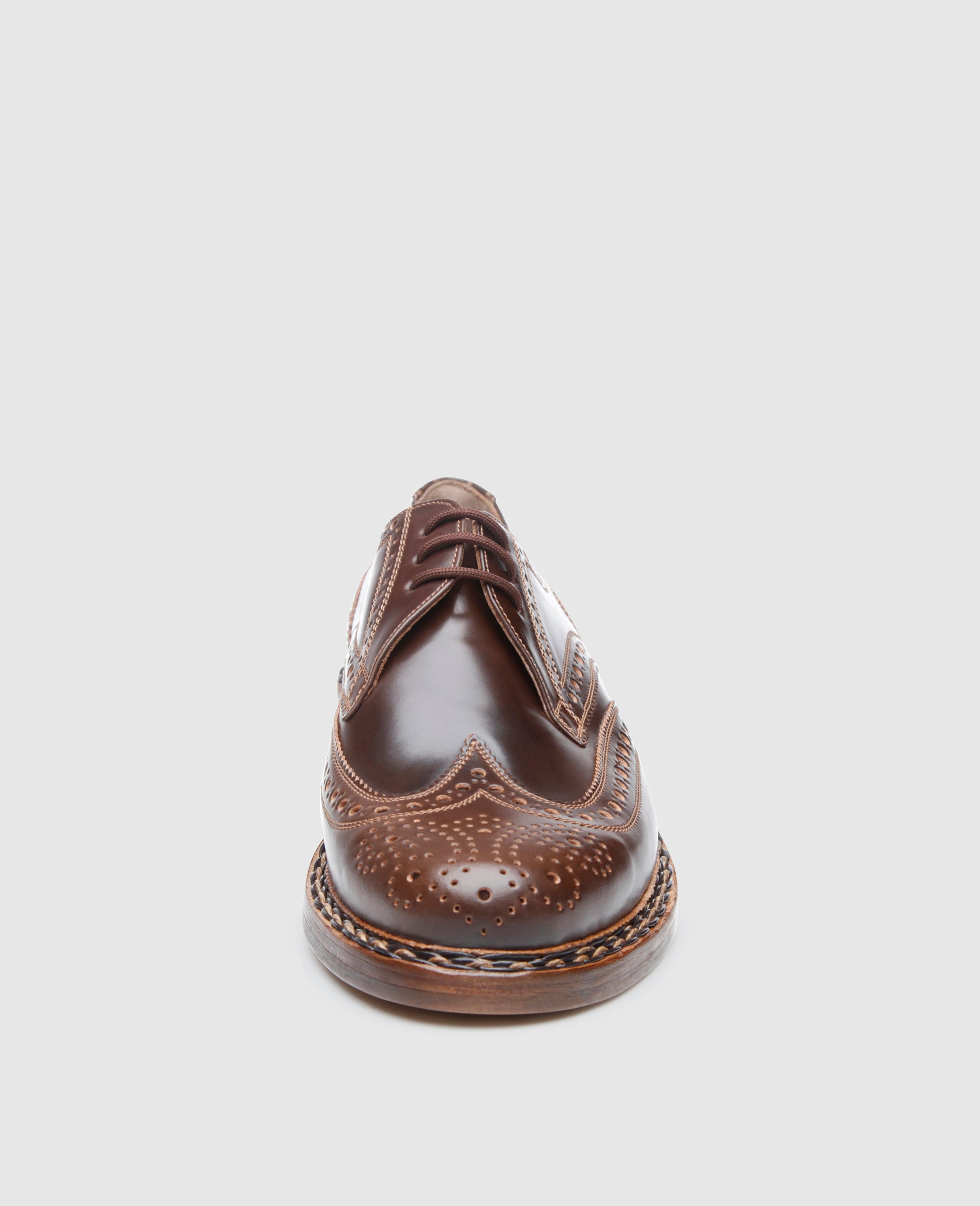 This full-brogue derby for men is the result of masterful craftsmanship. Exquisite Shell Cordovan from the US tannery Horween adorns the upper, which has detailed Lyra perforations. The most sought-after smooth leather in the world is characterised by its high fat content, which makes it resistant to scratches and impresses with its supple feel.Created by hand on the Buda last, the hand-stitched cable frame is an unmistakable feature of an elaborate manufacturing process. It takes a total of 300 steps to complete a genuine Budapest shoe like this one. The lace-up shoe with open 3-hole lacing is crowned by the leather outsole from the traditional Trier-based company Joh. Rendenbach. The leather sole is attached with 66 brass pins using 6-point nailing and promises durability and comfort.