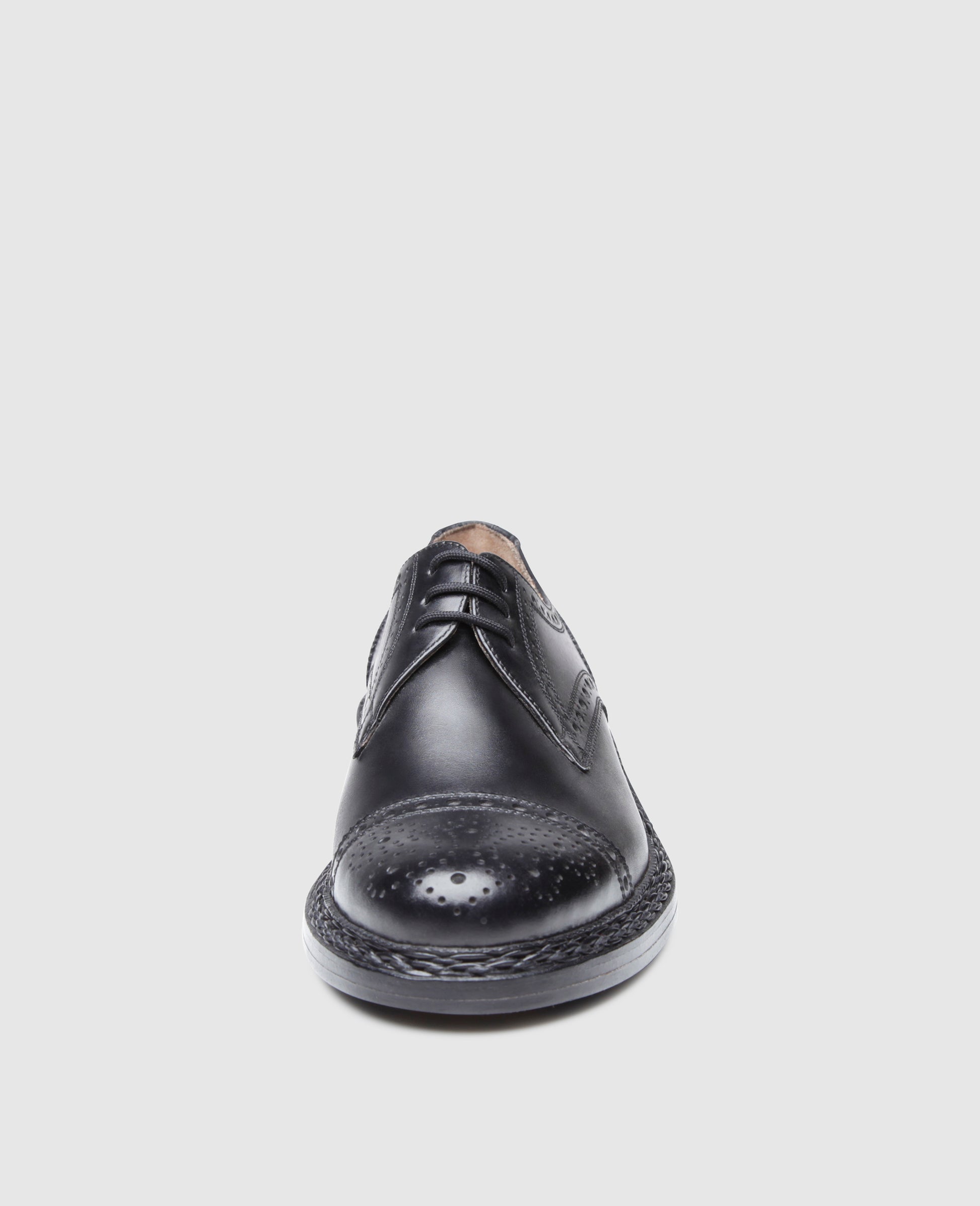 This shoe boasts a hand-stitched braided welt that meets lovely Lyra perforation along the edges of the shaft pieces. Unlike an opulently decorated full-brogue, this half-brogue features patterned perforation that is more on the subtle side, and forgoes a curved wing cap.