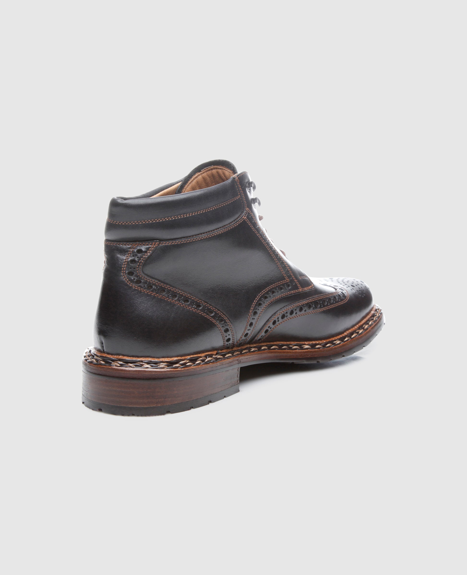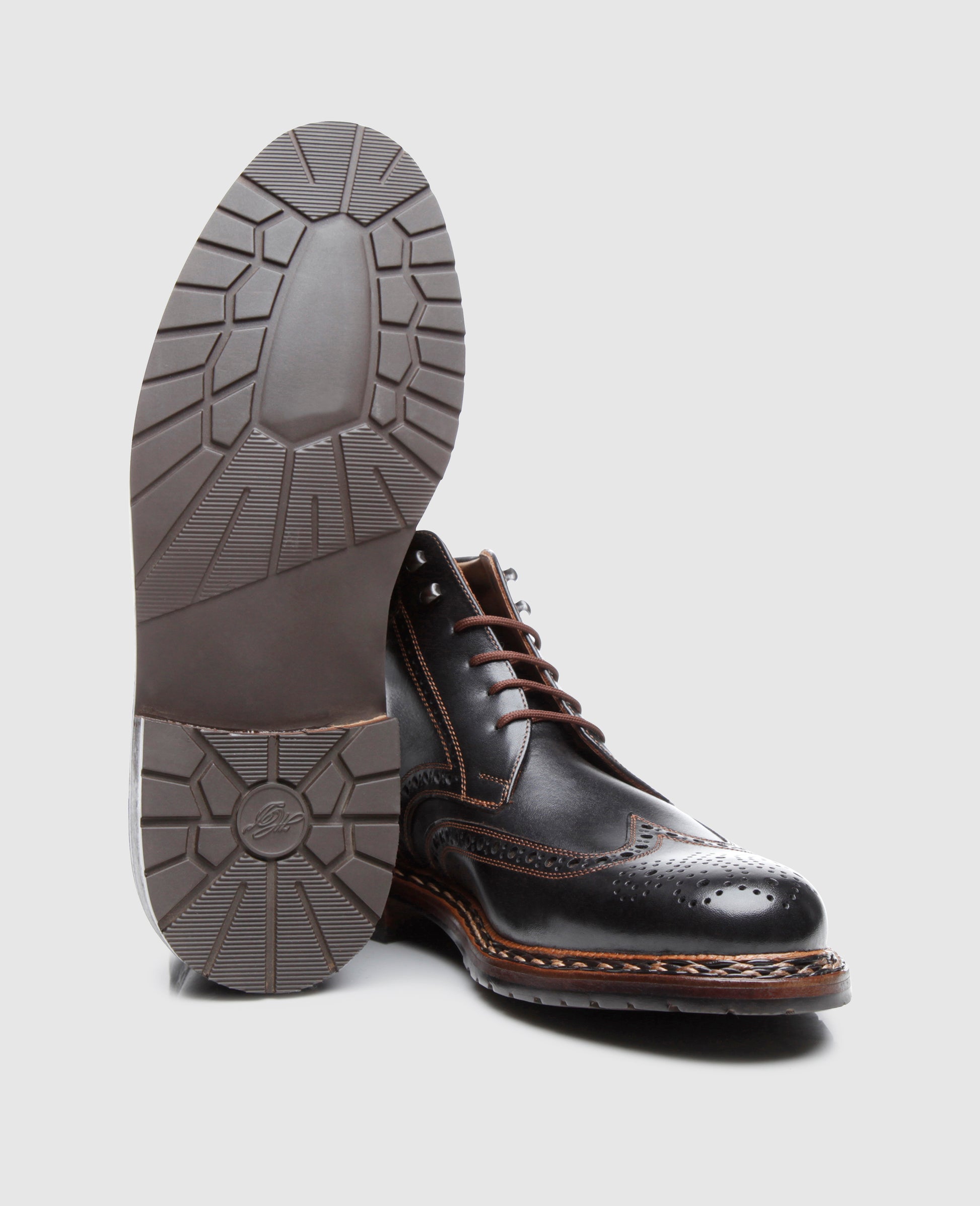 This double-stitched men’s boot is a waterproof version of a classic, low-rise full-brogue Derby. The opulent decorative detailing on the shaft and hand-woven braided welt serve as striking testaments to the masterful craftsmanship that went into creating this model.