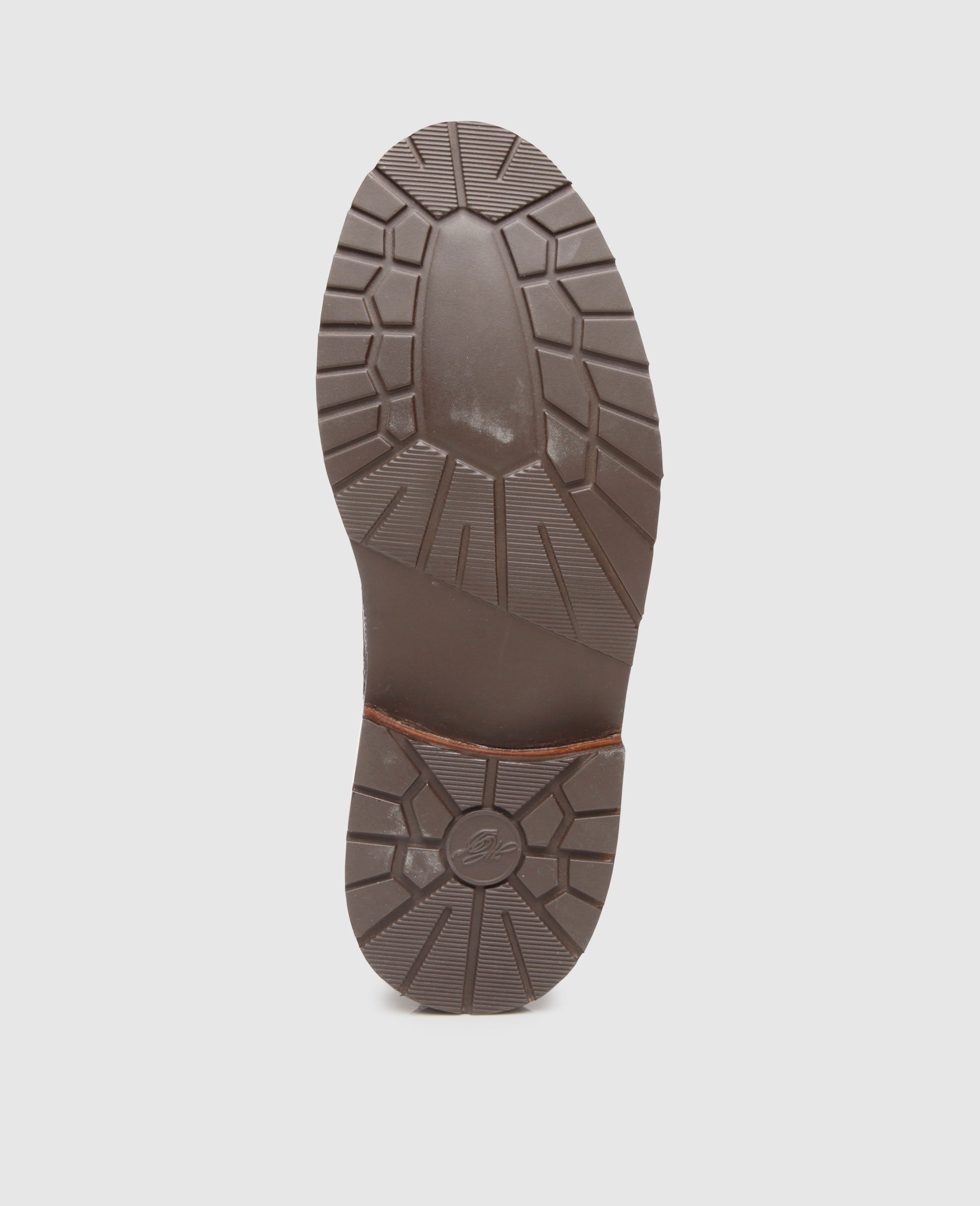 This classic double-stitched boot for men surprises with an air of modern nonchalance. This waterproof model features a significantly higher shaft than a traditional full-brogue Derby, which ensures premium comfort for wearers in the cold, wet season. Moreover, a stabilizing rubber lug sole ensures firm traction on wet and smooth surfaces.