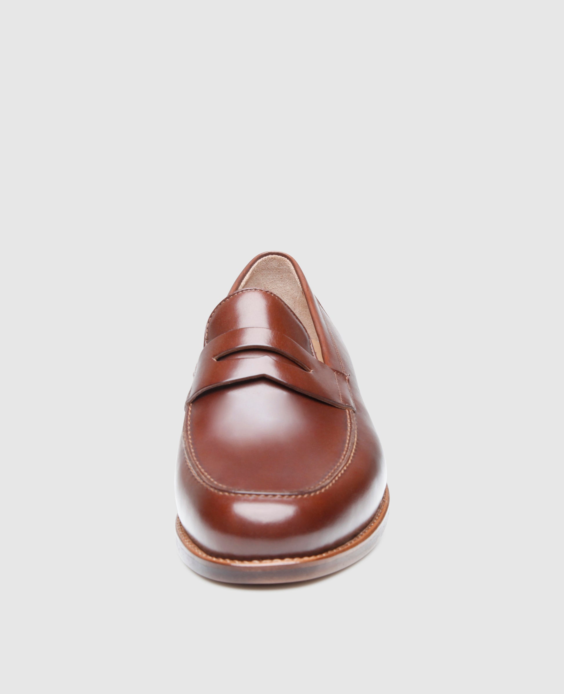 The classic, average-width penny loafer is available in dark brown and ‘Nut’.