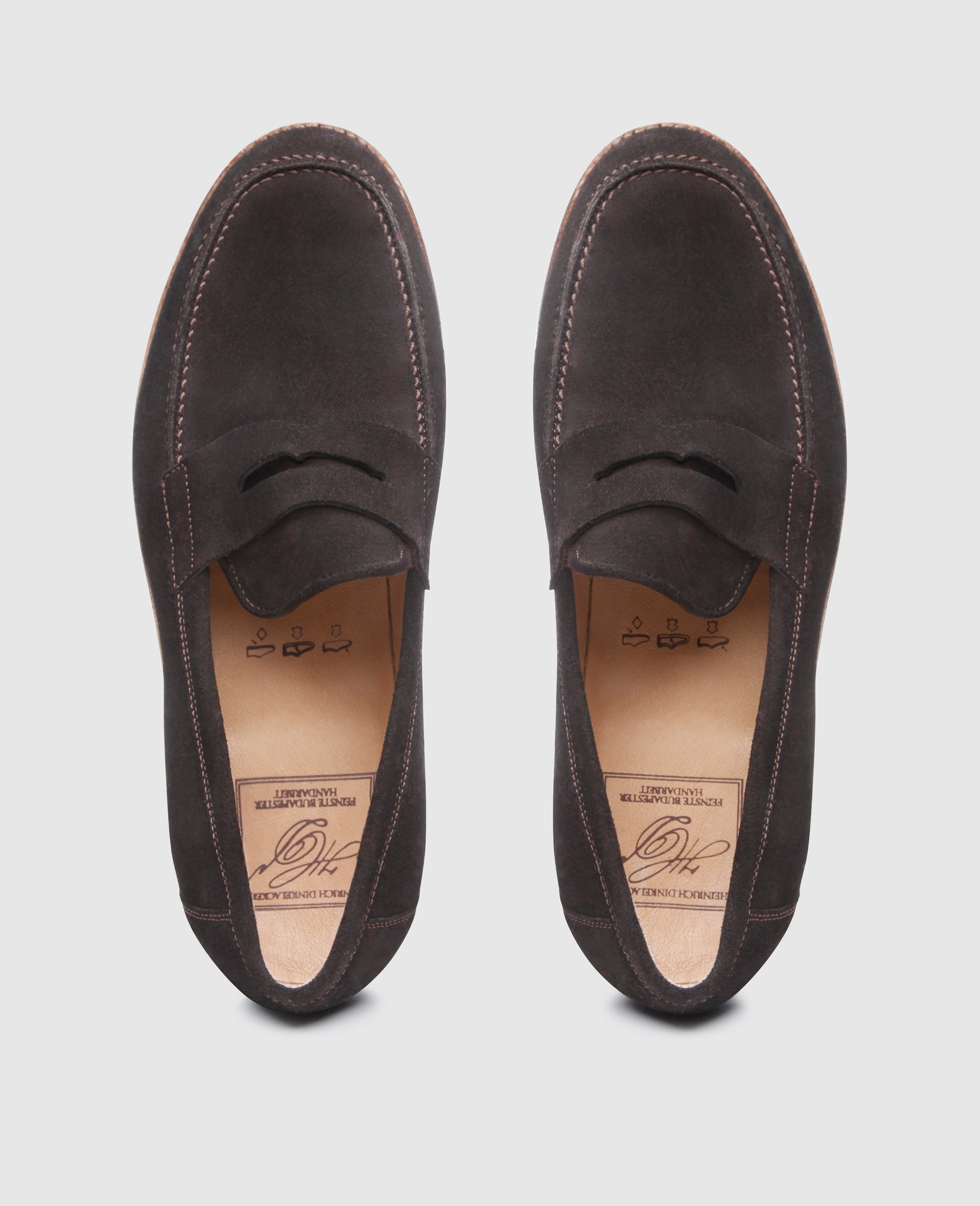 The sewn-welted design is a hallmark of the highest craftsmanship and is extremely rare, especially for slip-on shoes. More than 300 work steps go into the production of the handcrafted, luxury shoes made at Heinrich Dinkelacker. This penny loafer is a stylish companion for warm days thanks to its lightweight double sole with flexible rubber sole.