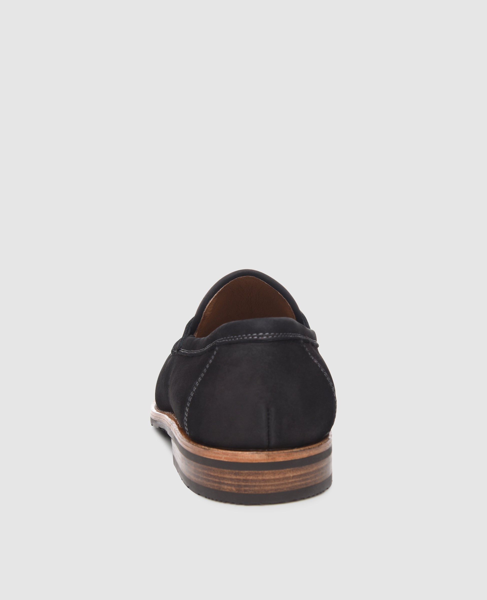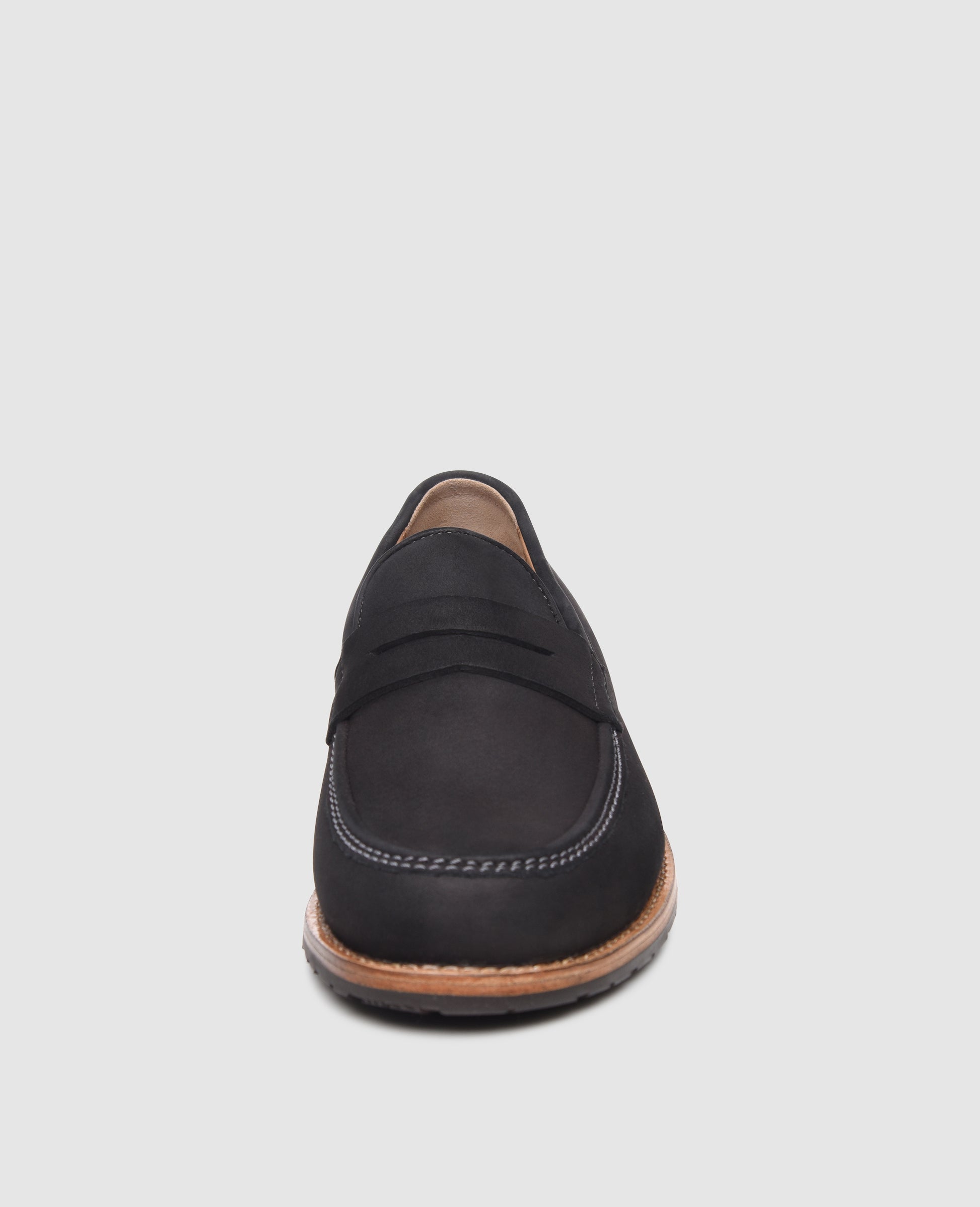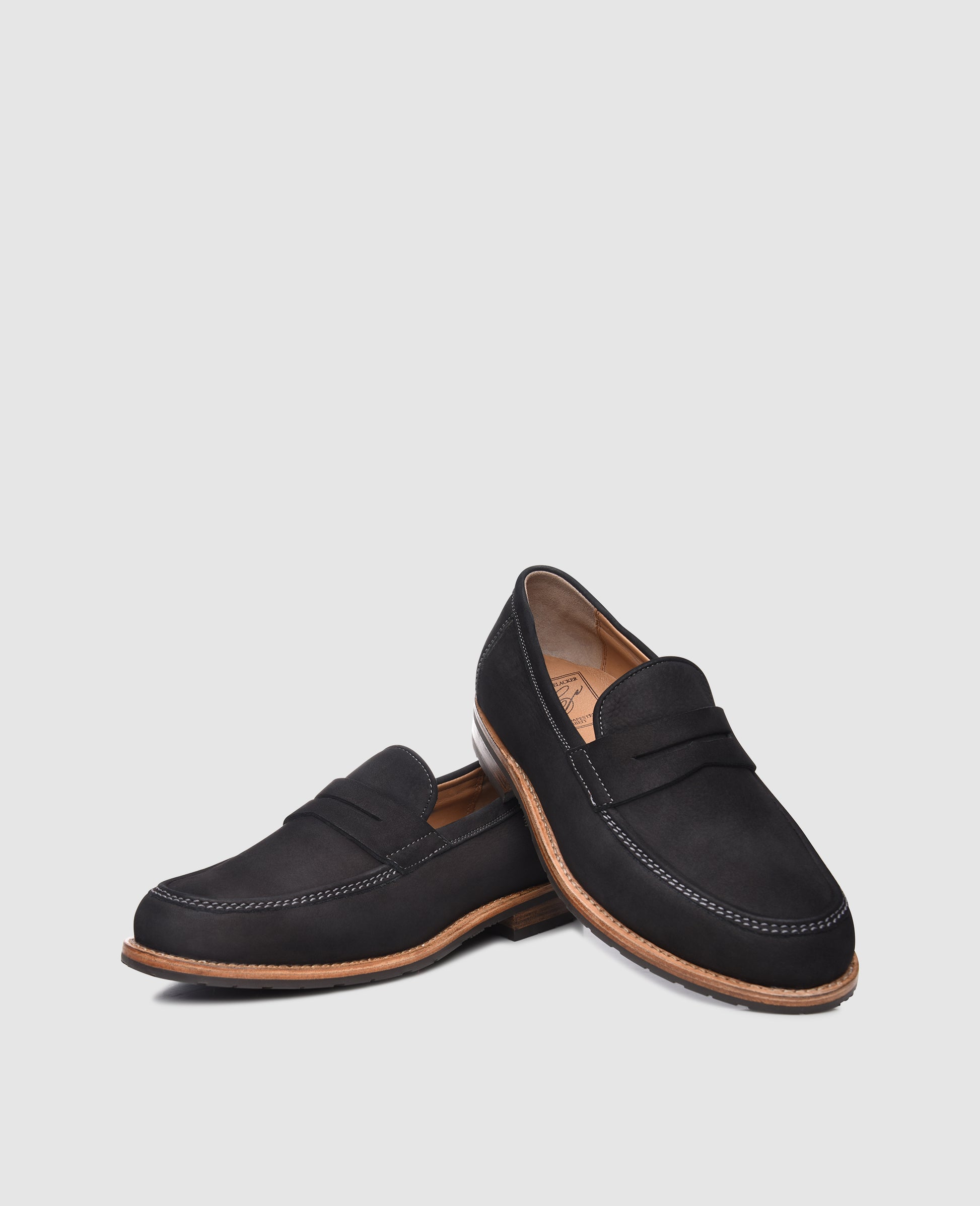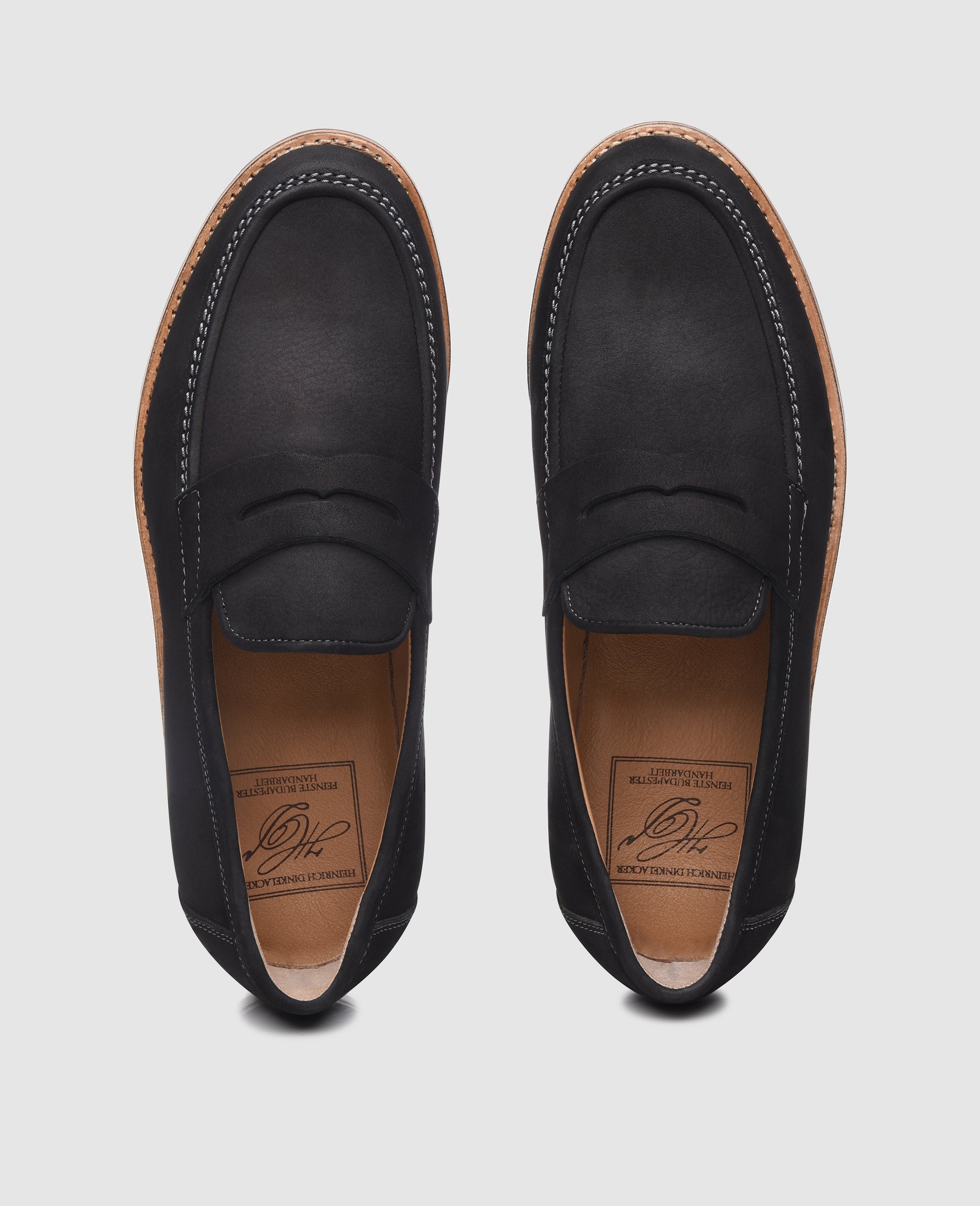 A handcrafted model that is ideal for warm days, this traditional slip-on shoe with a wide-cut opening at the top of the shaft boasts a lightweight, summery feel and a sophisticated look. Trademark details include a U-shaped vamp insert on the upper, accompanied by a hand-stitched double seam, as well as a traditional strap at the instep.The shaft of the shoe is made from velvety-soft nubuck, which underscores this penny loafer’s air of modern nonchalance. An rubber lug sole at the bottom protects the sophisticated leather midsole, ensuring firm traction for wearers, even on slippery surfaces Thanks to meticulous production and sophisticated materials, this slip-on shoe guarantees pleasant flexibility, a high fidelity to fit, and extraordinary durability.