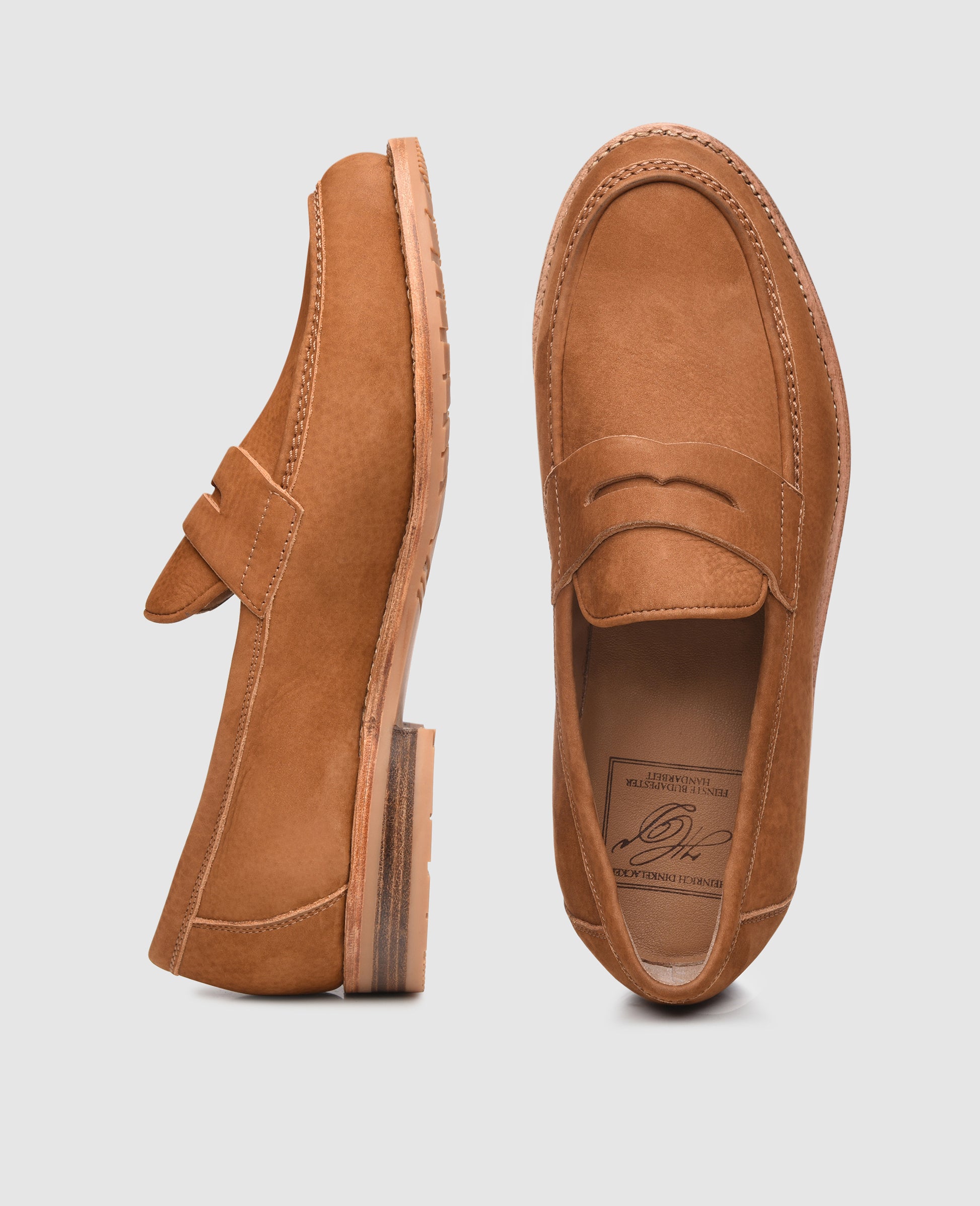 A handcrafted model that is ideal for warm days, this traditional slip-on shoe with a wide-cut opening at the top of the shaft boasts a lightweight, summery feel and a sophisticated look. Trademark details include a U-shaped vamp insert on the upper, accompanied by a hand-stitched double seam, as well as a traditional strap at the instep.The shaft of the shoe is made from velvety-soft nubuck, which underscores this penny loafer’s air of modern nonchalance. An rubber lug sole at the bottom protects the sophisticated leather midsole, ensuring firm traction for wearers, even on slippery surfaces Thanks to meticulous production and sophisticated materials, this slip-on shoe guarantees pleasant flexibility, a high fidelity to fit, and extraordinary durability.