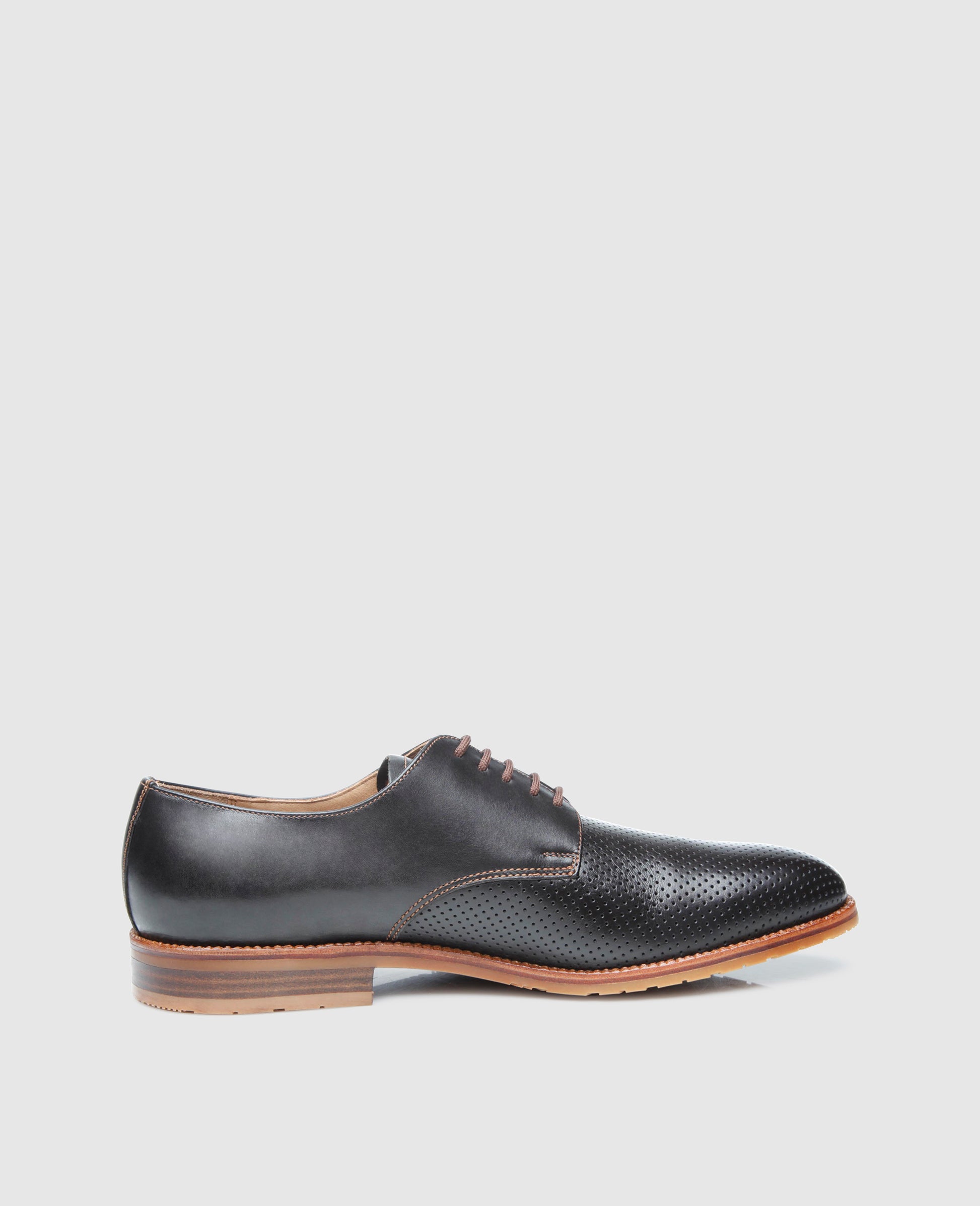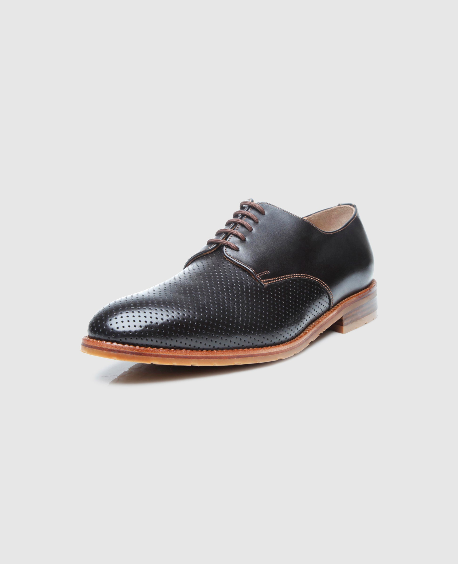 This beloved men’s shoe with traditional open five-eyelet lacing has a special touch, too: the modern combination of the wholly undecorated quarters and the finely perforated shaft. Incidentally, the latter feature is known as screen perforation.