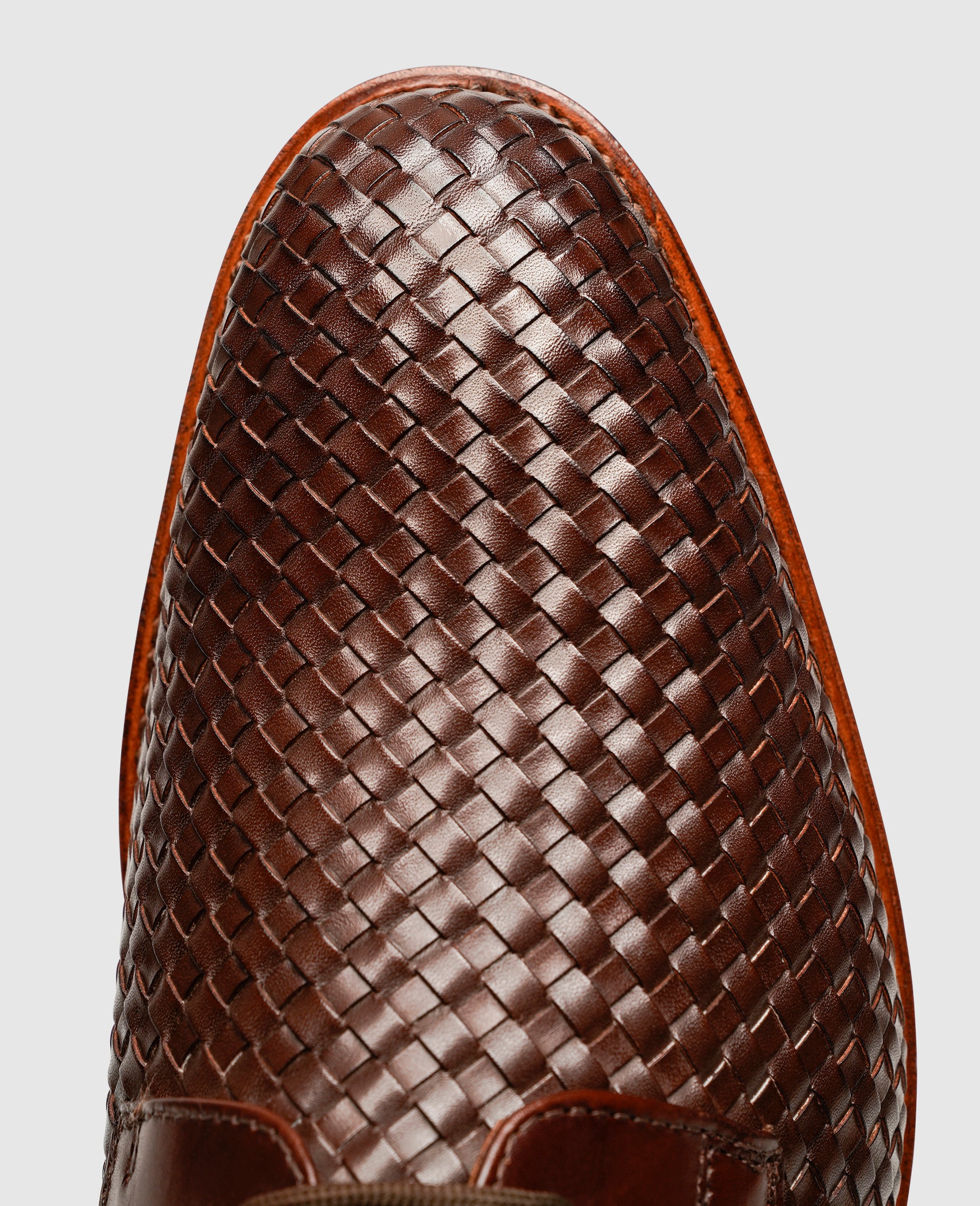 A fascinating interplay of woven leather sections and the finest smooth leather sets apart this Goodyear-welted Derby for men from Heinrich Dinkelacker. Its distinctive design predestines this handcrafted full-leather shoe as a tasteful choice for a sophisticated yet casual summer wardrobe. With its vegetable-tanned leather inner and exquisite double leather sole with elaborate triple nailing, this refined lace-up shoe for men promises high breathability and comfort in a class of its own, even in warm weather.