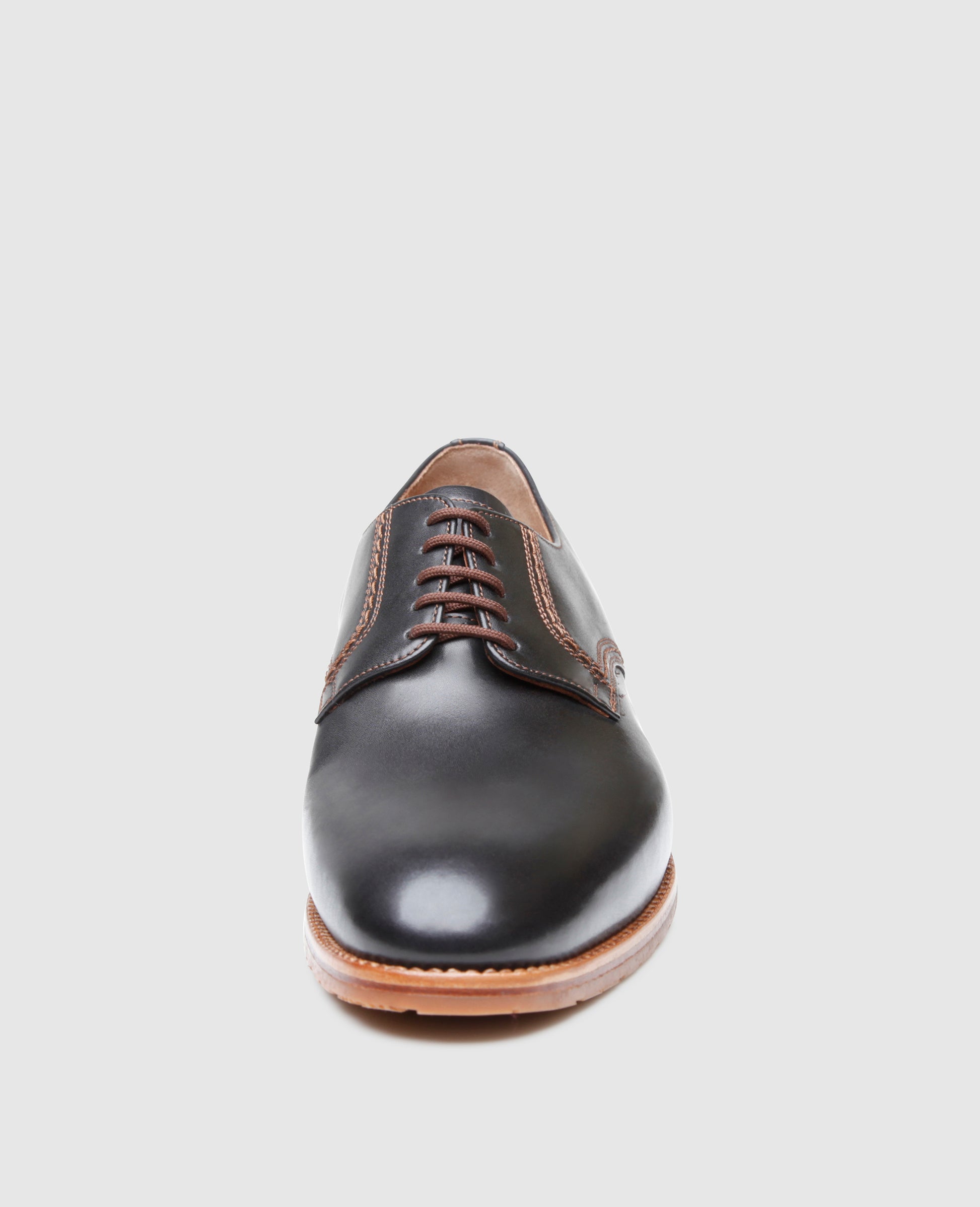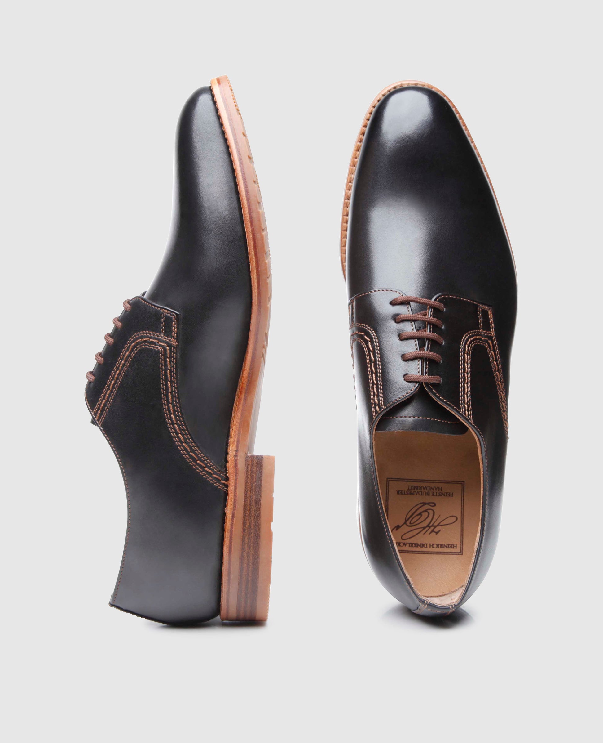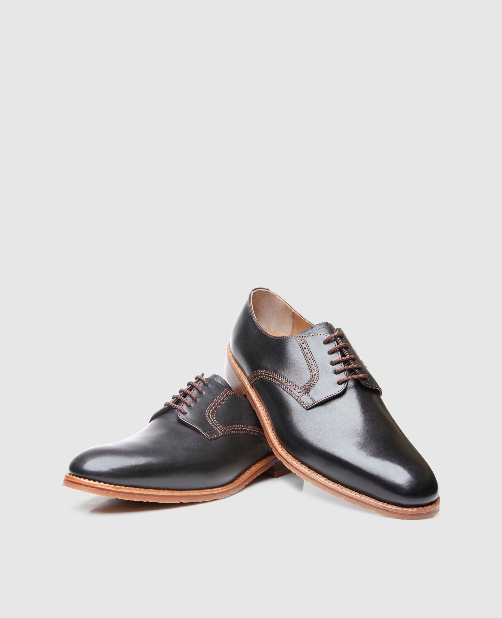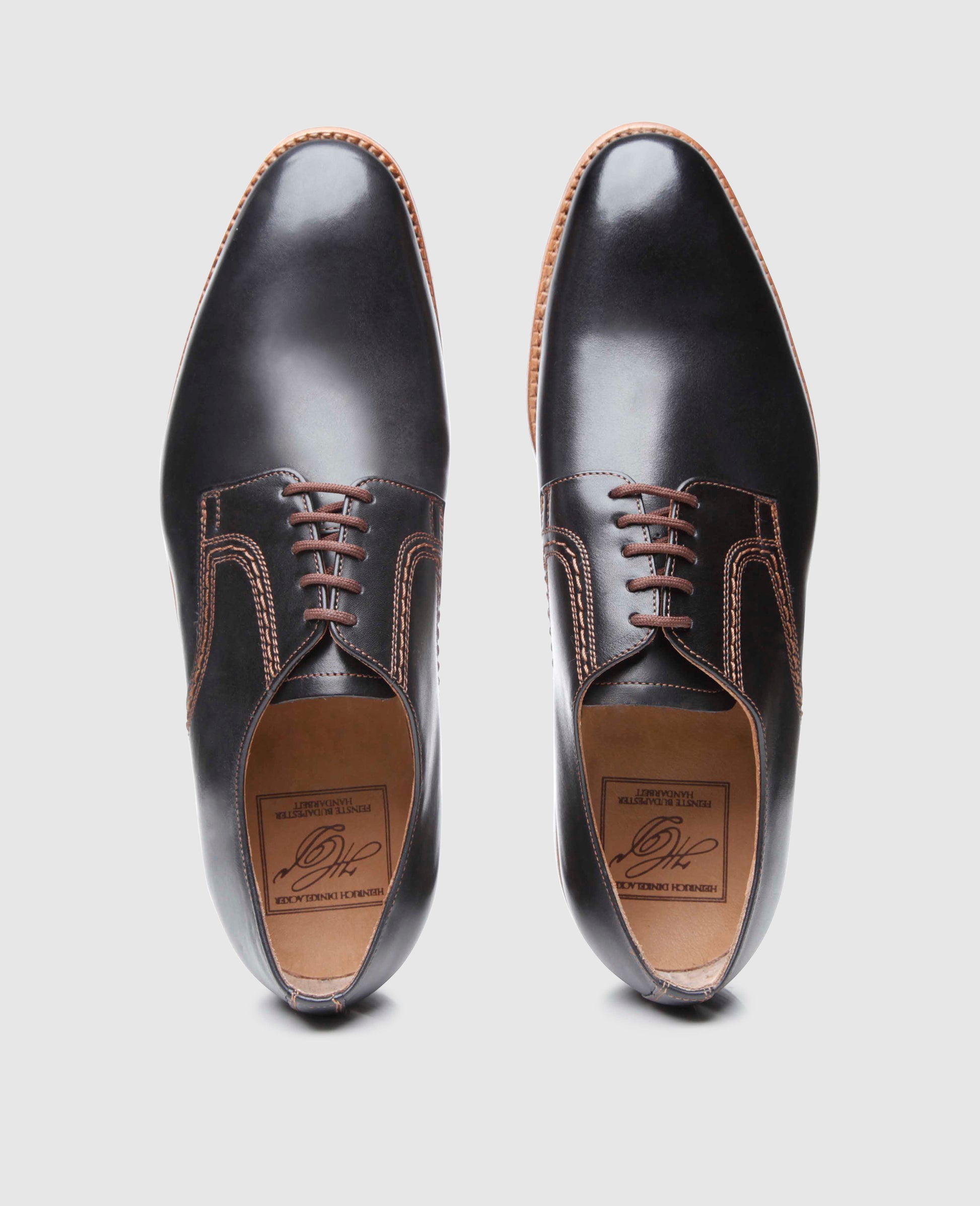 Tasteful understatement: presenting the handcrafted, sewn-welted plain Derby in black. This model features open five-eyelet lacing, and loving detailed quarters assembled by hand. Supple calfskin with a satiny matt gleam also lends to the elegant appeal of this legendary, classic shoe.