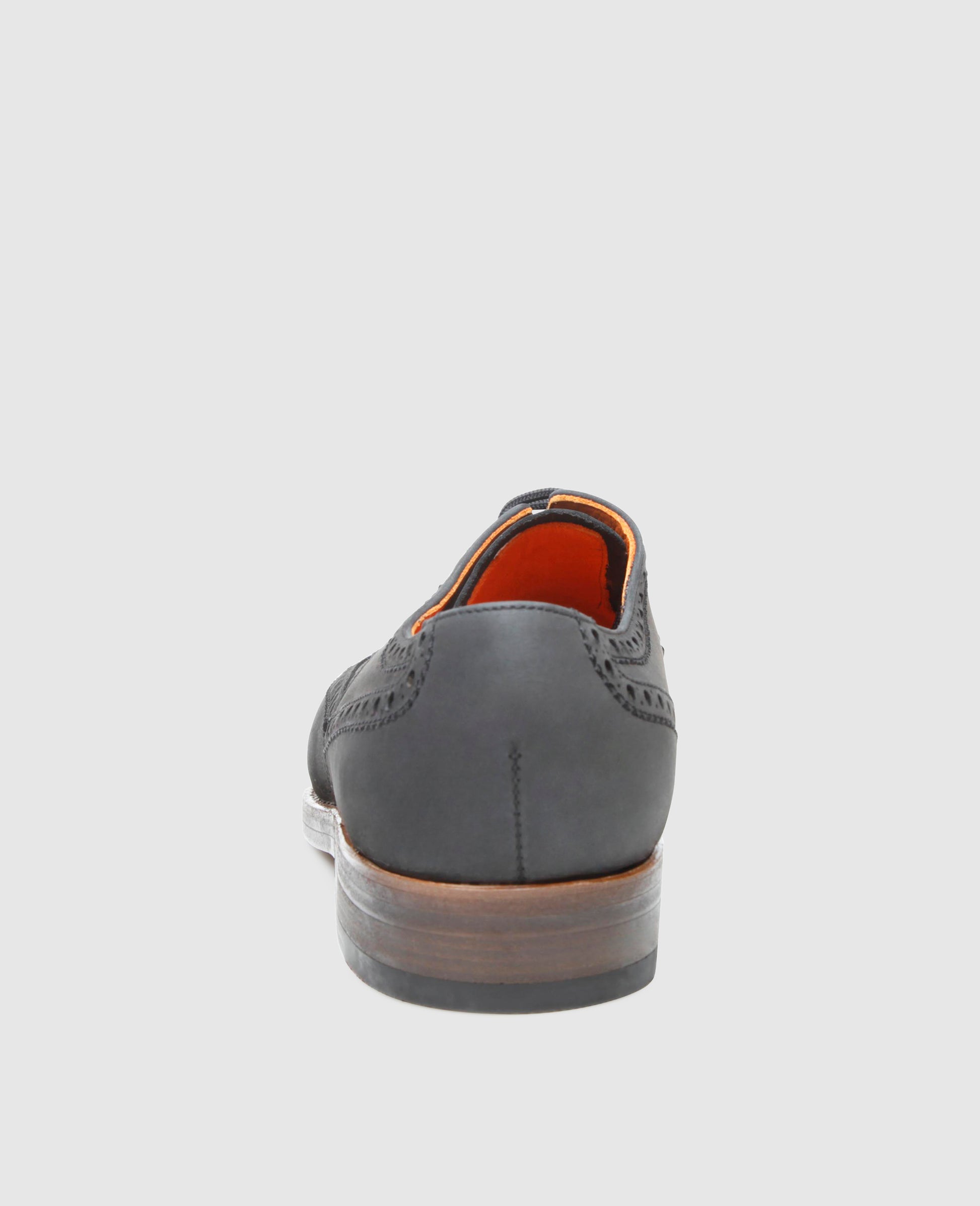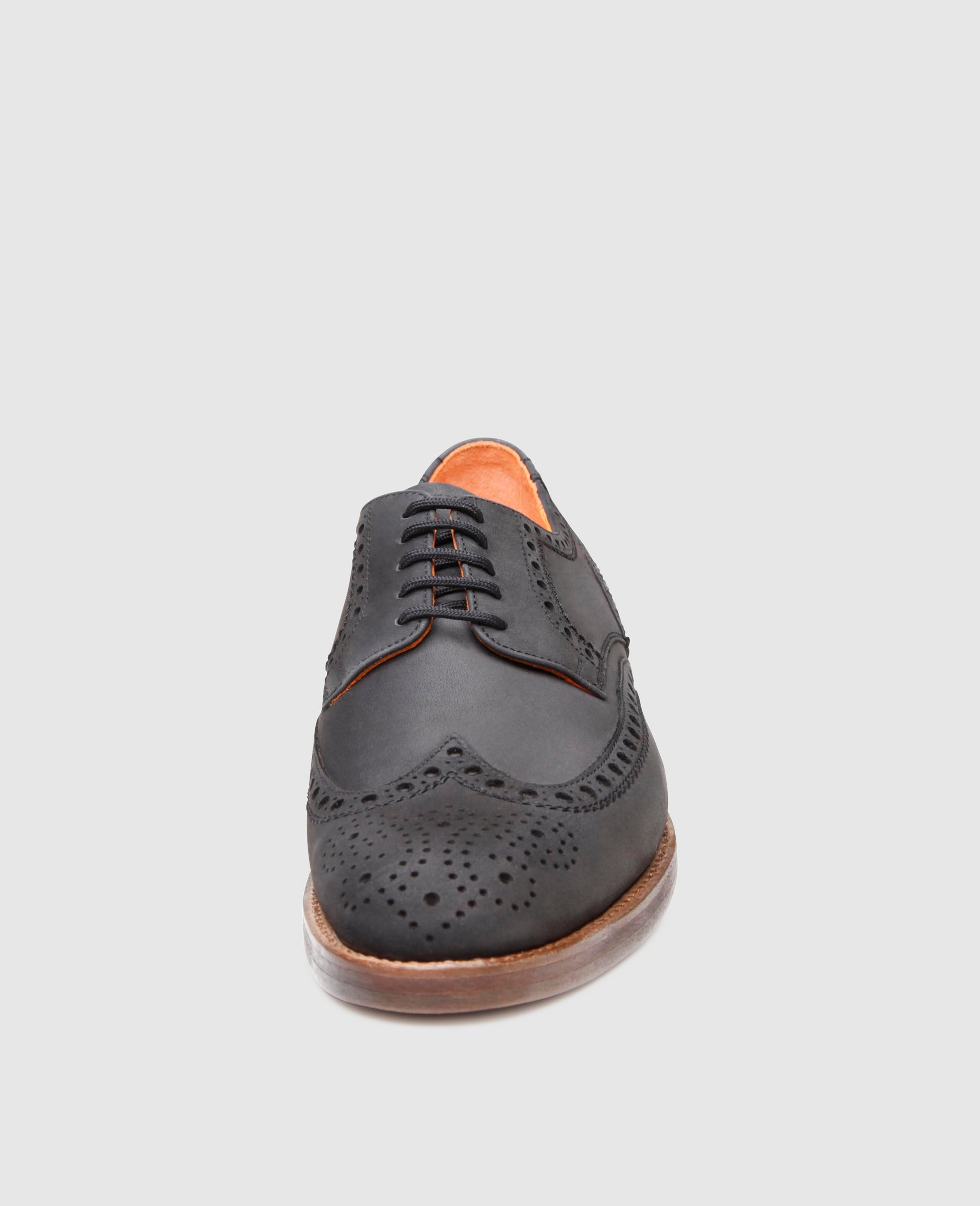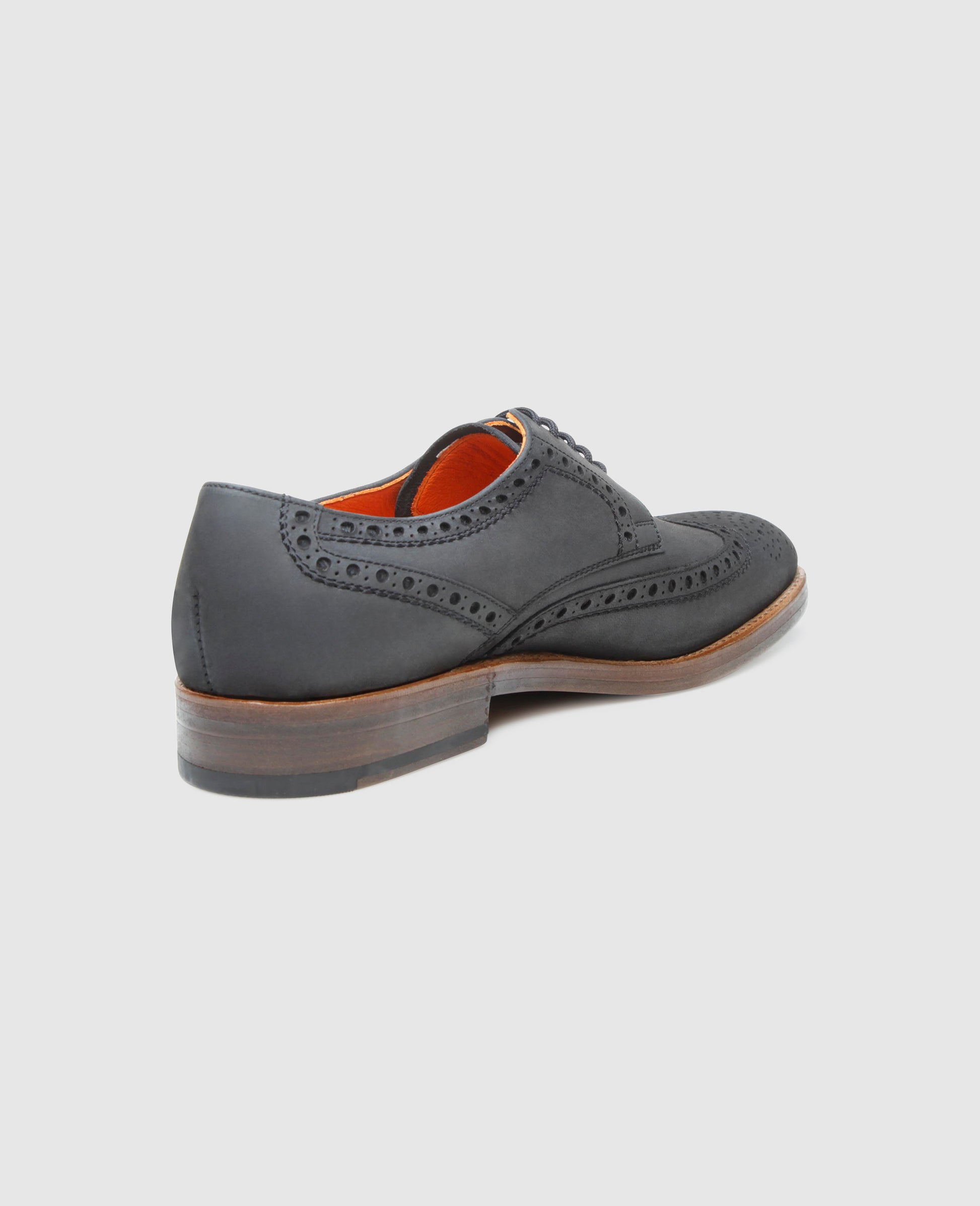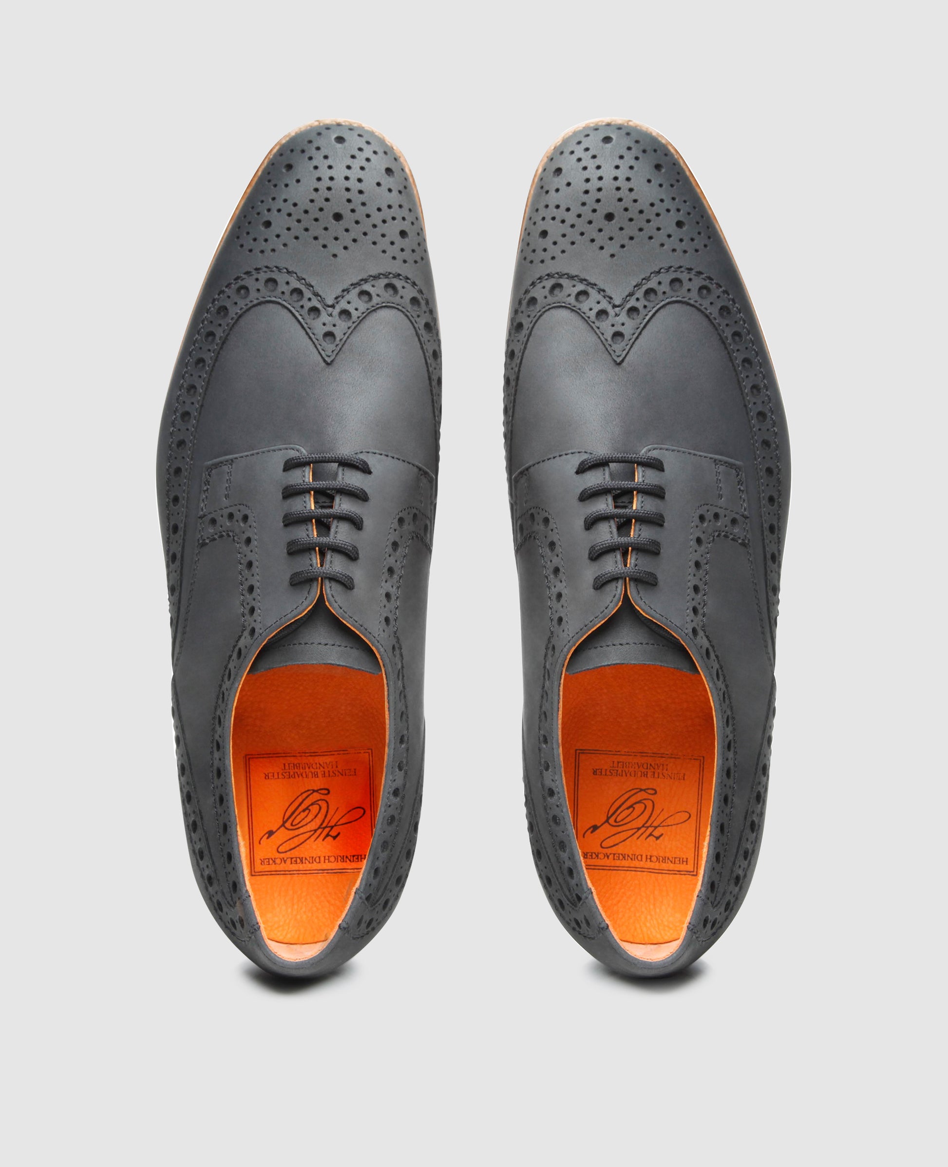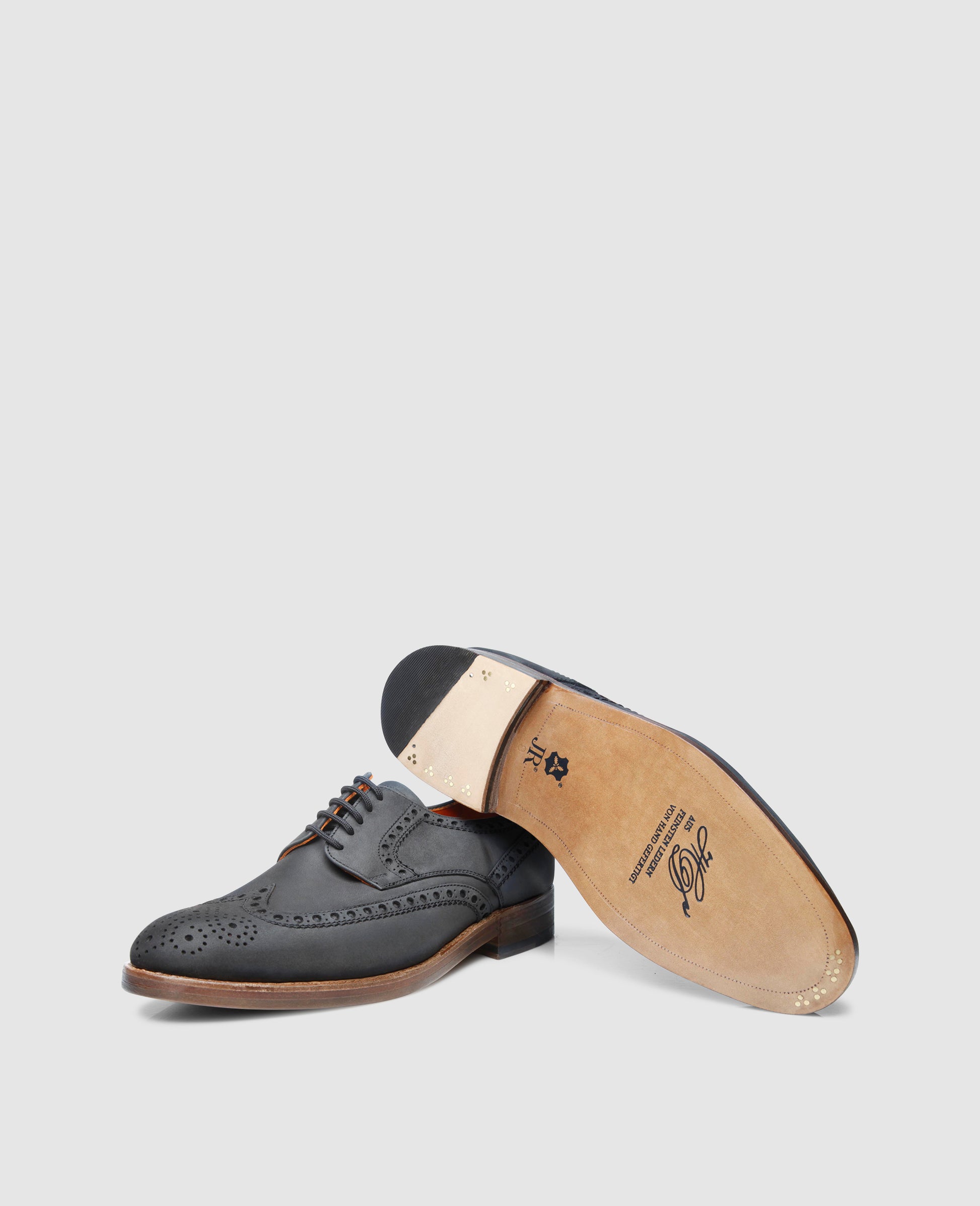In keeping with tradition, ornamental Lyra perforation adorns the decorative toe cap, the edges of the shaft pieces and the lovely curved wing cap and counter. Open lacing threaded through five eyelet pairs, a classic double sole made of leather and brass nails driven in by hand also represent nods to classic design.