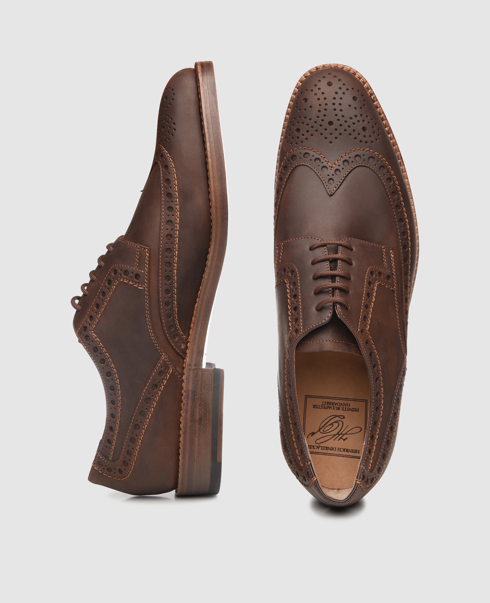 One of the most famous types of men’s shoes in the world, this full-brogue Derby thrills with an elegant Luzern last and sporty nubuck. The lovely Lyra perforation found on this model has its origins in long-ago dwellers of the Irish and Scottish countryside, who punctured their softened shoes so that they would dry out more quickly in the marshy Highlands.The full-brogue Derby is available in the colours ‘Jeans’, ‘Vert’ and black.Nowadays, this perforation serves a merely decorative purpose. On this handcrafted, sewn-welted full-leather shoe, it is accompanied by open five-eyelet lacing. This model’s upper is made from greased nubuck that has been treated to be water-repellent, making it not only impervious to moisture and soiling, but also leading it to develop a sporty patina over time. The cherry on top of this handcrafted masterpiece is likely the robust double leather sole as well as the brass nails that have been driven in by hand.