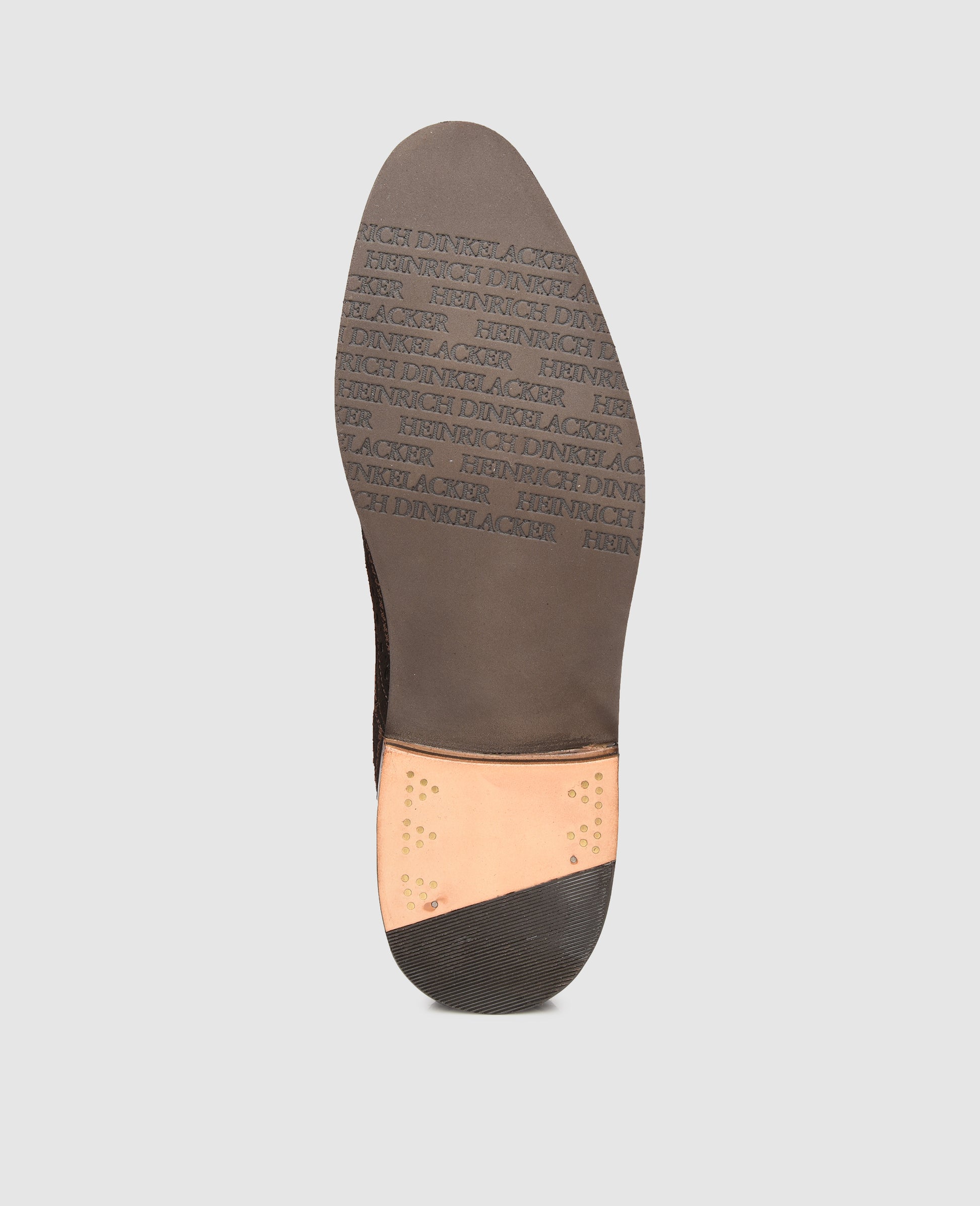 This handcrafted full-brogue Derby gets its charming nonchalance from opulent, decorative Lyra perforation and the soft calf velours used to make the shaft. The elegant perforated pattern along the edges of the shaft and the front edge of the shoe hearkens back to shoes worn by the rural populations of Ireland and Scotland. In order to allow their shoes to dry more quickly after a march through the Highlands, the shepherds there would bore holes into them. These brogues slowly but surely became more widely worn in the 18th century. Today, the perforation that gives them their name used solely for decorative purposes.