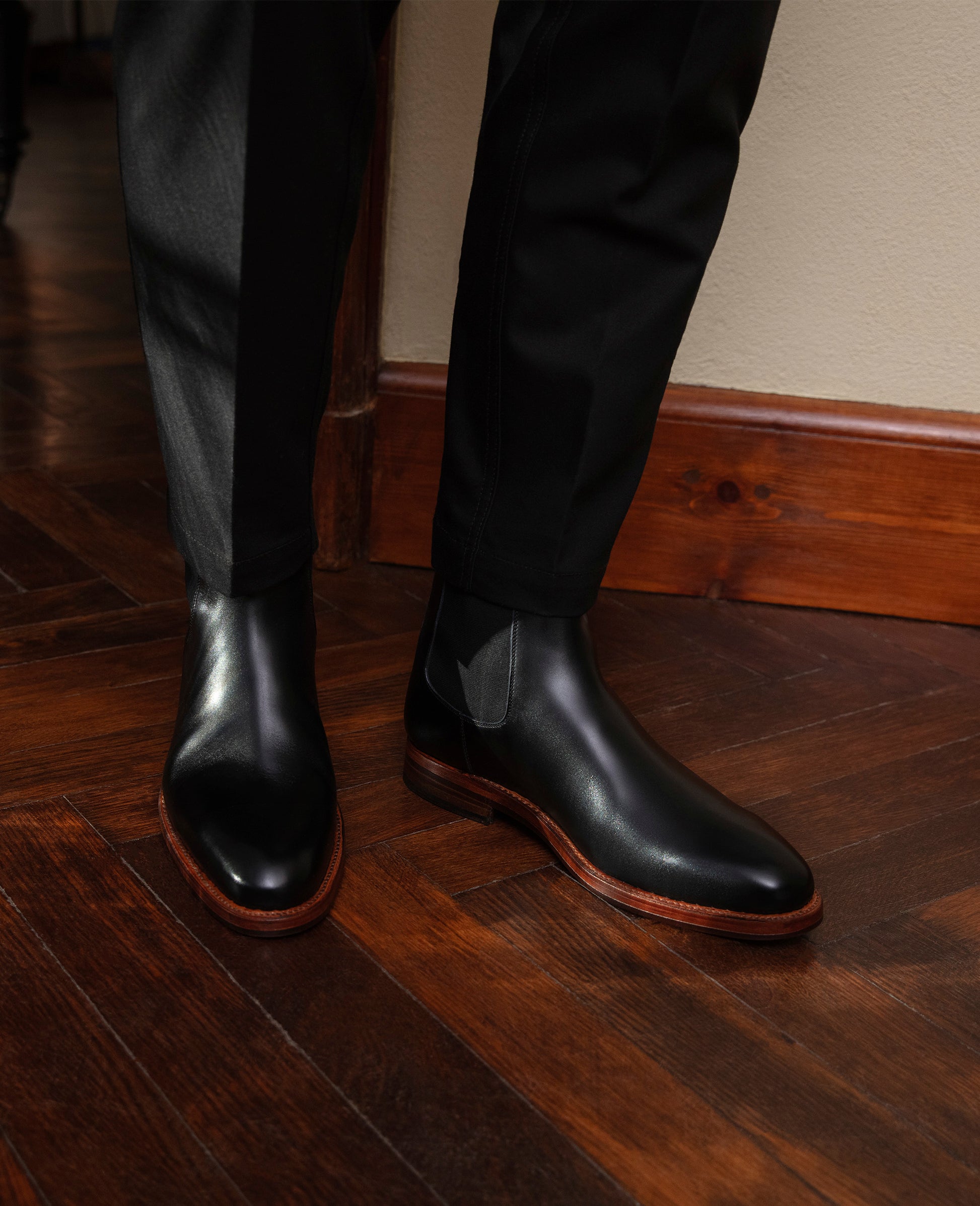 The Chelsea boot in this exquisite collection from Heinrich Dinkelacker is a true legend among men's boots. Handcrafted according to the highest standards of traditional shoemaking, this classic Goodyear-welted Chelsea boot is characterized by the incomparable quality of its box calf leather. The comfortable Luzern last and its durable double sole create a unique foundation for this distinctive men's boot.The purist design of the Chelsea boot has always exuded a certain nonchalance, thanks to the elastic inserts on the sides and the distinctive pull loop on the heel. With its masterly craftsmanship and exclusive materials, this model from Heinrich Dinkelacker is undoubtedly an exceptional men's boot for the gentleman who values tradition and a touch of subtle understatement.