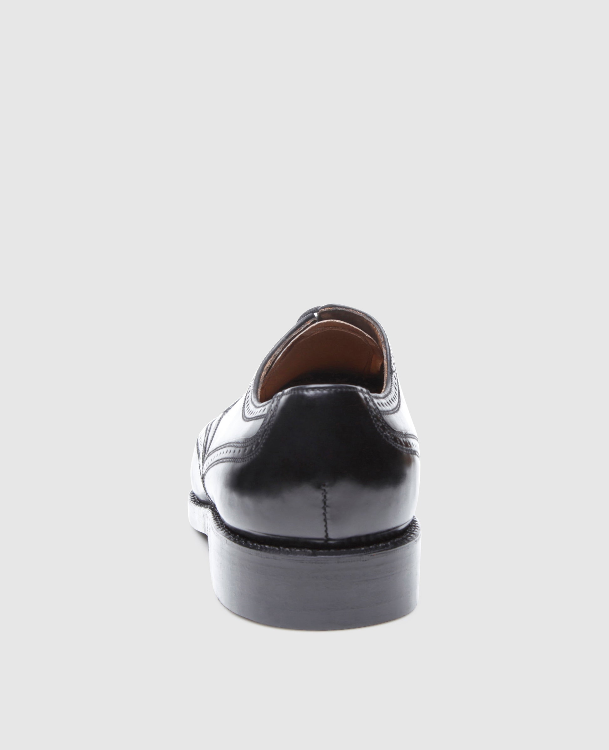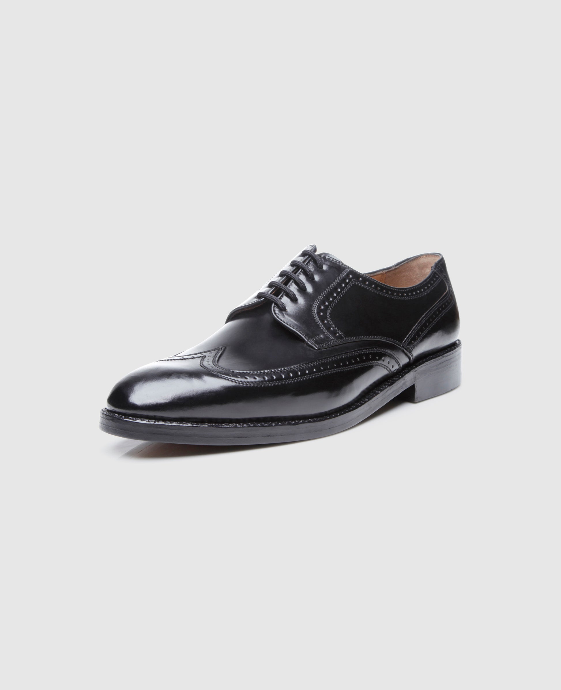 This handcrafted, sewn-welted full-brogue Derby is a sporty, elegant and versatile shoe. In lieu of traditional, opulent patterned Lyra perforation, this modern take on the iconic favourite merely features lovely broguing along the edges of the shaft pieces as well as the curved wing cap and counter.Meanwhile, the gently tapering tip of the shoe is left unadorned, so as to better showcase the lovely shell cordovan from which the shoe has been made. Additional key features include open five-eyelet lacing, a double leather outsole and brass nails driven into the sole and hand by hand. The Luzern last, which gently tapers towards the front, is perfectly suited for average-width feet.This full-brogue Derby is available in dark cognac and black.
