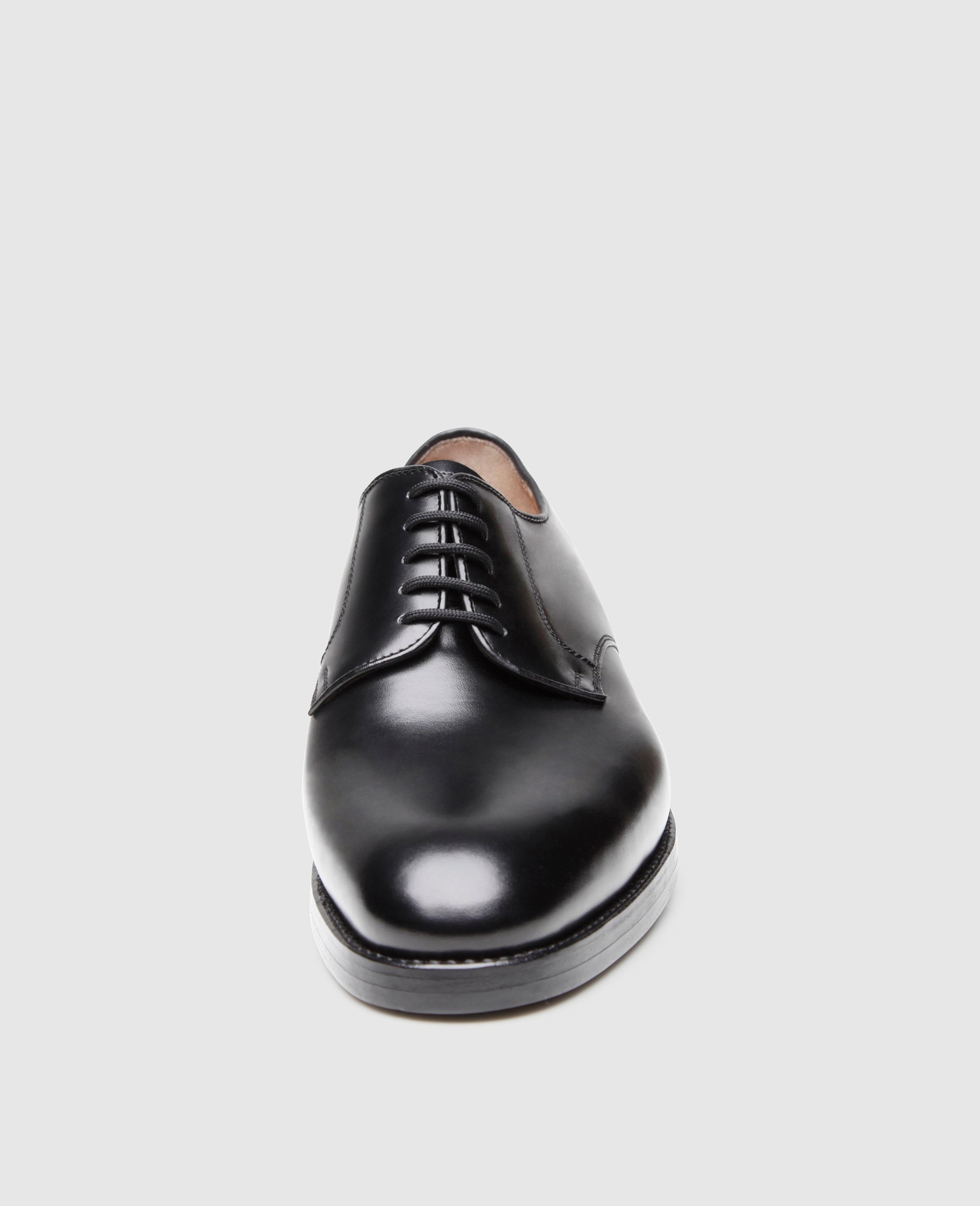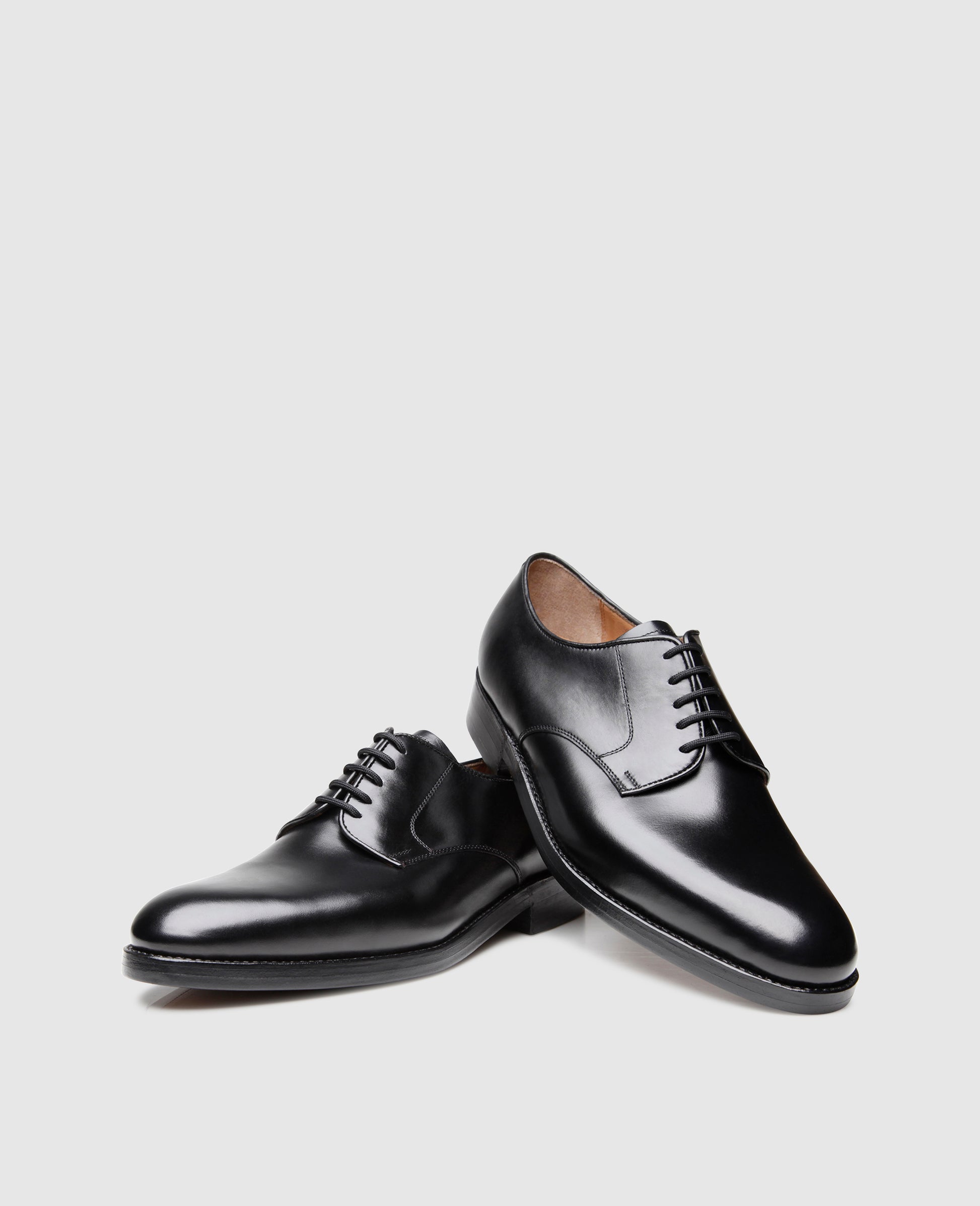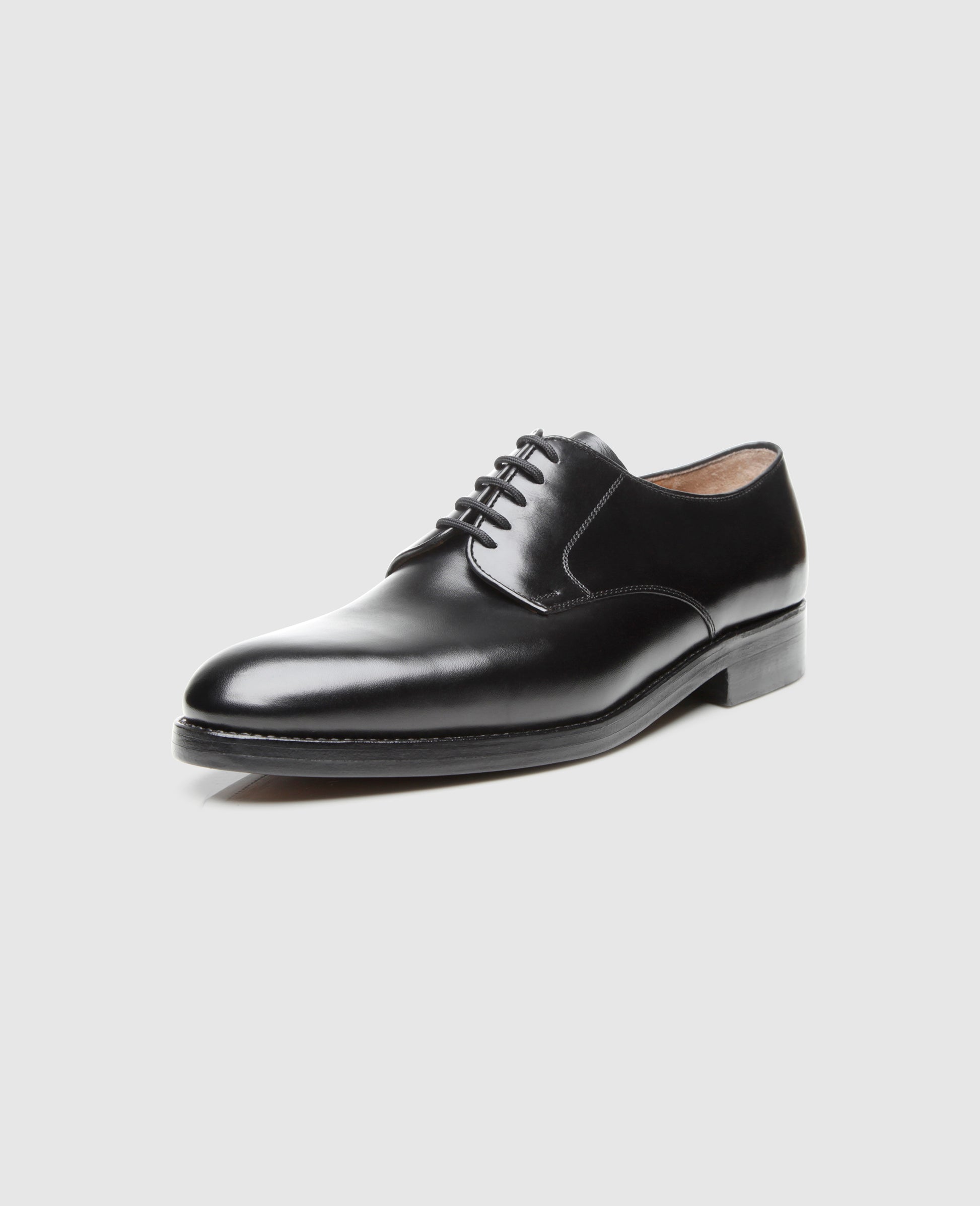 The Plain Derby is one of the most popular models among classic men's shoes worldwide. Traditionally, the unadorned calfskin is given a subtle touch of colour by the open 5-hole lacing, whose curved sections on the front vamp are additionally reinforced with piping.Sewn on the welt and handmade, a hard-wearing double leather sole and the slightly converging last shape in the forefoot area round off this classic shoe. Its purist design guarantees a stylish appearance for both formal and informal occasions.The plain derby is available in the colours walnut and black.