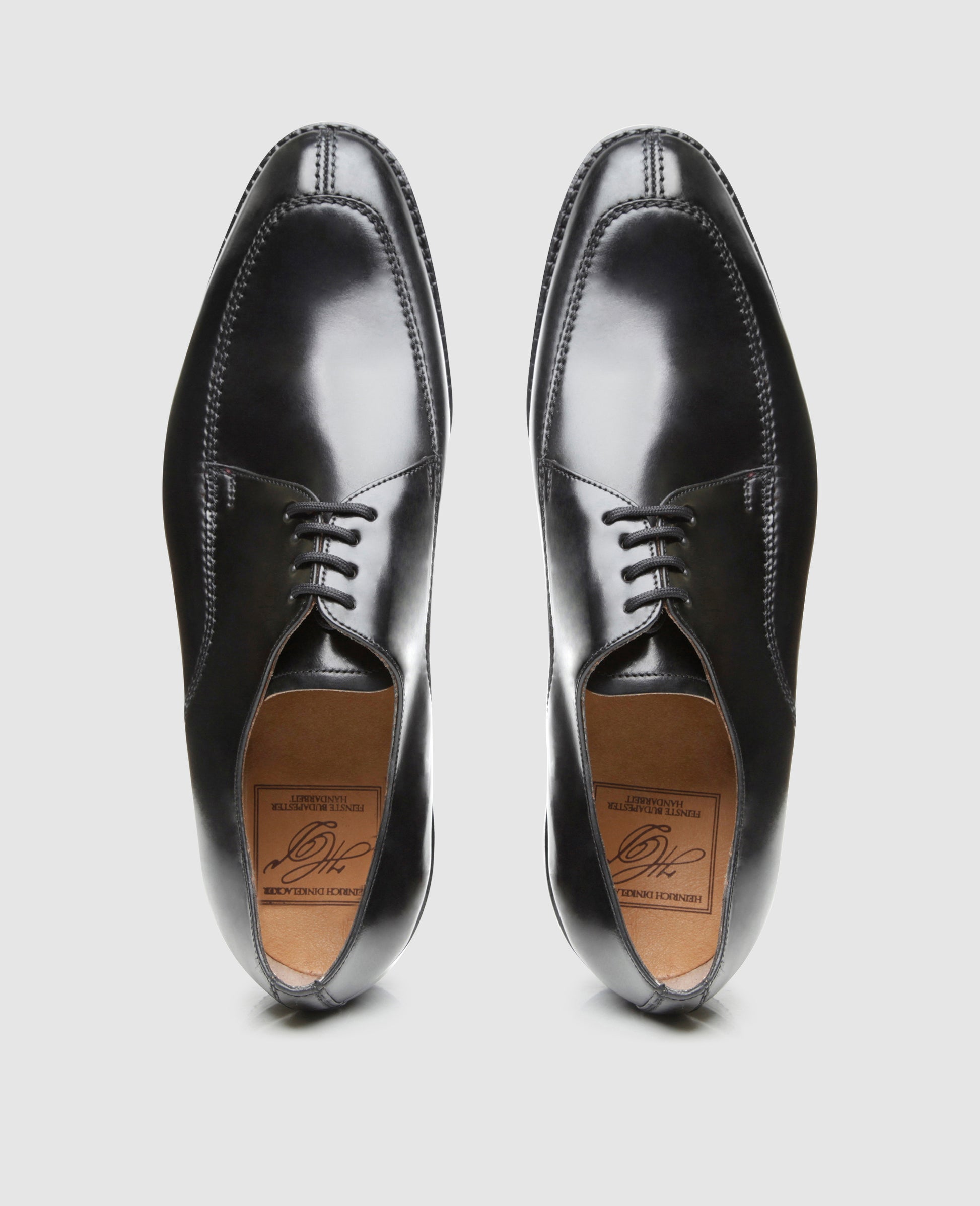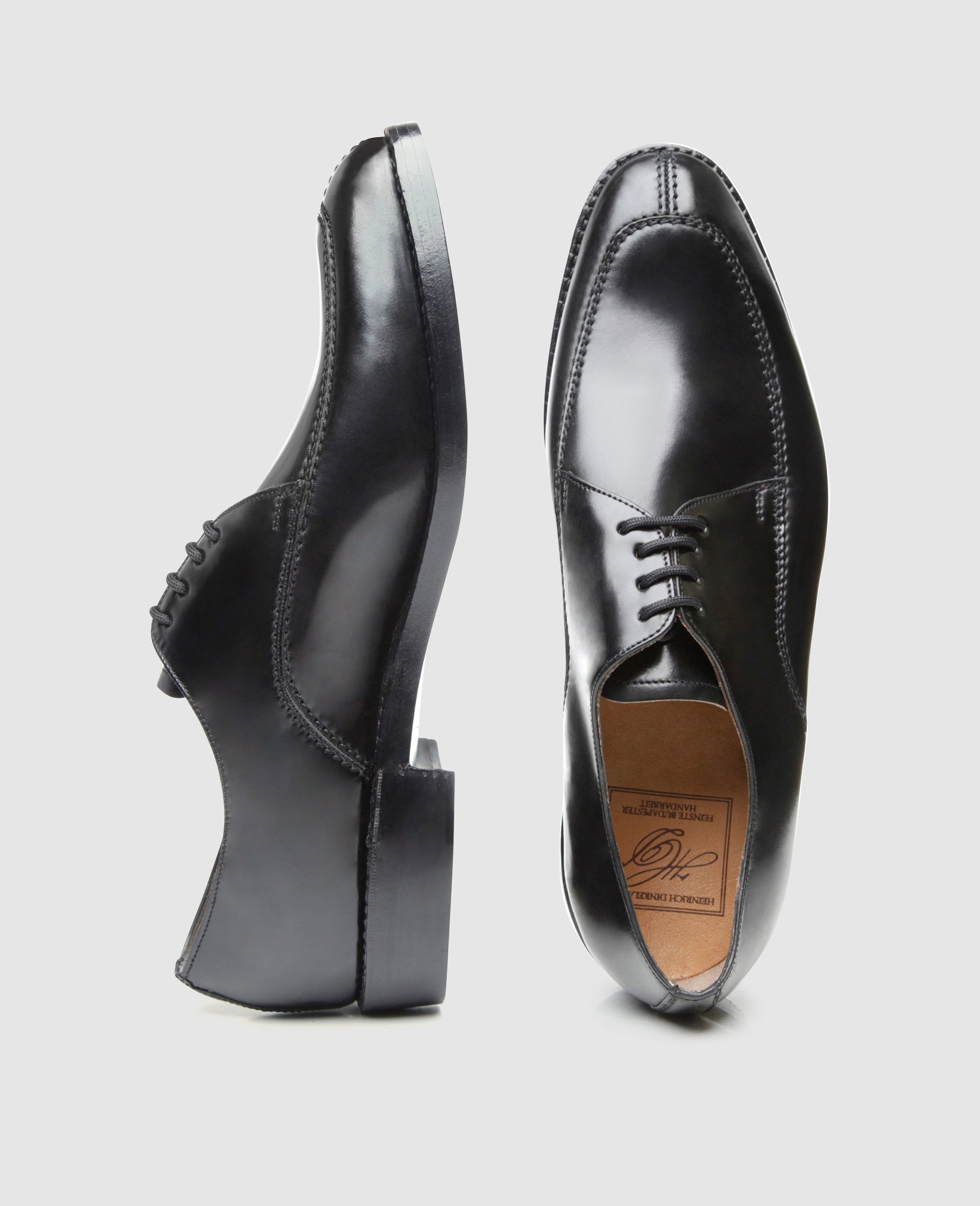 In departure from its rustic forefathers, which were worn by Norwegian fishermen at work, this handcrafted, sewn-welted Norwegian is a modern take on a beloved classic, in keeping with the French style.This traditional full-leather shoe with a classic Derby shaft cut features open four-eyelet lacing as well as a stylish, elegant last. Apart from the trademark vamp insert and the vertical Norwegian seam that extends up to the backs of the toes, the only other detail on this model is a subtle seam. Luxurious shell cordovan and a sophisticated double sole underscore this classic shoe’s special charm.The Norwegian is available in dark cognac and black.