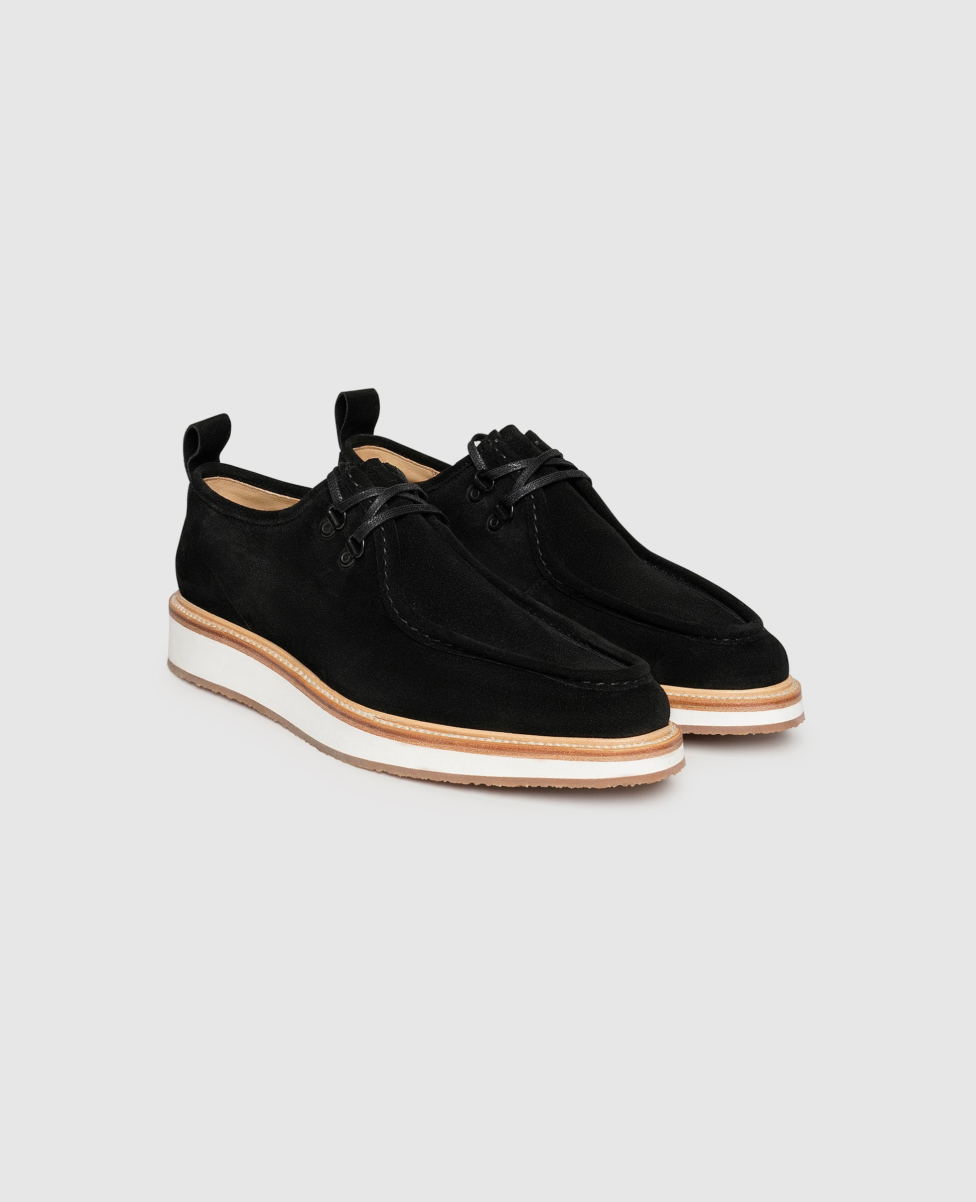 A symbiosis of lightweight comfort and classic elegance is presented by this Goodyear welted plain norwegian by Heinrich Dinkelacker. The black shoe for men with a 2-hole lacing speaks for itself thanks to its grainy and velvety calfskin velours. Your feet experience a special kind of well-being inside the shoe, as the inner material made of vegetable-tanned leather comfortably supports them. A comfortable walking experience is guaranteed by the sure-footed rubber outsole with a comfortable leather footbed. With this lace-up shoe, handcrafted in Spain, you have found the perfect companion for everyday and leisure wear.