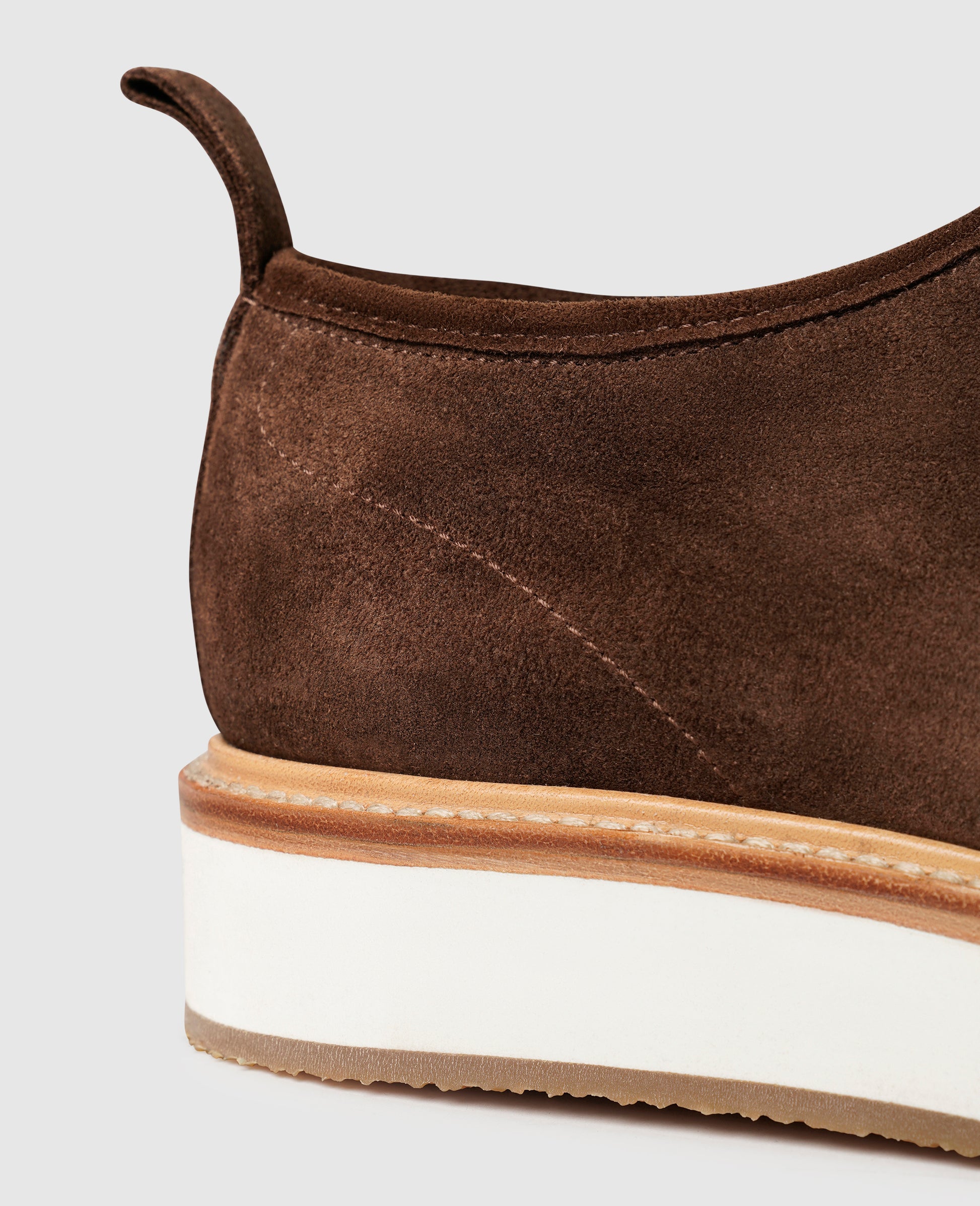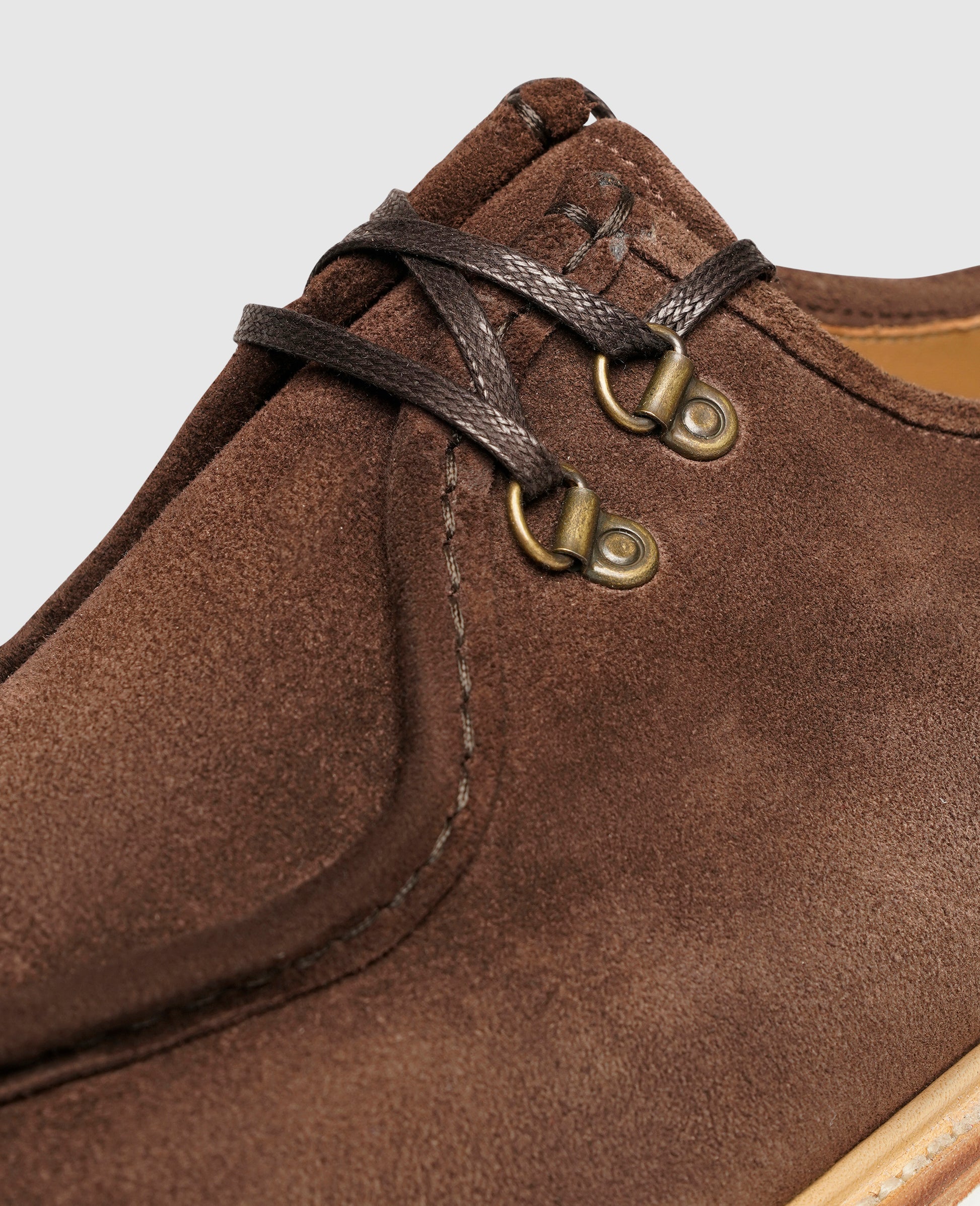 These Goodyear welted plain norwegians by Heinrich Dinkelacker combine elegance and style in a skillful way. This dark brown shoe model for men impresses with its 2-hole lacing and the grainy and velvety calfskin velours. The inner lining made of vegetable-tanned leather is characterized by skin-friendliness and breathability. You get the best experience with this comfortable footbed made of leather, because the rubber outsole is highly flexible in the forefoot area, particularly wear-resistant and provides ideal support. With this lace-up shoe, handcrafted in Spain, you have found the perfect companion for everyday and leisure wear.