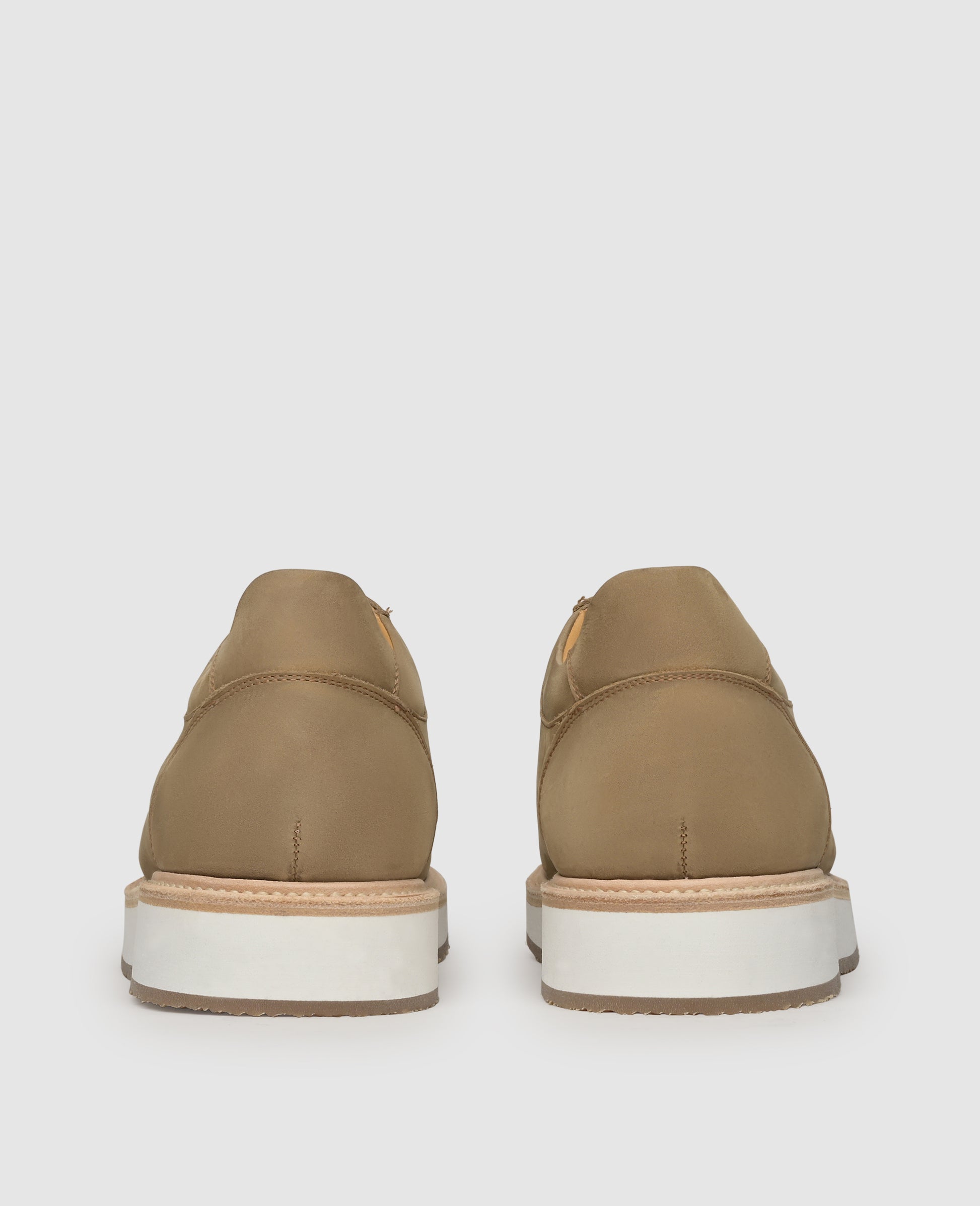 The exceptional nature of this shoe can be attributed to its traditional Goodyear-welted construction, carefully selected materials, and tasteful design. While the shoe's upper is entirely without embellishment, with the focus solely on the dynamic greased nubuck, the multi-colored rubber outsole creates a point of contrast to the otherwise minimalist appearance. And, of course, it goes without saying that this sophisticated interpretation of the famous, everyday classic also features the sporting comfort of a flexible rubber outsole: the feature that first helped the trainer achieve its worldwide success.