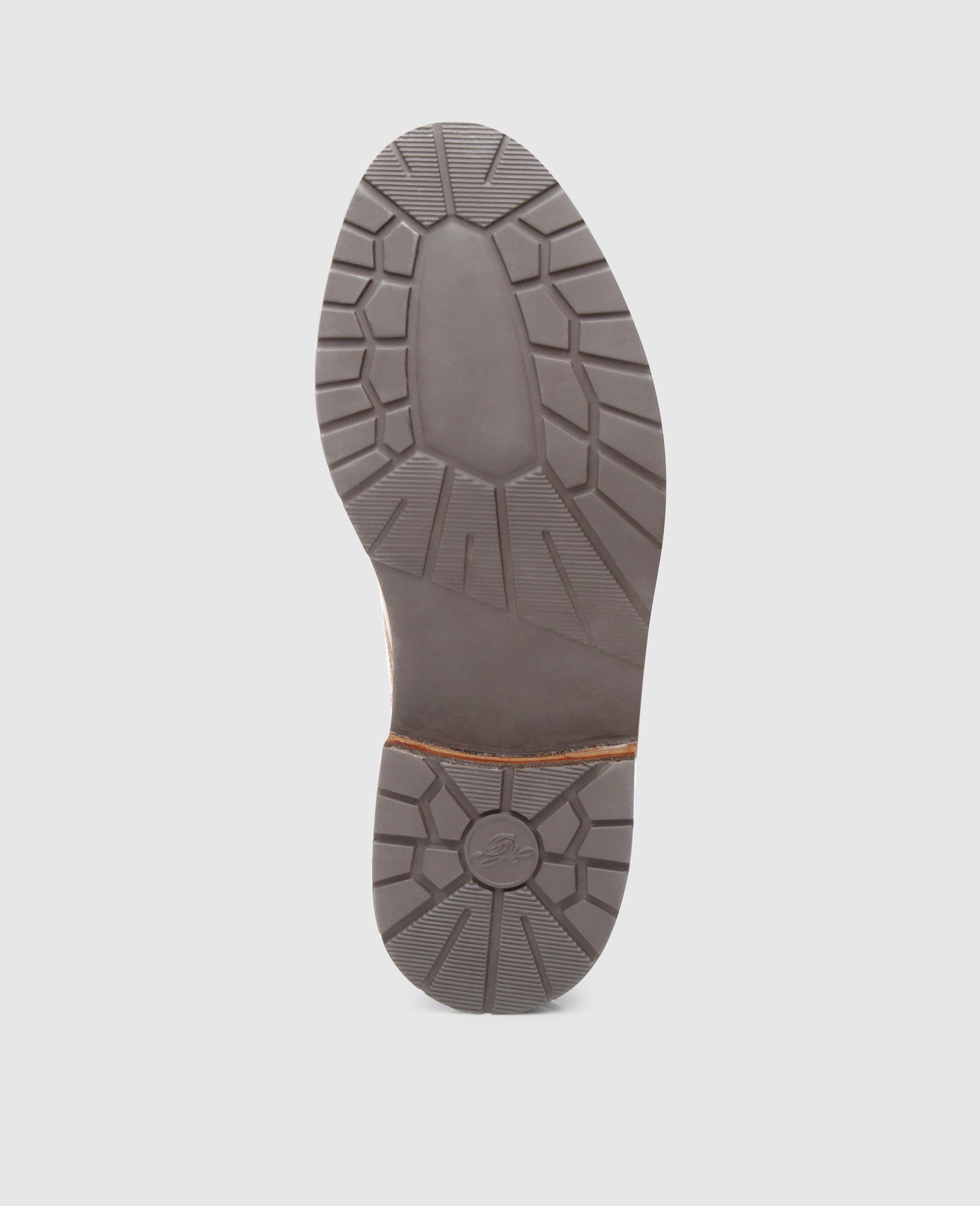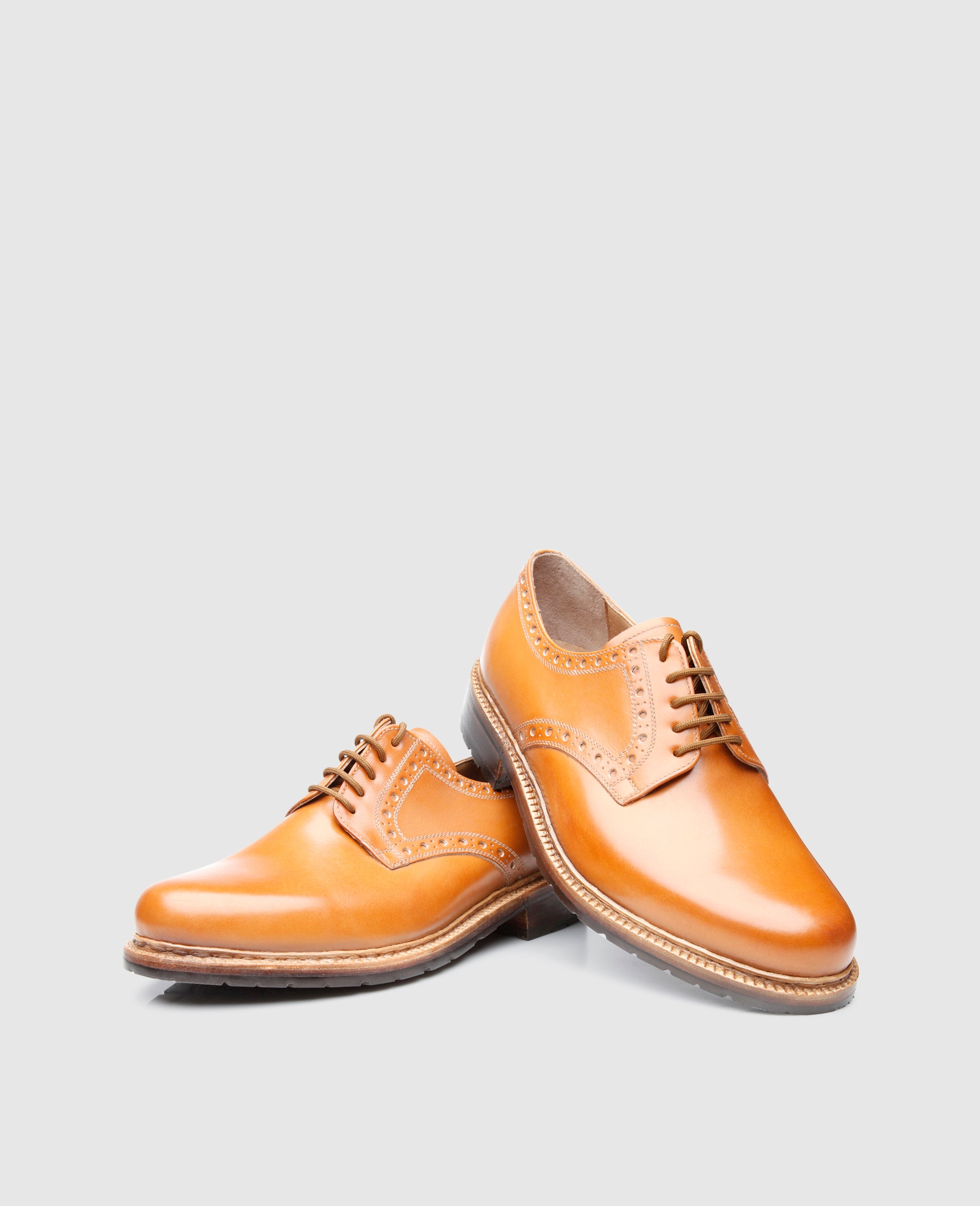 This double-stitched men’s shoe with classic open Derby lacing impresses with its clean design, which is loosened up by subtle Lyra perforation along the two curved side pieces stitched onto the vamp.