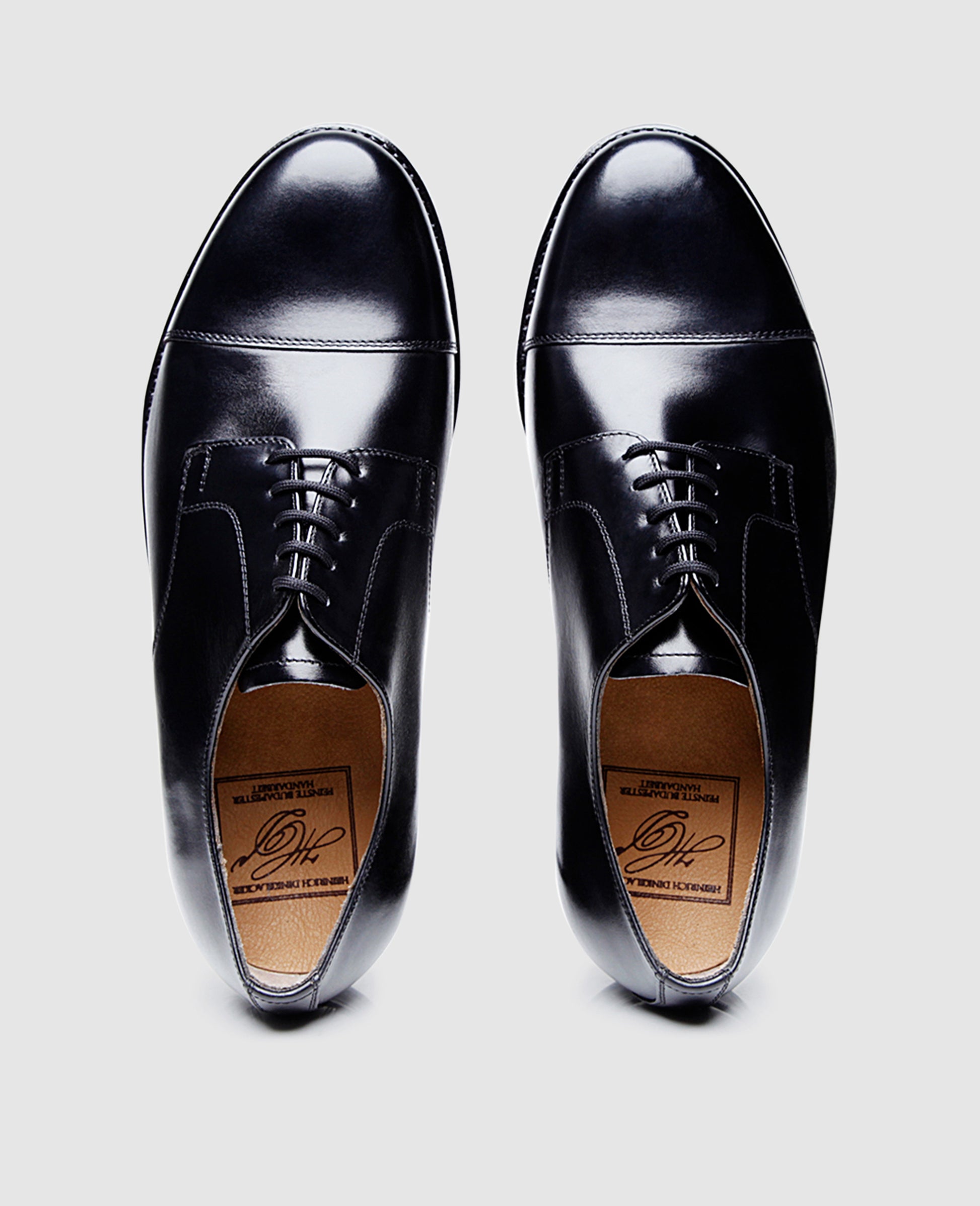 This cap-toe Derby is a menswear classic. Featuring open lacing and a subtle cap-toe seam at the toes, it unites straightforward lines and timeless design. The soft calfskin of the shaft adapts comfortably to the wearer’s foot. This men’s shoe is highly versatile; the perfect choice for everyday wear.Created on the widest last available, this shoe offers the highest level of comfort to particularly demanding feet. The leather outsole from Rendenbach, affixed with a classic set of three nails, is the cherry on top of the fine double sole, which is furthermore distinguished by its high level of flexibility.