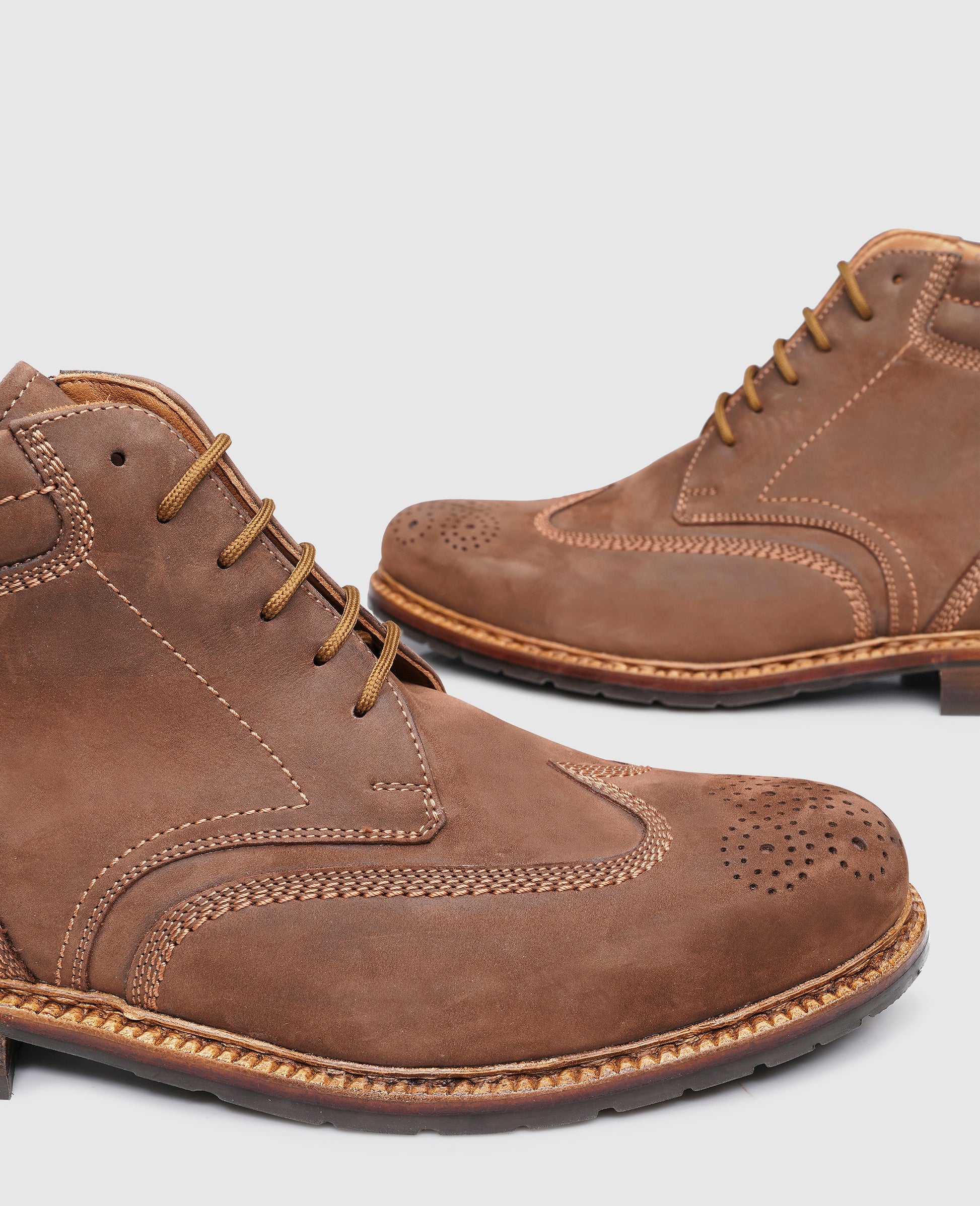 This classic and yet hardwearing men's boot is expertly constructed on the legendary Janosh K last by the master craftsmen at Heinrich Dinkelacker. Thanks to its high reach lacing with reinforced entry and elaborate double sole with non-slip rubber lug tread, this sophisticated men's boot is a comfortable companion for use in almost any season. The water-repellent greased nubuck develops a sporty look over time and is hard-wearing in the face of dirt and moisture.The opulent detailing on the upper testifies once again to the incomparable craftsmanship with which each Heinrich Dinkelacker shoe is made. In around 300 steps, our experienced master shoemakers create nothing less than a true masterpiece of the shoe-making trade.