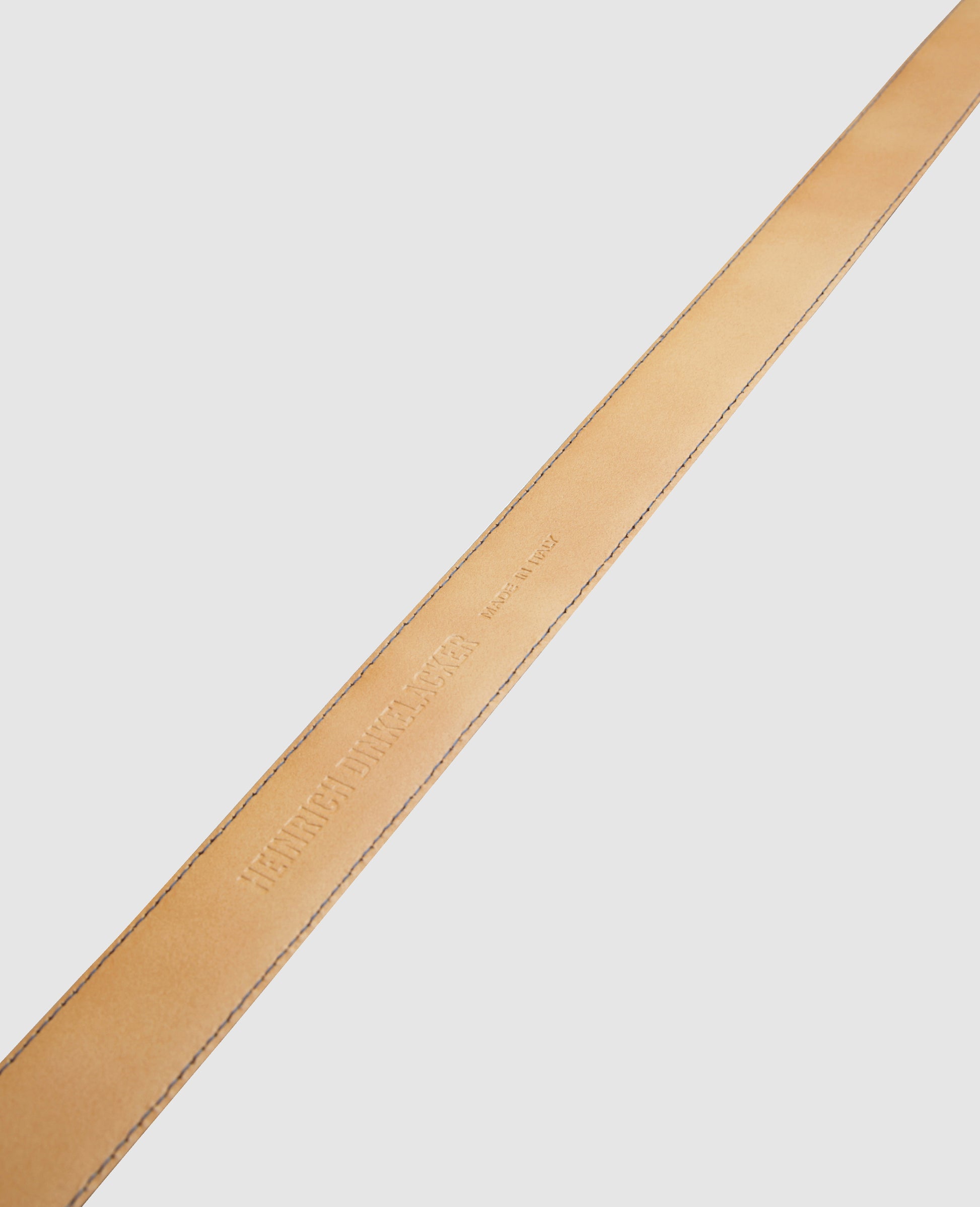 Crafted from two stitched leather layers, with a width of 35 mm, this men's full-leather belt is also distinguished by its elegant design. The silver buckle crafted from a refined zinc alloy not only rounds off the belt's elegant appearance, but is also suitable for nickel-allergy sufferers. The intricate engraving on the buckle reveals the craftsmanship as belonging to the house of Heinrich Dinkelacker.