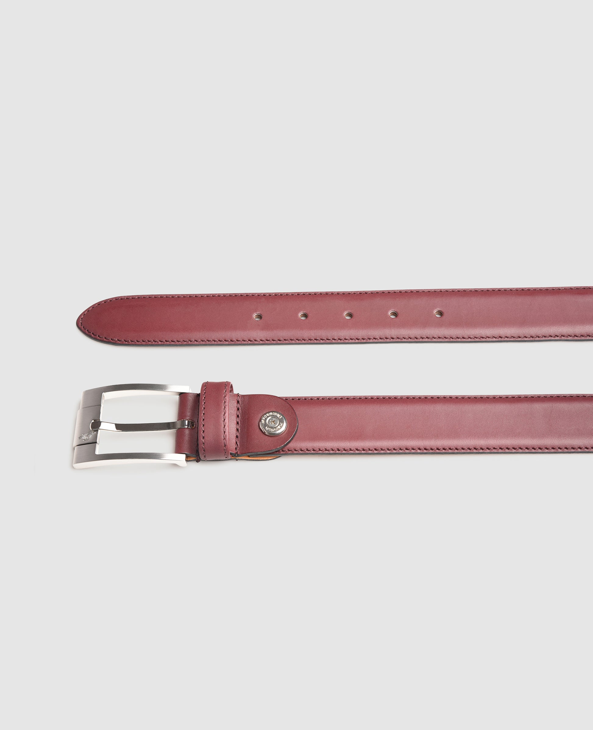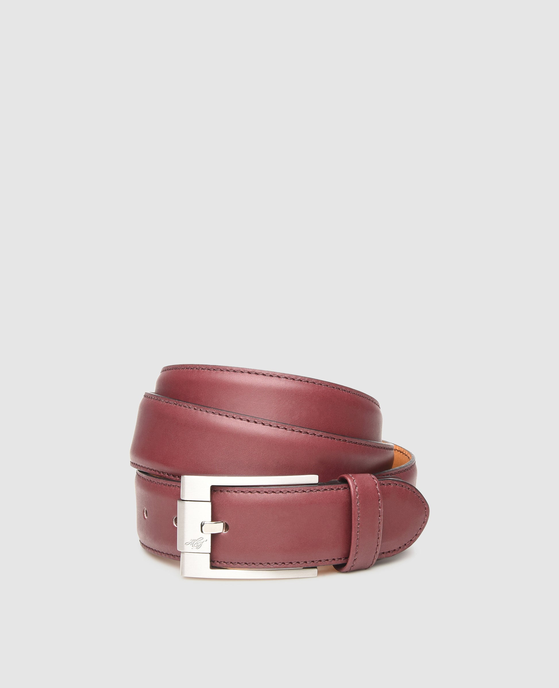 This classic men's belt made from the finest antique calf leather is meticulously handcrafted in accordance with Italian tradition. The quality of this exquisite accessory is primarily determined by the supple, smooth leather of the calf, while the premium cowhide leather used on the inner layer provides the belt with extra stability. The material and color are perfectly matched to complement the upper leather of the Dinkelacker antique-calf shoe.