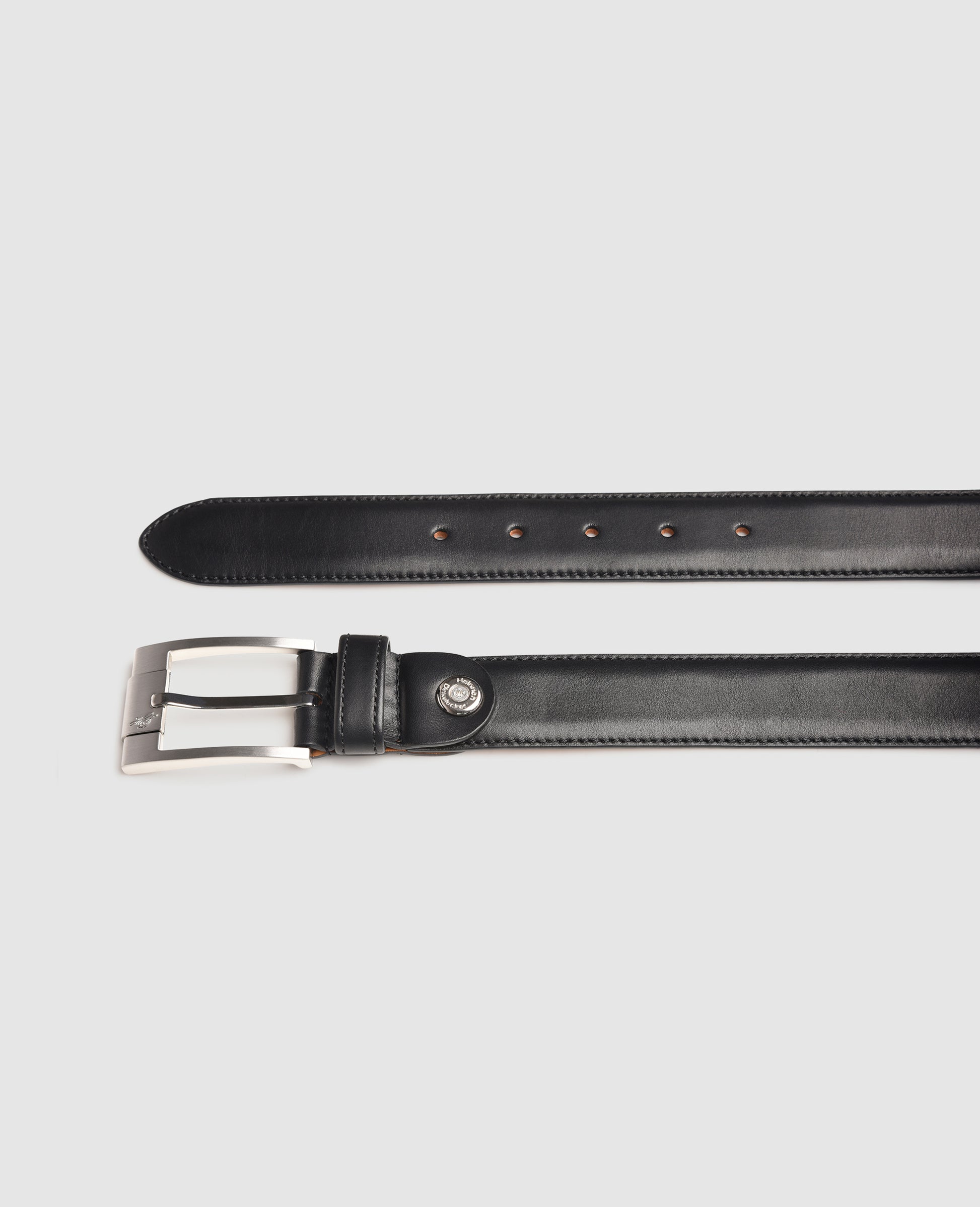 The coveted calfskin leather is characterized by its fine fiber structure and the inside is made of exquisite, premium cowhide. The two leather layers are stitched tightly together, reasserting the quality of this elegant full-leather belt. Thanks to a practical screw-fastening, the buckle can be easily removed to shorten the belt as required. The engraving on the buckle identifies this handcrafted men's belt as a classic accessory from Heinrich Dinkelacker.