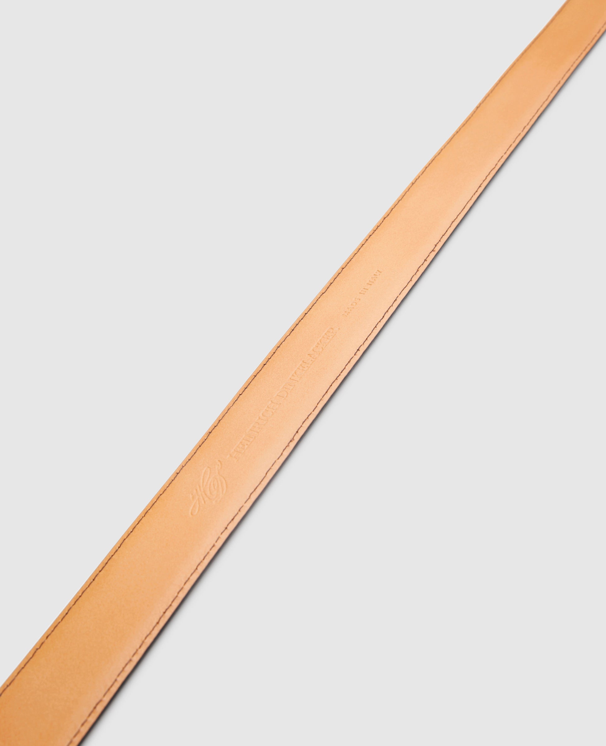 Original leather from the Heinrich Dinkelacker shoe collection is used exclusively for this stitched men’s leather belt, and its production testifies to the traditional craftsmanship of Italy. It has a width of 35 mm, typical of its classic design, and a silver, zamak belt buckle.