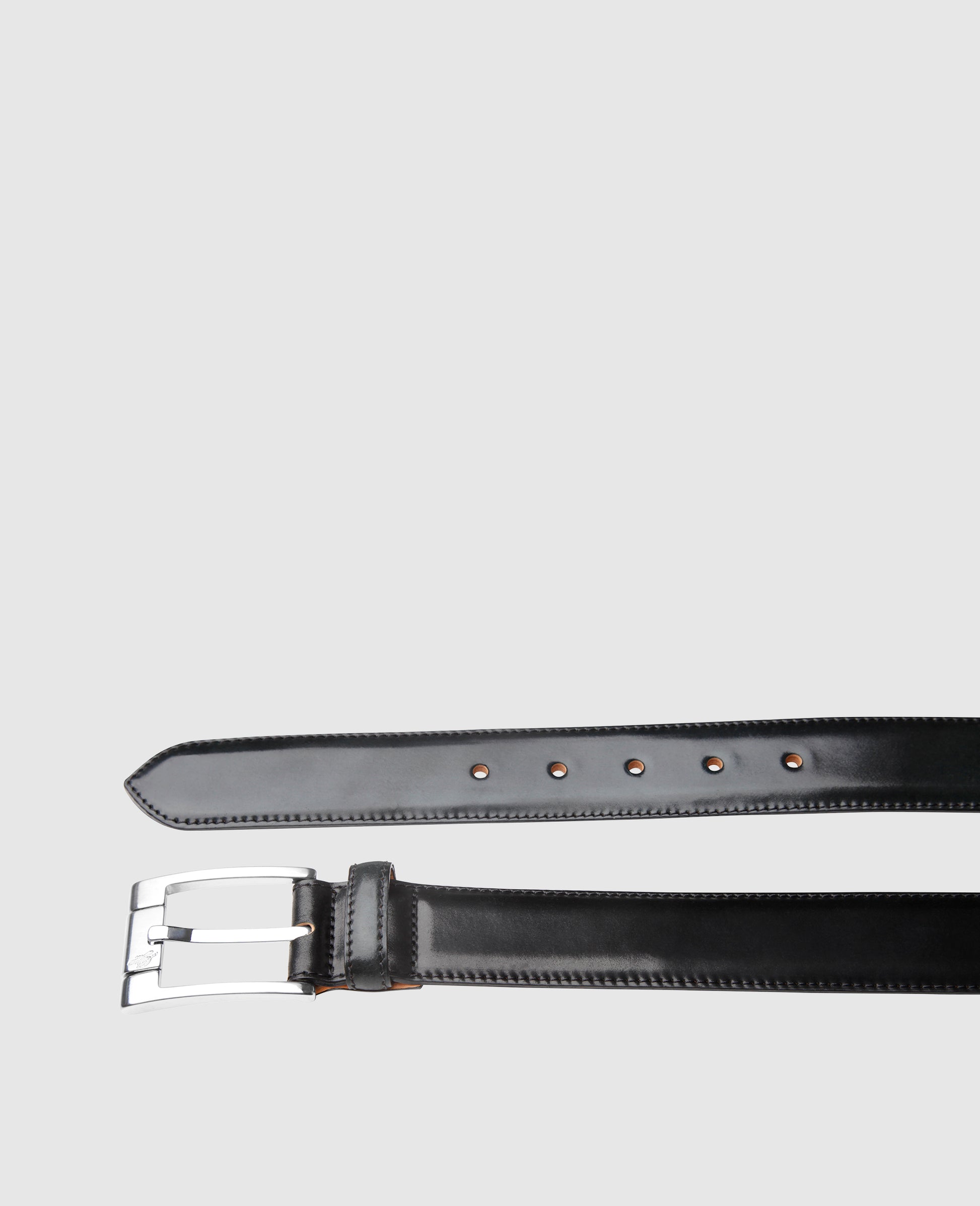 This handmade full-leather belt for men is as sophisticated as the Dinkelacker shoes made of luxurious shell cordovan. While its outside features the famous Horween horse leather from Chicago, its inside is made of exquisite, premium cowhide. The two leather sections, both 35 mm wide, are stitched tightly together in an Italian factory.The tasteful appearance is complemented by a silver belt buckle made from zamak, boasting the Heinrich Dinkelacker emblem. An exquisite accessory for a sophisticated combination.
