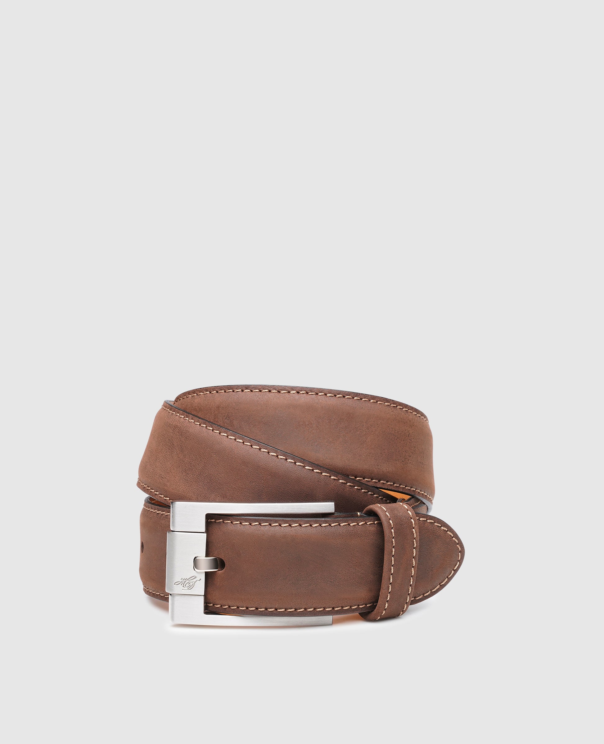 This handcrafted men’s belt in greased nubuck is the ideal companion to Dinkelacker shoes made from the same upper leather. With a width of 35 mm, the color and material are perfectly matched to the shoe collection and together form a harmonious aesthetic. The inside of the belt is again made of selected premium cowhide leather. The inside and outside are sewn together with the utmost precision in an Italian factory that has specialized in fine accessories for decades.