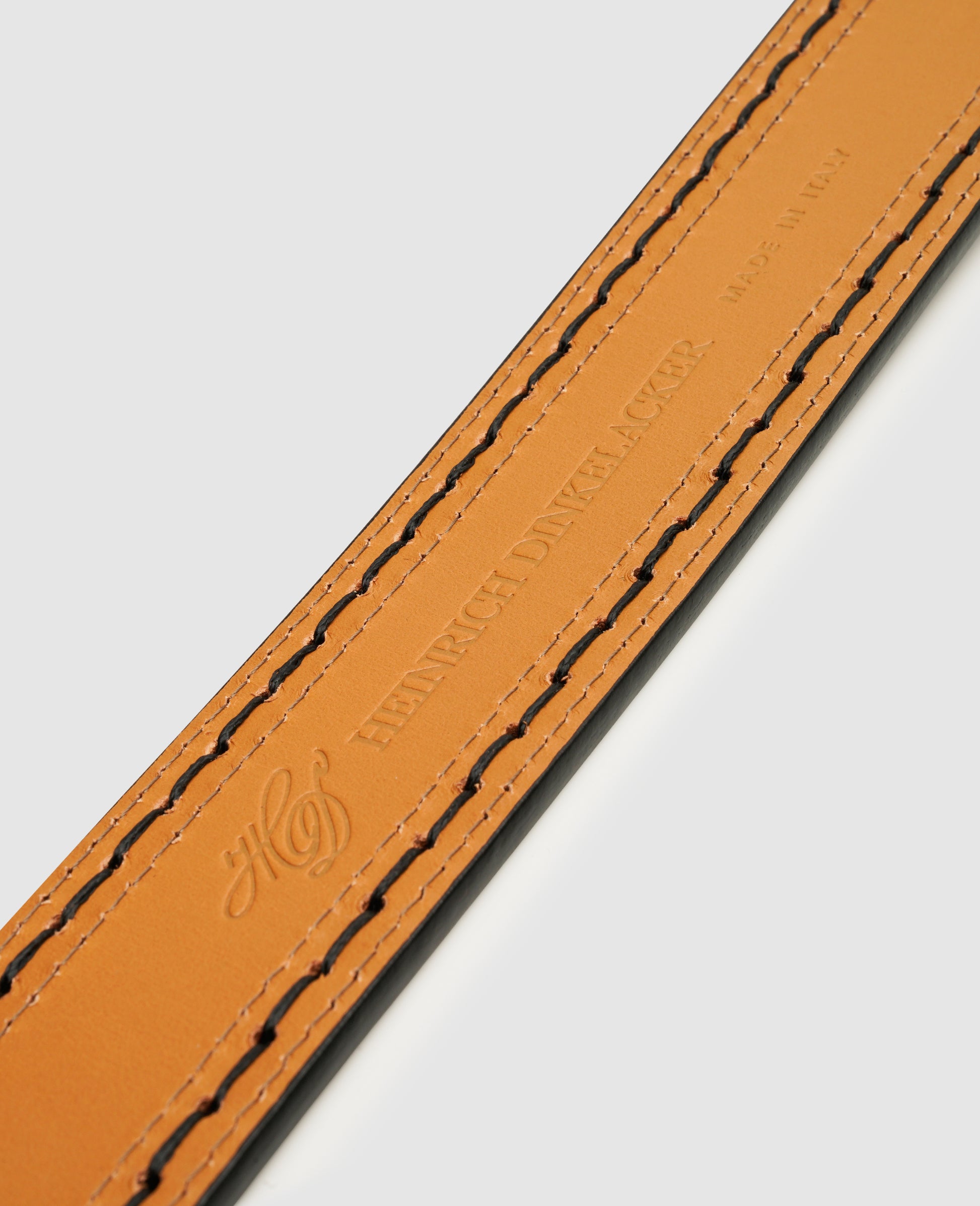 This full leather belt for men impresses with its subtle decorative stitching in contrasting colors. Sewn by hand from two layers of fine cowhide leather, this men's belt offers not only aesthetic finesse but also a robust dimensional stability. With a width of 40 mm, this robustness is additionally accentuated by the rounded zamak buckle. This refined zinc alloy gives the buckle its silver shine while also being suitable for nickel-allergy sufferers. A discreet logo under the thorn shows this belt to be a part of the Dinkelacker family.